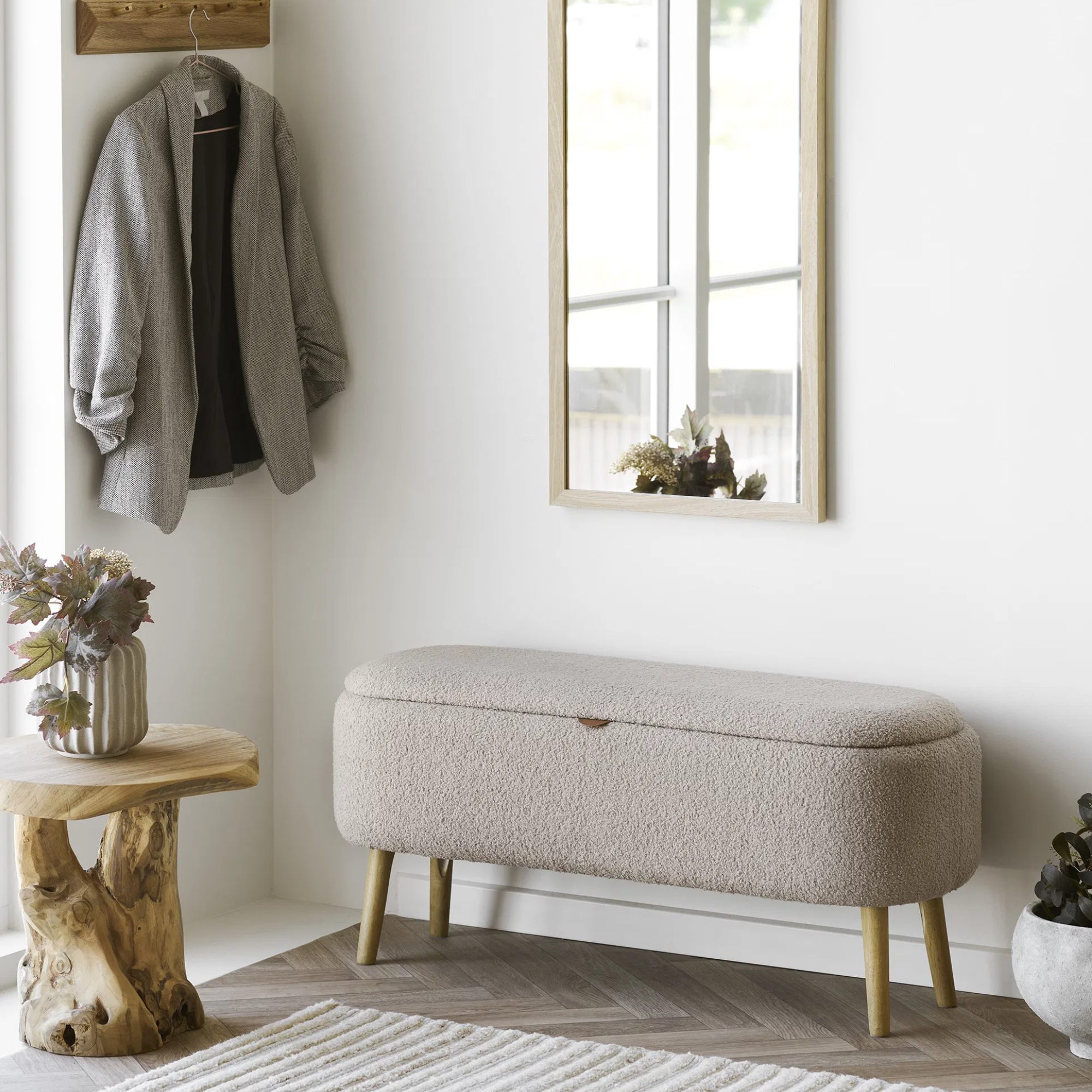 Lavice stojí na pevných nohách z masivního dřeva, které jsou zárukou její stability. O pohodlné sezení se stará měkký pěnový sedák. Lavice je čalouněna hladkou tkaninou, která je příjemná na dotek.