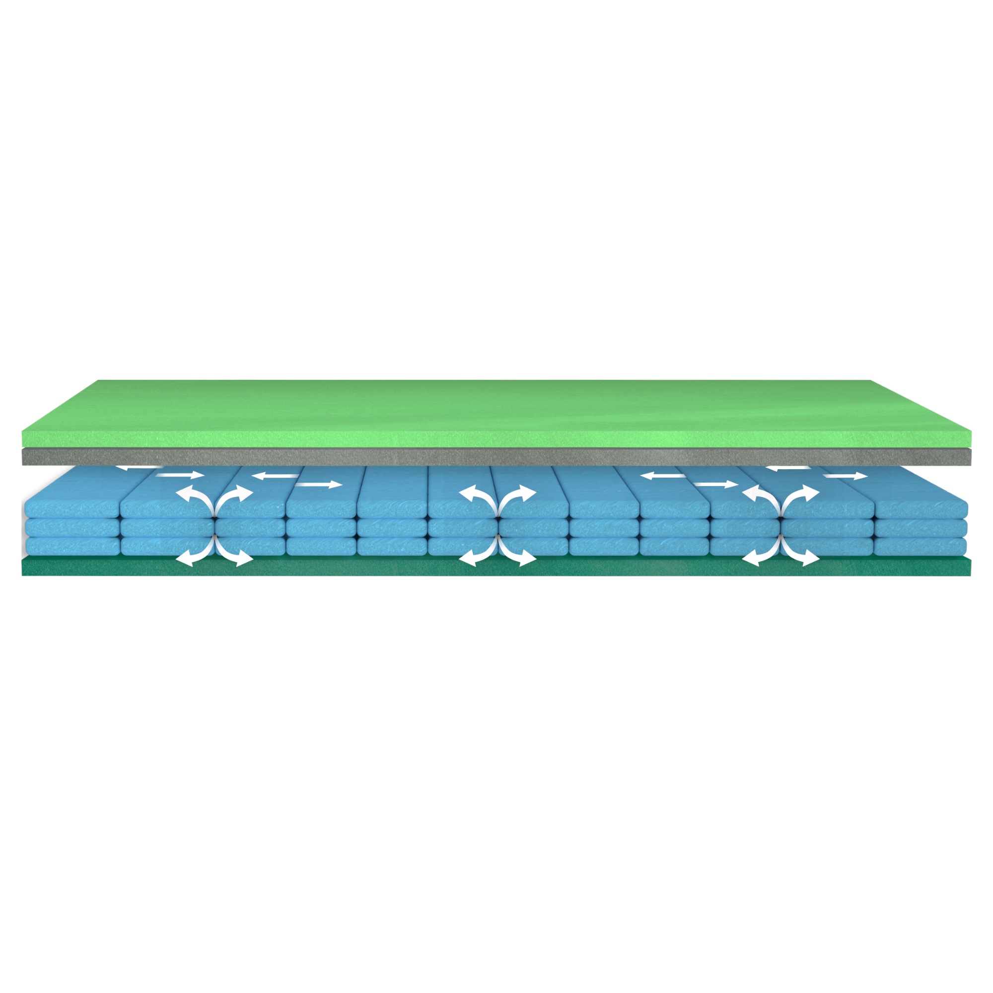 - Vrchní vrstva - prodyšná a elastická pěna GREENGEL