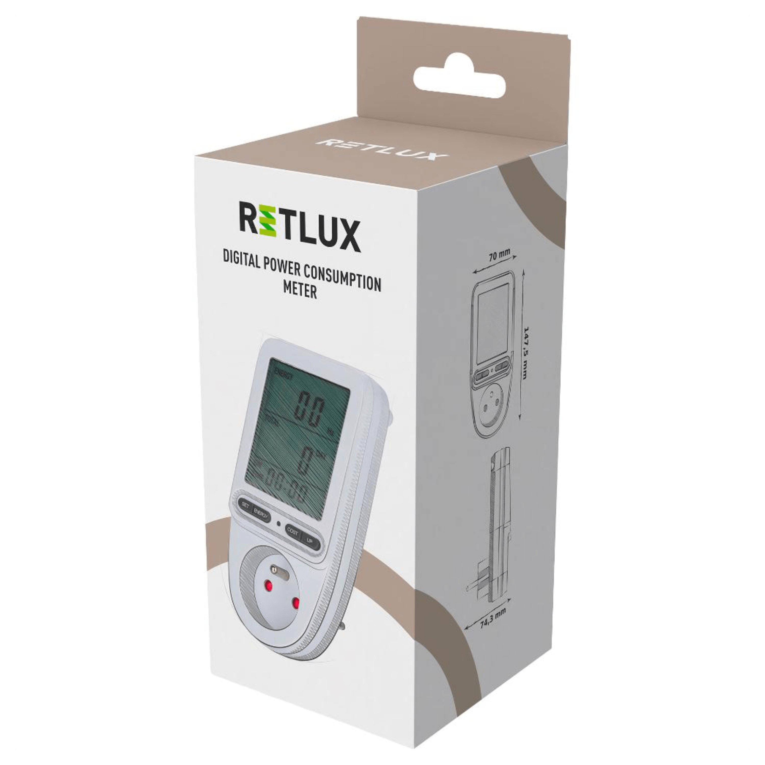 Snadné použití s přehledným LCD displejem. Stačí zapojit do zásuvky a ihned zobrazí všechny potřebné údaje. Podsvícený displej zajišťuje dobrou čitelnost i ve tmě. Možnost nastavení ceny elektřiny, takže zjistíte reálné náklady za provoz spotřebičů. Zásuvka má maximální zatížení proudu 16 A. Dále rozsah napětí 190 - 276 V a zátěž 3680 W.