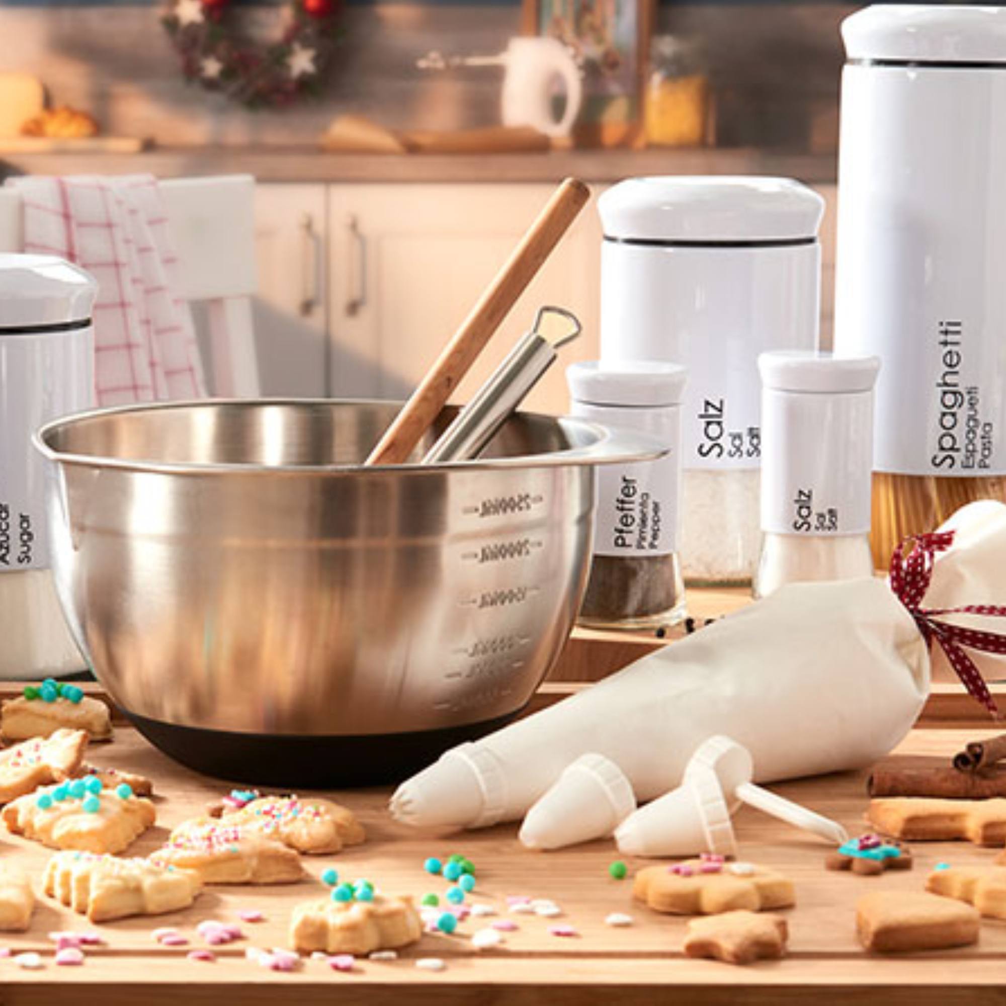 Využijete ji nejen na míchání, ale také pro měření, míchání nebo dočasné skladování. Miska má vysoké a robustní tělo ve tvaru polokoule s matnou povrchovou úpravou. Detaily jako široký odlévací okraj, měrná stupnice a silikonový protiskluzové dno jistě ocení každá moderní hospodyňka.
