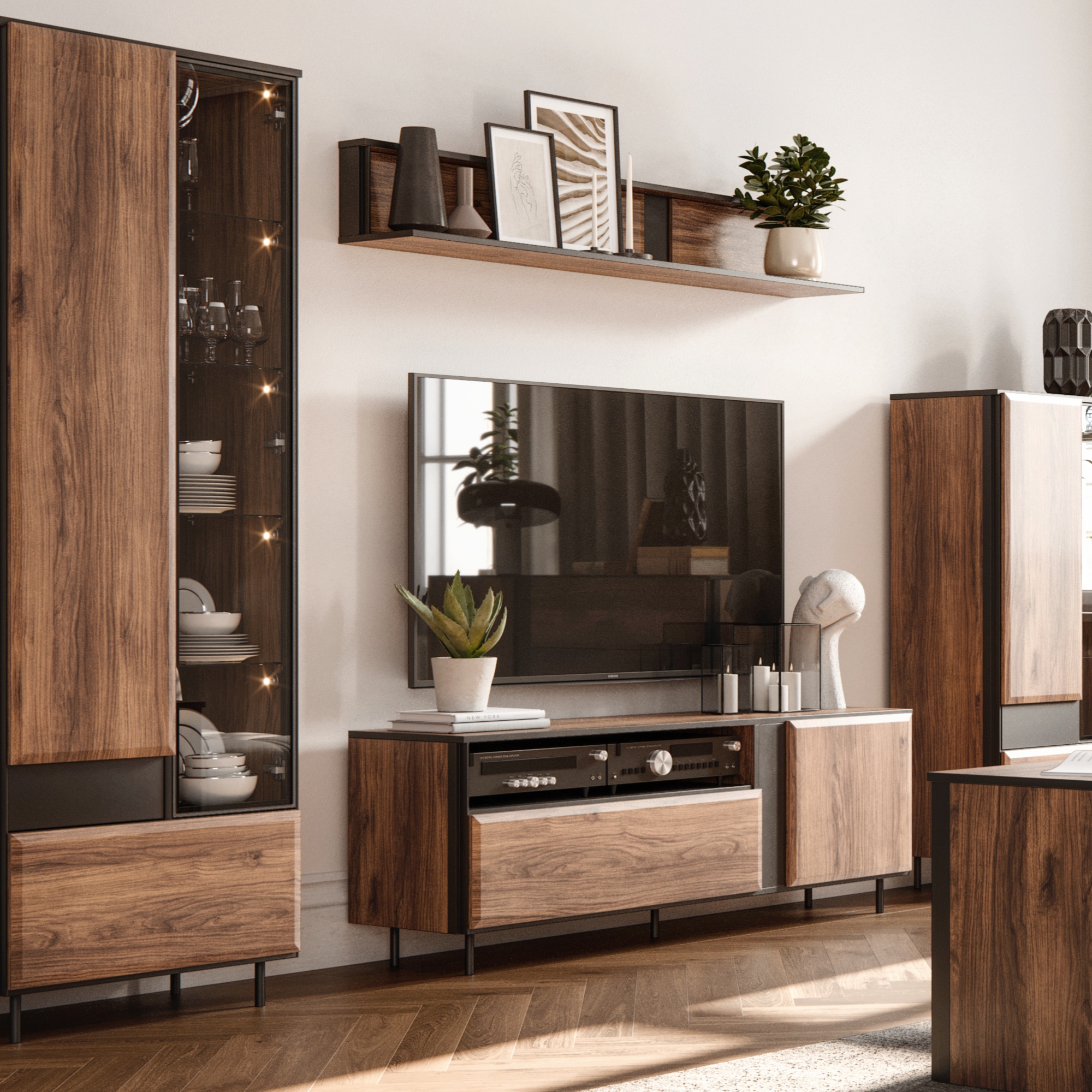 Nástěnná police BORGA nechá vyniknout vaše oblíbené knihy i dekorace. Kombinace dřevěného dekoru a kovu vnáší do interiéru jemný závan industriálního stylu.
