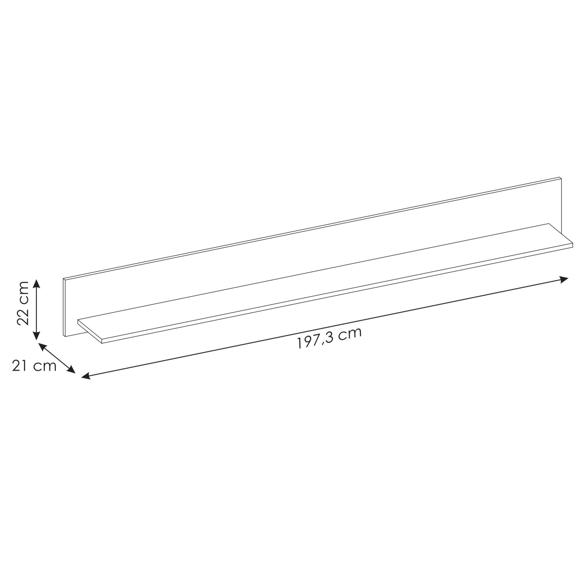 Nástěnná police BROLO - dub catania/černá, šířka 197 cm
