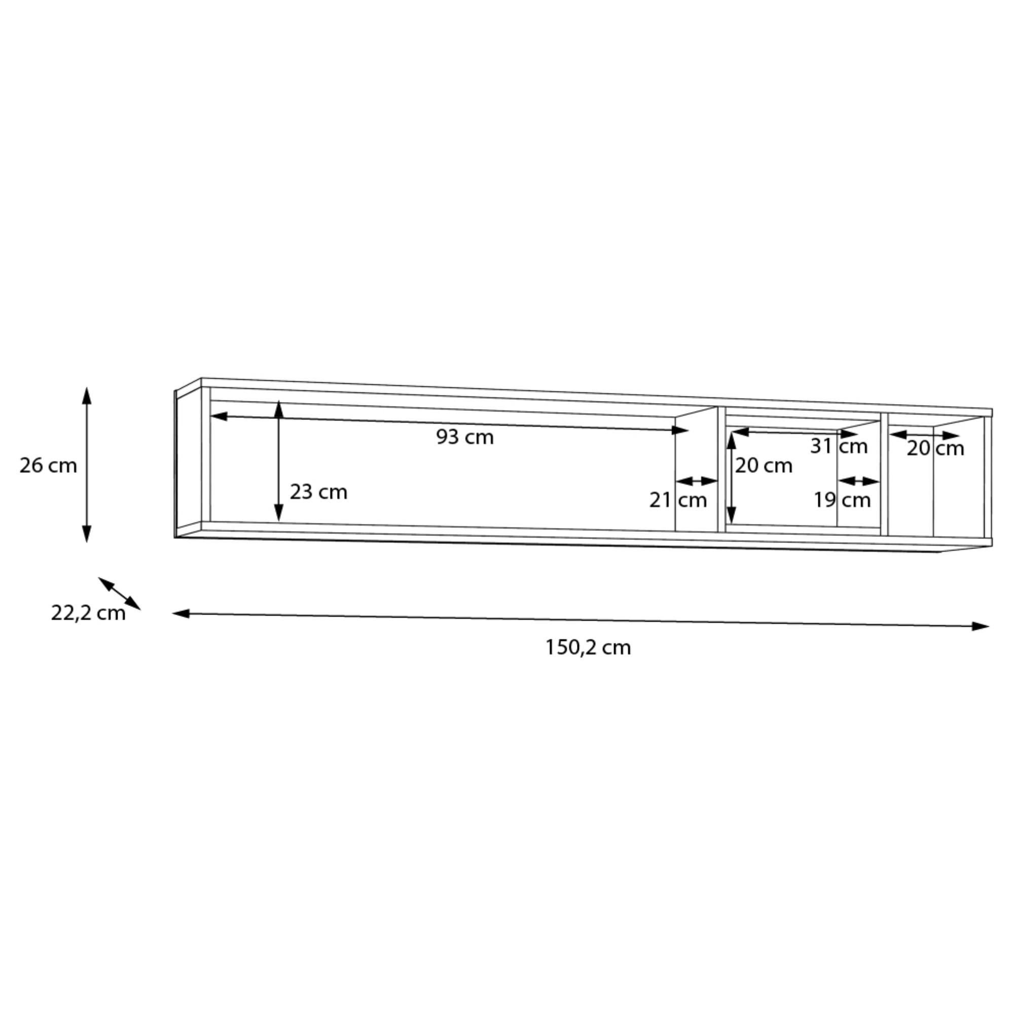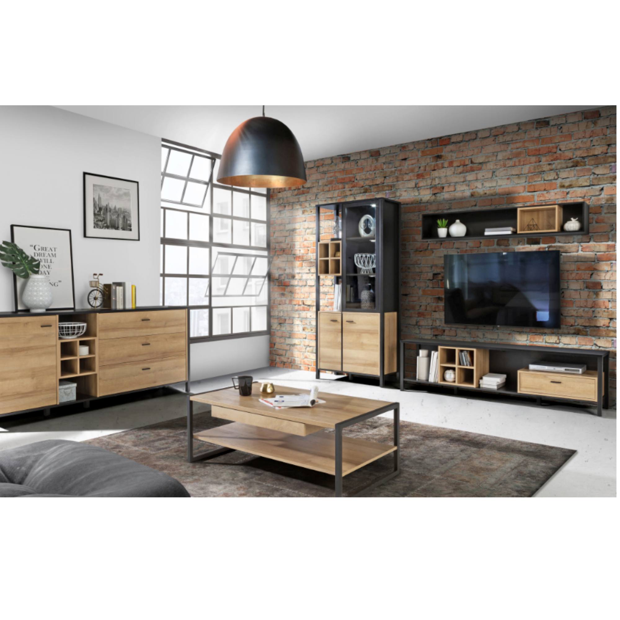 S nástěnnou policí HIGH ROCK 10 si ve vašem obývacím pokoji vytvoříte útulnou atmosféru. Přímé linie a atraktivní spojení dekoru dubu riviera s černou barvou přidávají na moderním vzhledu. Díky jejímu praktickému designu budete mít vše potřebné vždy při ruce. ABS hrany navíc zvyšují odolnost celého korpusu, který se vám bude zároveň jednoduše udržovat.