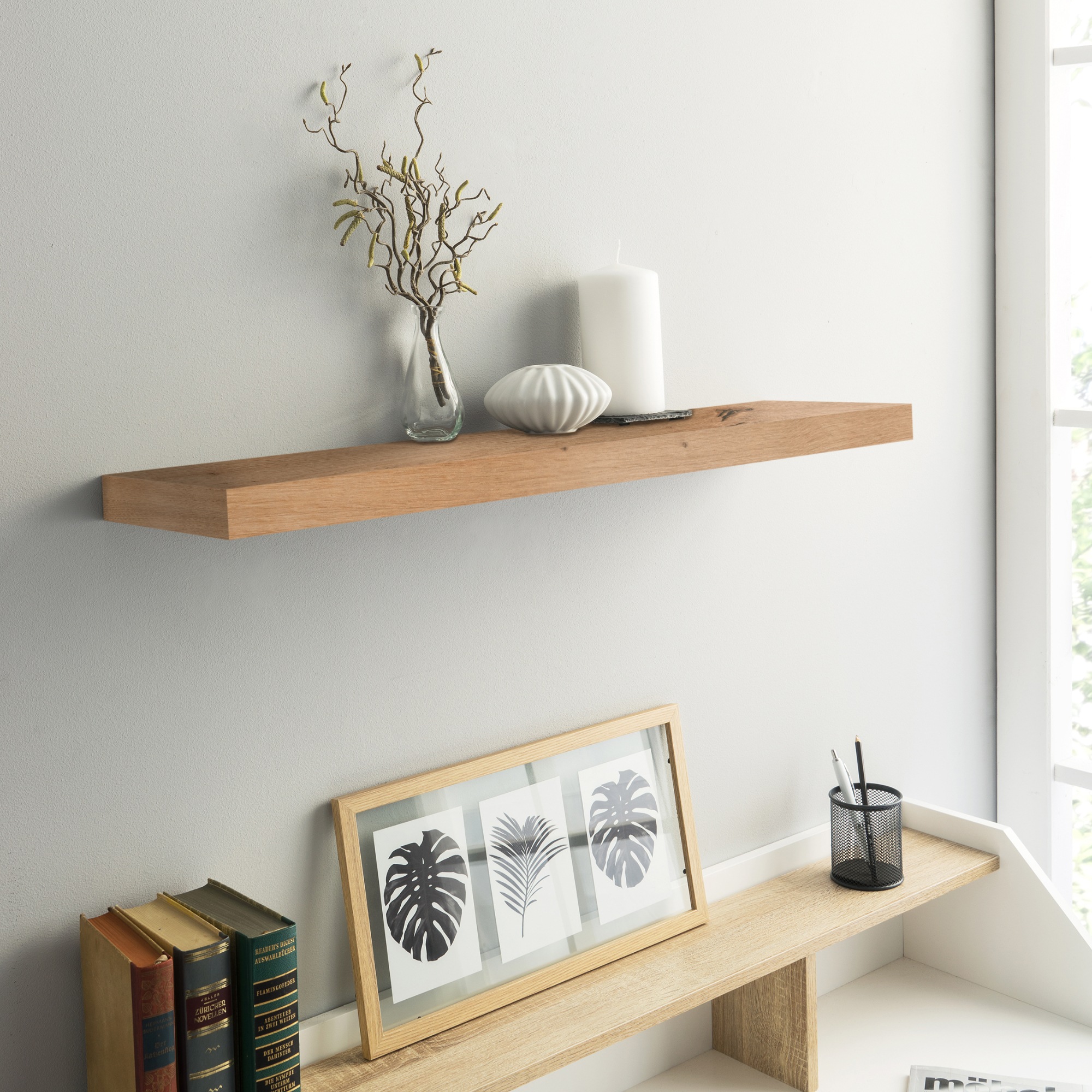 Nástěnná police SHELVY - dub artisan, šířka 80 cm