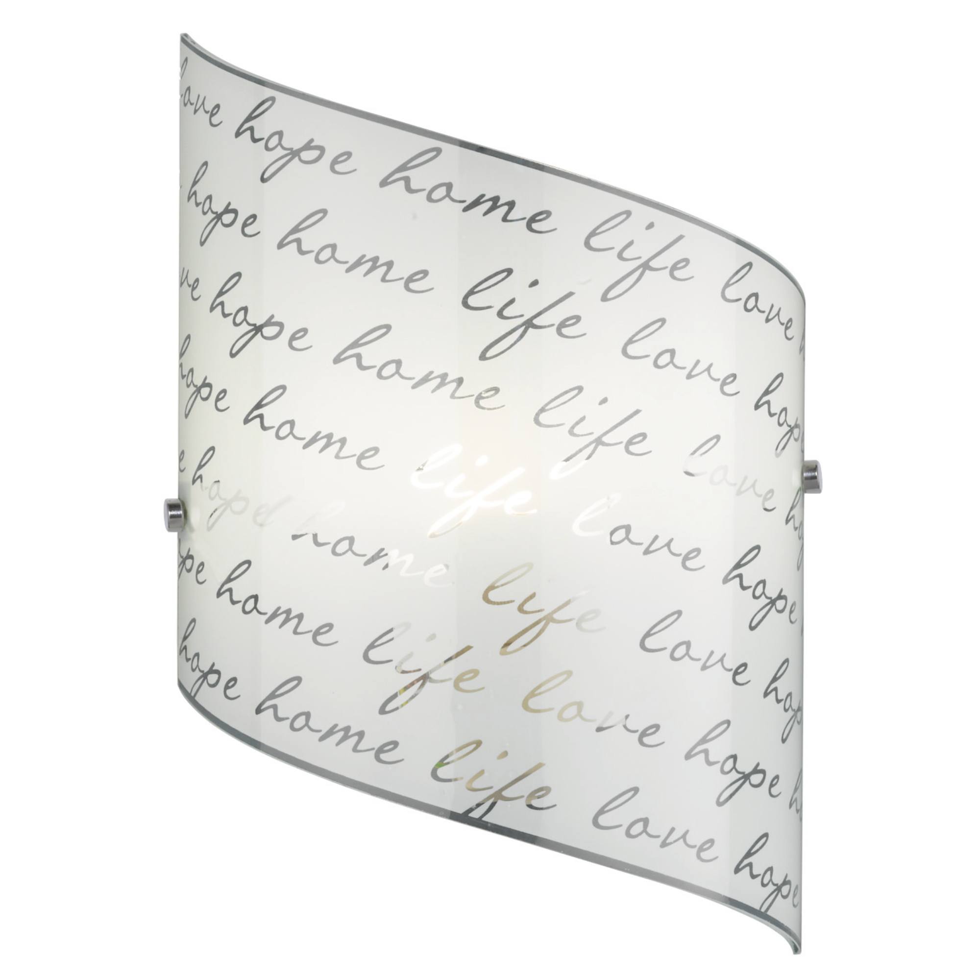 Má kovovou konstrukci, na které je připevněno stínidlo v elegantním atypickém tvaru. To je vyrobeno ze skla v matném provedení, jež zdobí čiré nápisy, dodávající tomuto designu zajímavý efekt. Díky čistému a zároveň stylovému vzhledu se bude snadno kombinovat s dalšími doplňky v interiéru, ať už jej umístíte do obývacího pokoje, ložnice či na schodiště.
