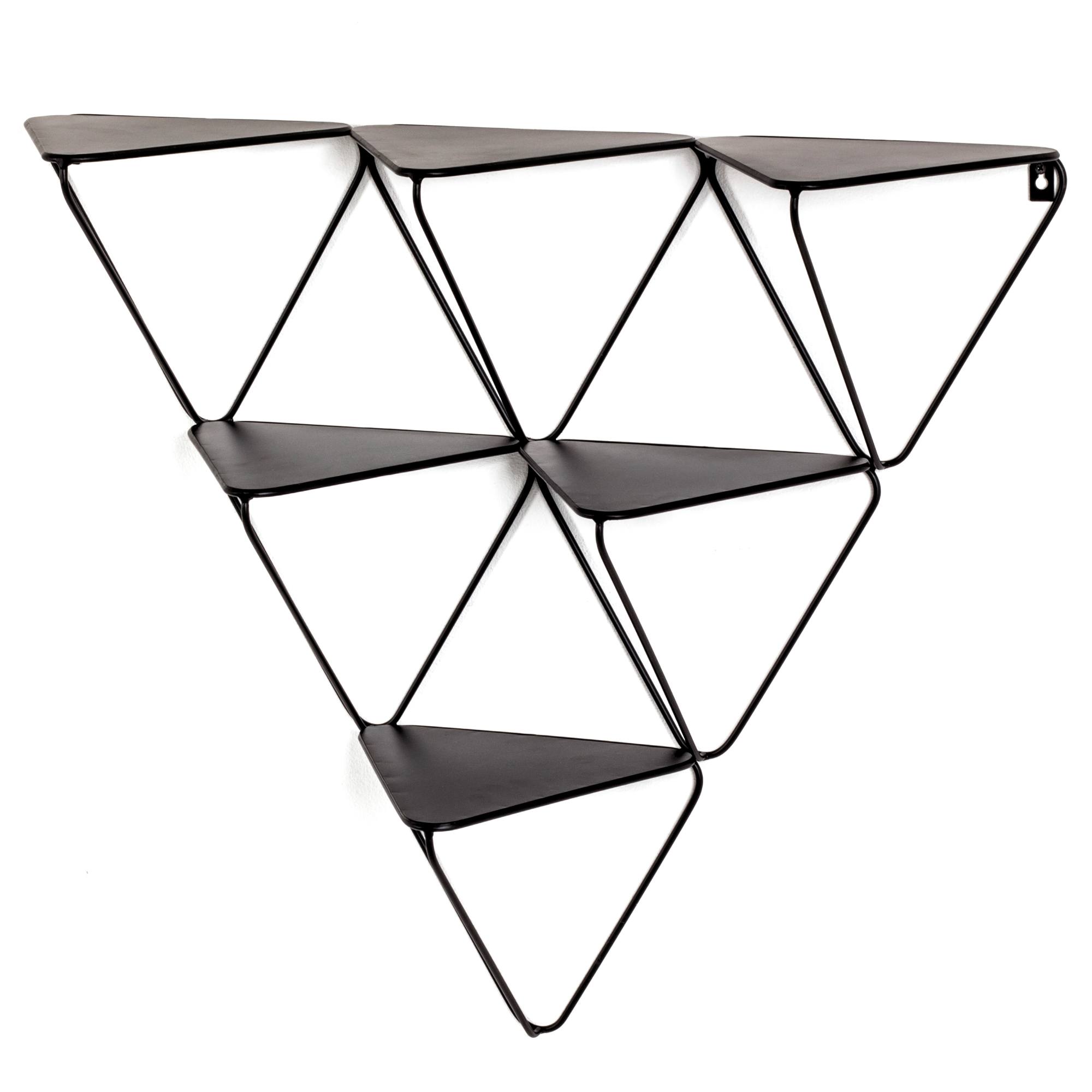 Nástěnný regál KARSEN zaujme svým atypickým tvarem konstrukce a rozložením úložného prostoru. Díky tomu se bude skvěle vyjímat v moderně stavěném obývacím pokoji. Ocelová konstrukce zajistí bytelnost a dlouhou životnost. Černé lakování zase působí tlumivým dojmem a tím podtrhuje celkový moderní styl regálu. Místo si zde najdou různé dekorace, ale i květiny. Maximální nosnost je 6 kg.