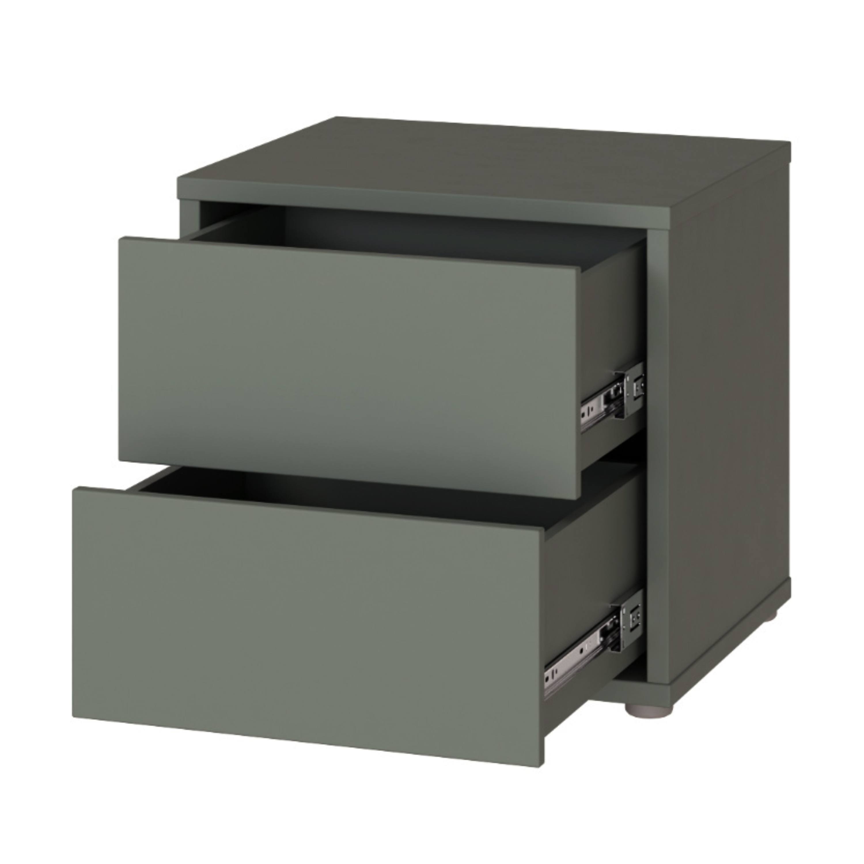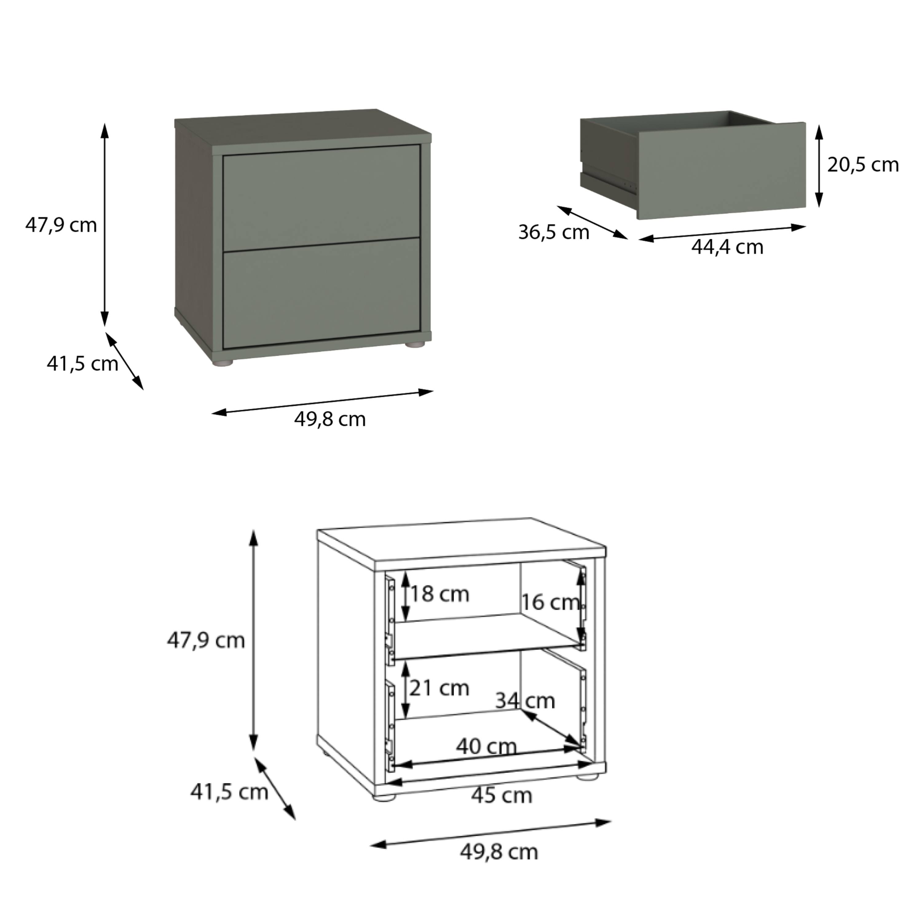 Disponuje 2 zásuvkami, které poskytují dostatek místa na vše, co chcete mít během večera či brzkého rána při ruce, ale ne přímo na očích. Ty disponují mechanismem push to open, díky kterému zásuvky snadno otevřete pouhým stlačením. Provedení bez úchytek podtrhuje čistý vzhled nábytku. Stolek je vyroben z laminovaného dřevěného materiálu s povrchem nenáročným na údržbu.