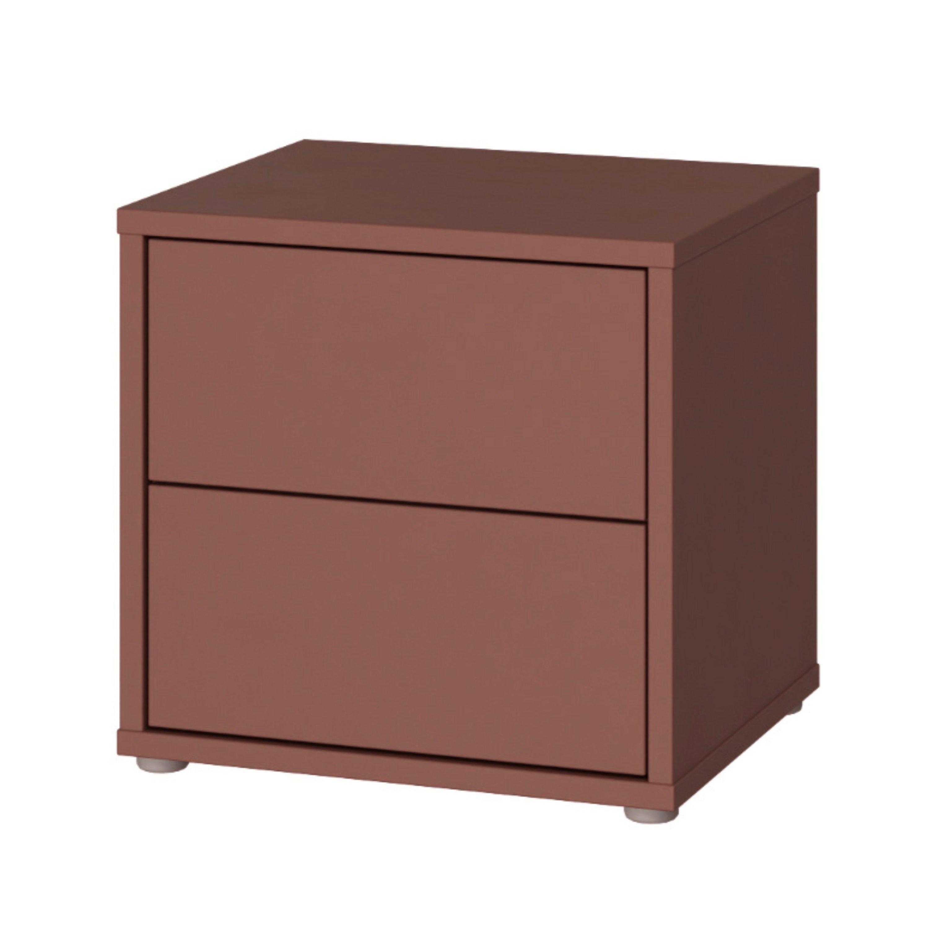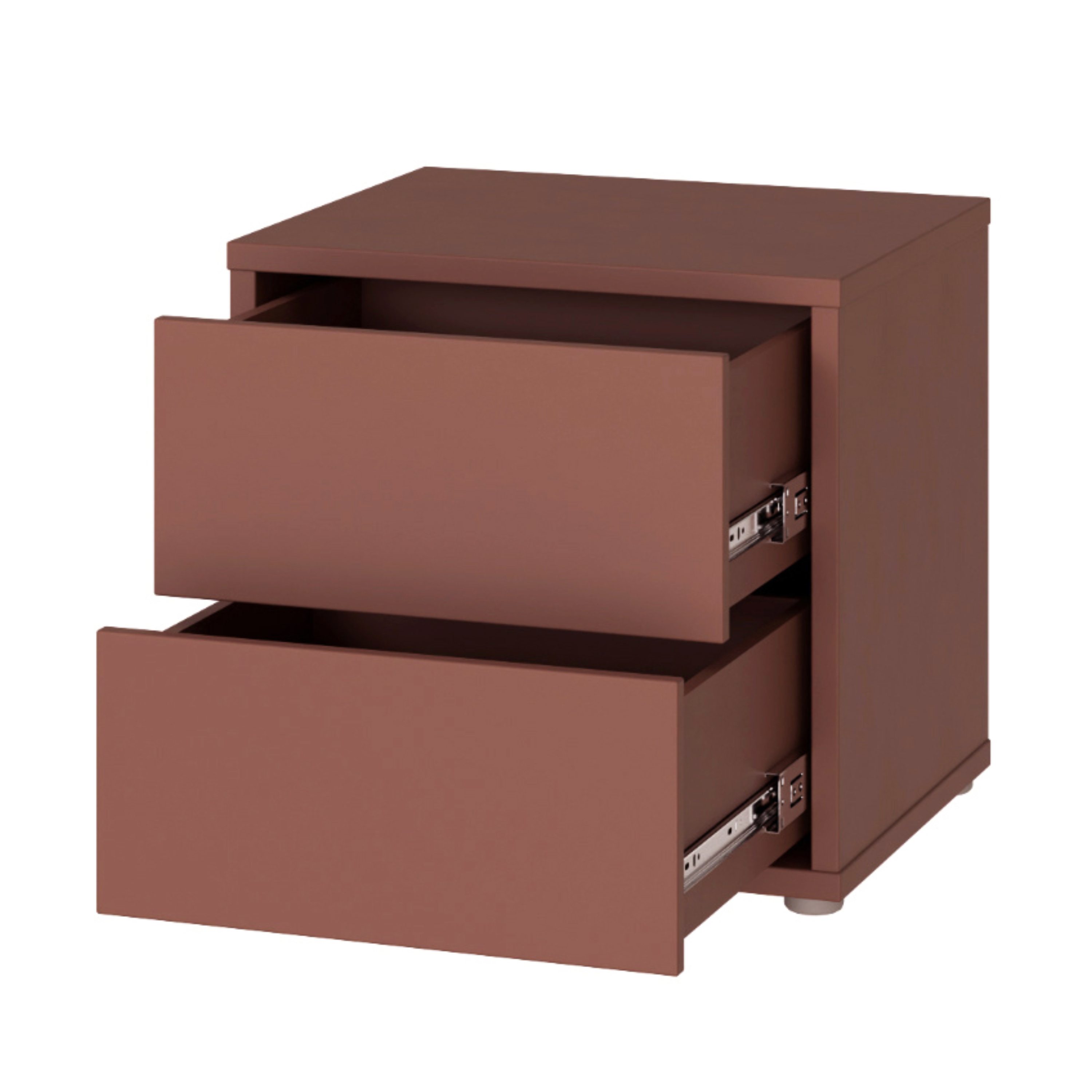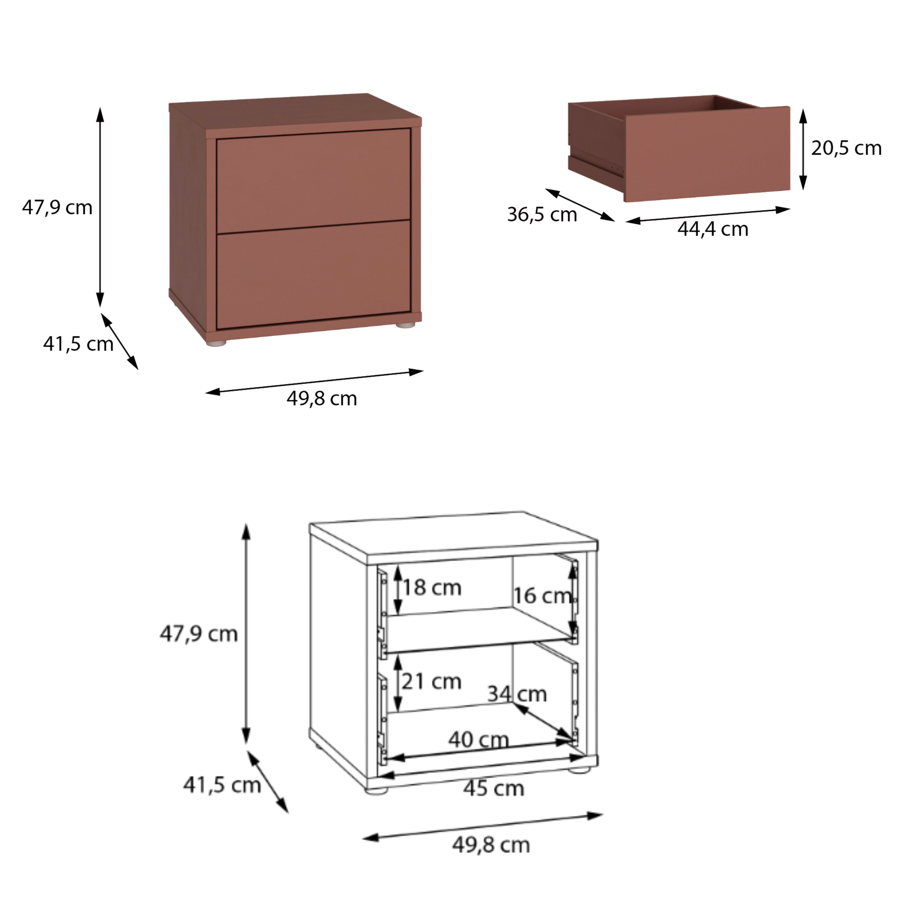 Disponuje 2 zásuvkami, které poskytují dostatek místa na vše, co chcete mít během večera či brzkého rána při ruce, ale ne přímo na očích. Ty disponují mechanismem push to open, díky kterému zásuvky snadno otevřete pouhým stlačením. Provedení bez úchytek podtrhuje čistý vzhled nábytku. Stolek je vyroben z laminovaného dřevěného materiálu s povrchem nenáročným na údržbu.