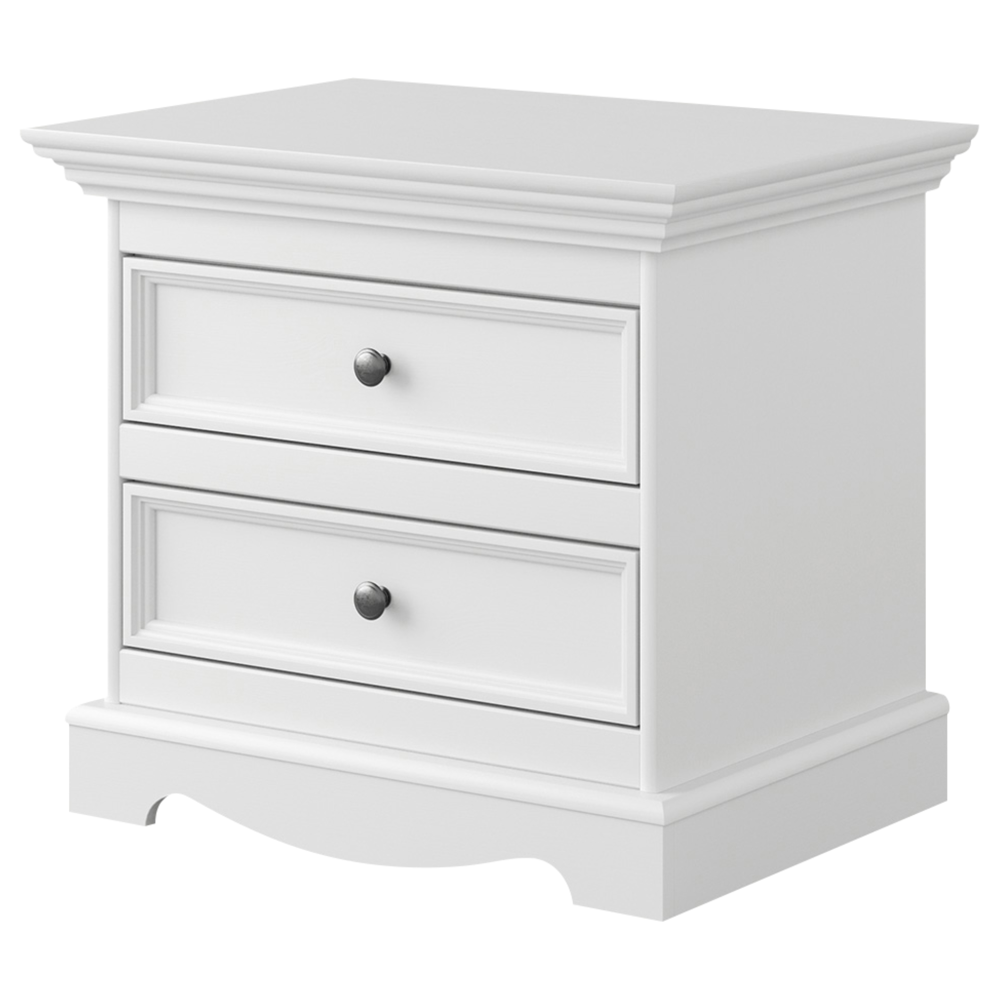 Noční stolek BELLU v klasické bílé barvě je praktickým doplňkovým odkládacím prostorem, díky kterému už nebudete muset vstávat z postele kvůli odložení rozečtené knihy, telefonu nebo sklenice vody.