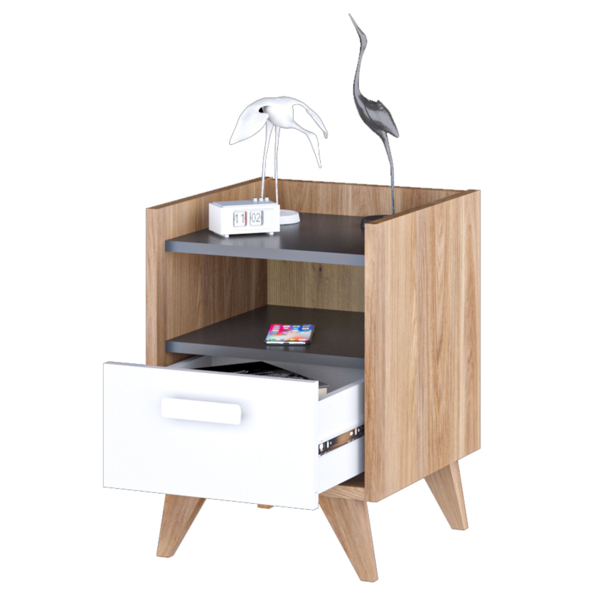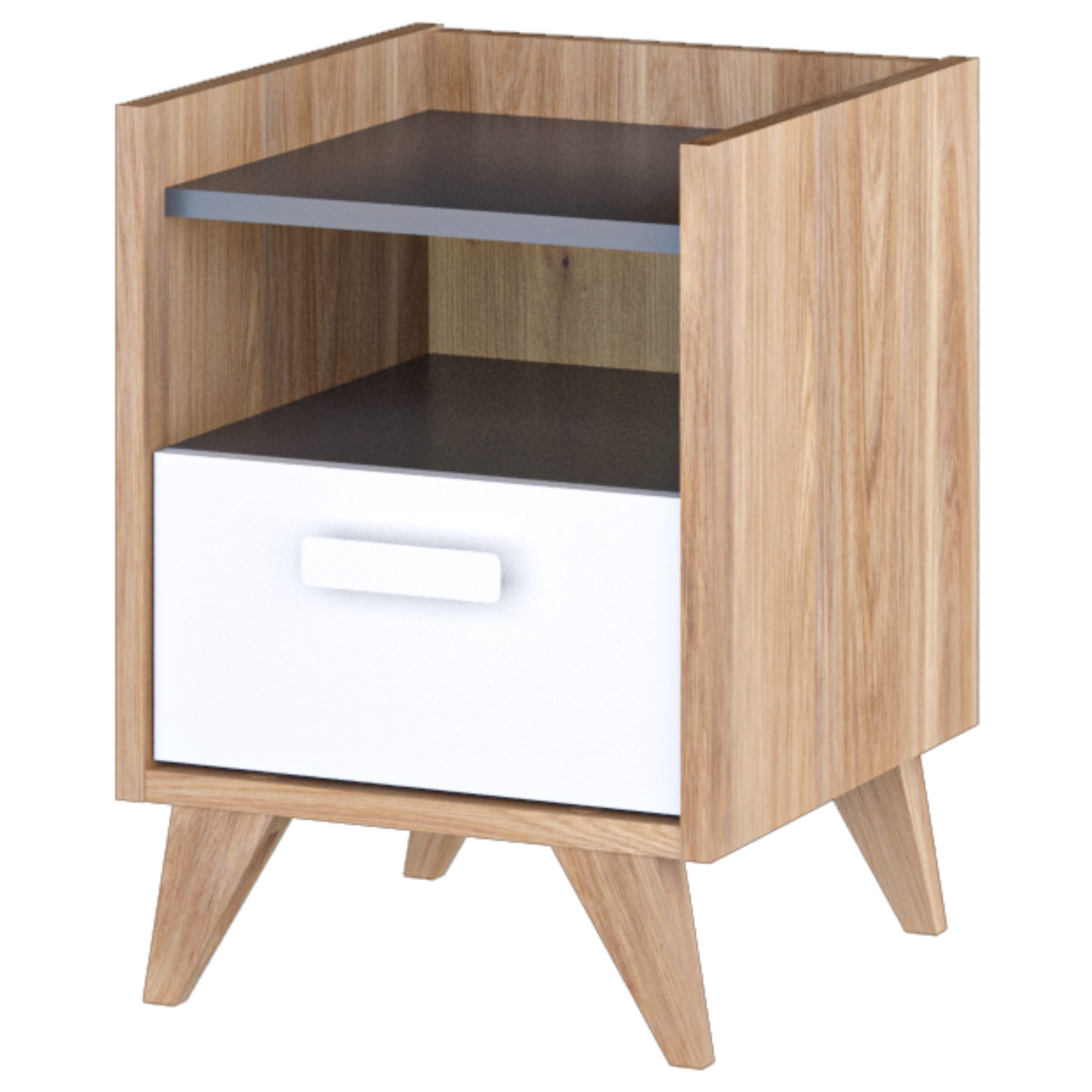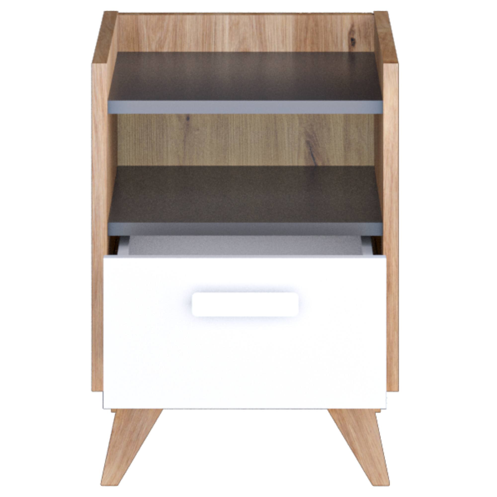 Noční stolek MOOD - dub castello/šedá/bílá