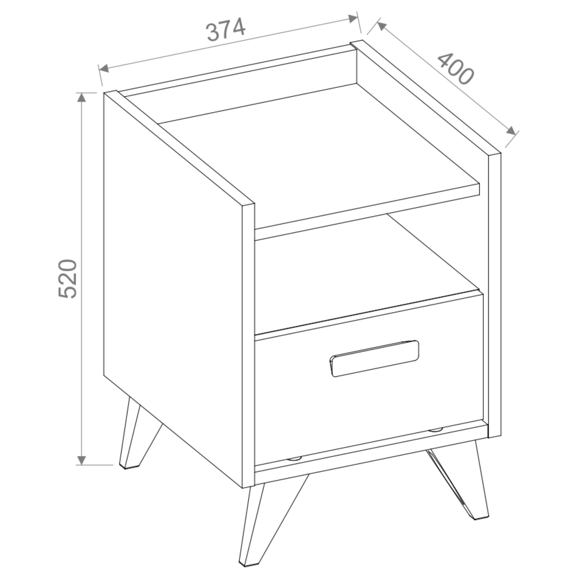 Stolek se skládá z jedné zásuvky a otevřené přihrádky, kde budete mít všechno potřebné vždy při ruce. Manipulaci vám usnadní stylová úchytka.
