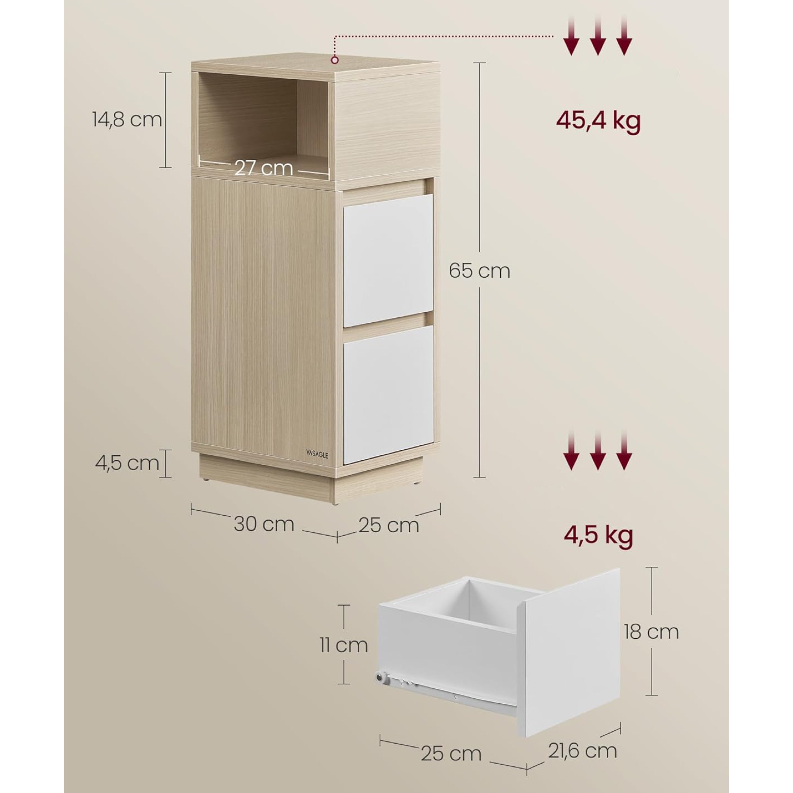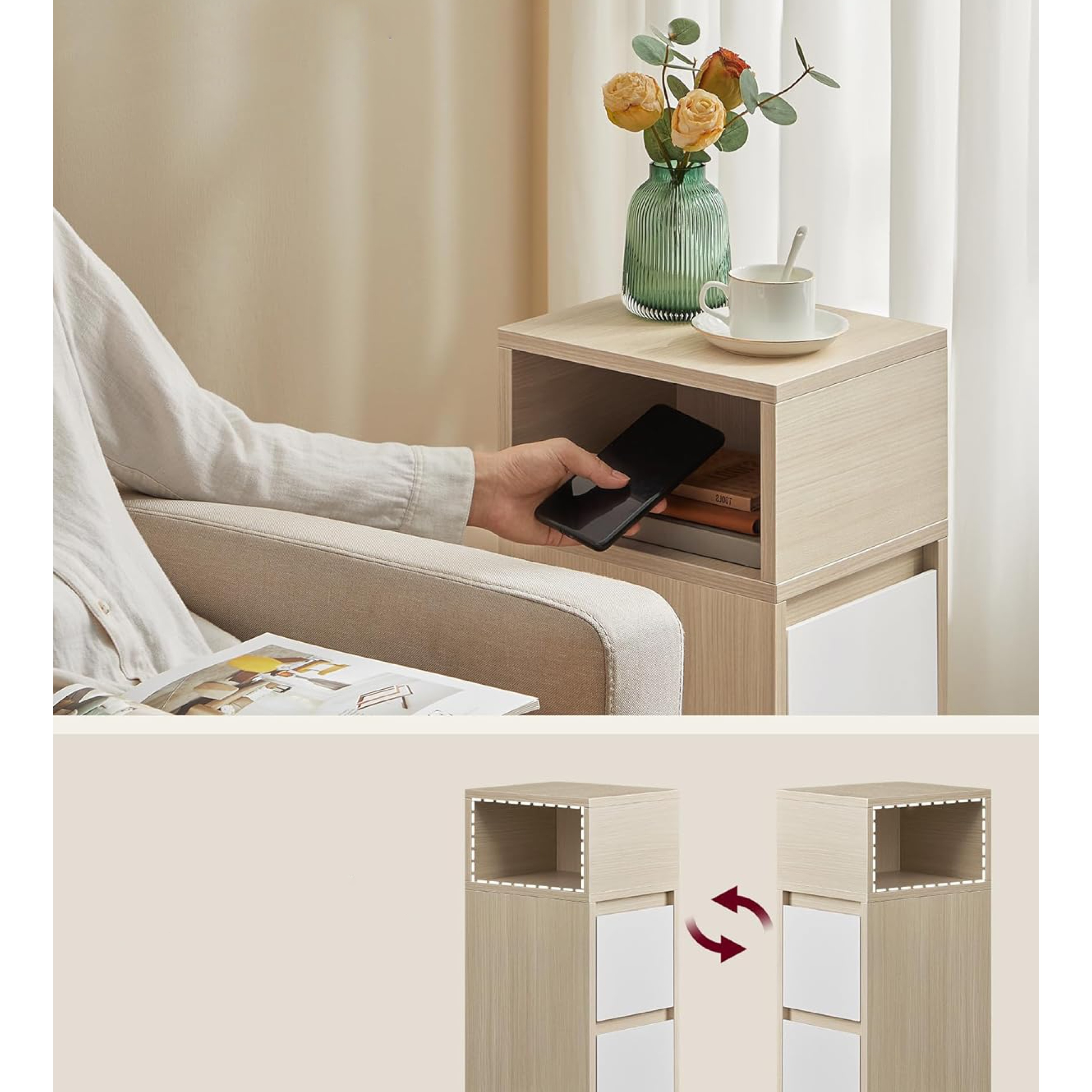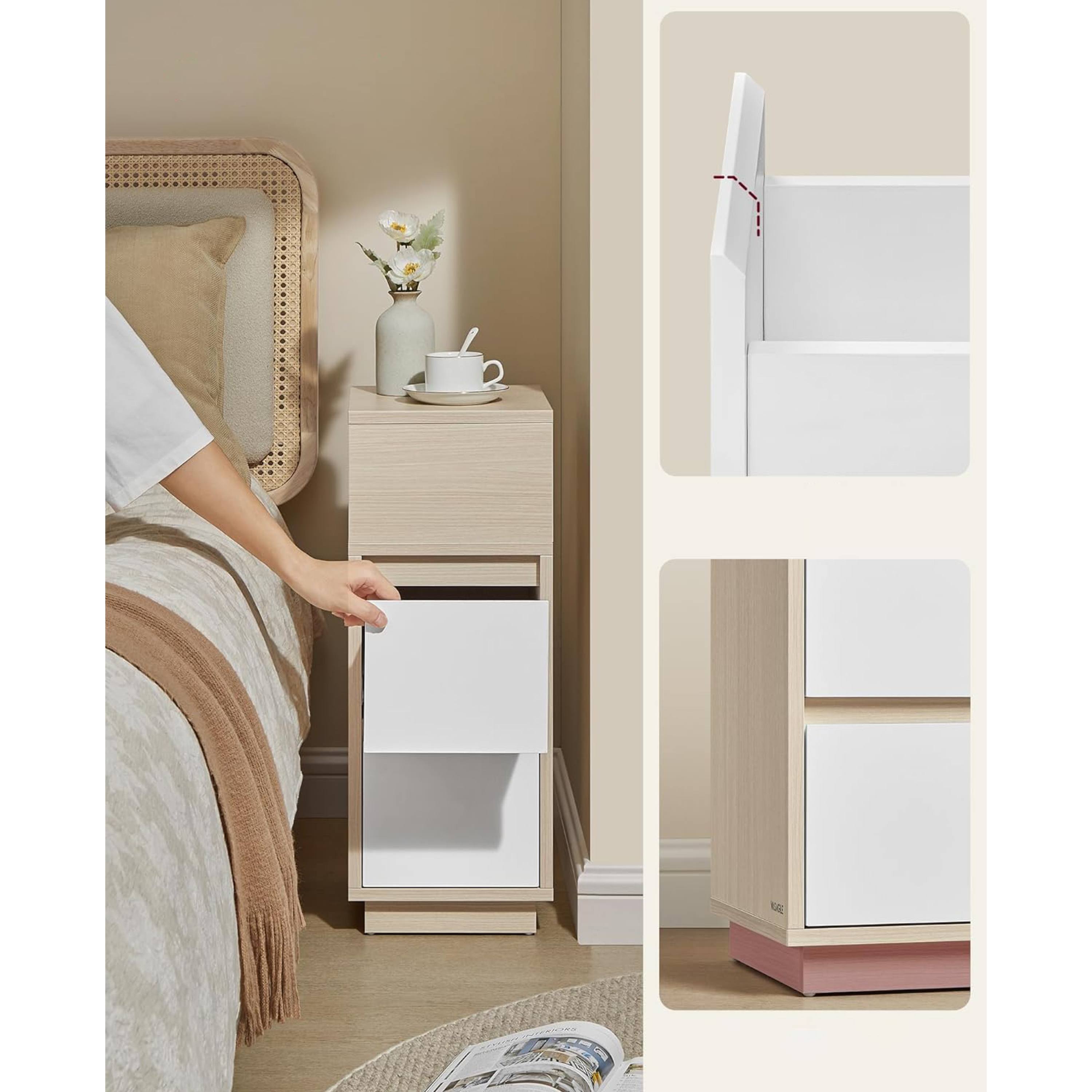 Noční stolek NAROW - přírodní/bílá