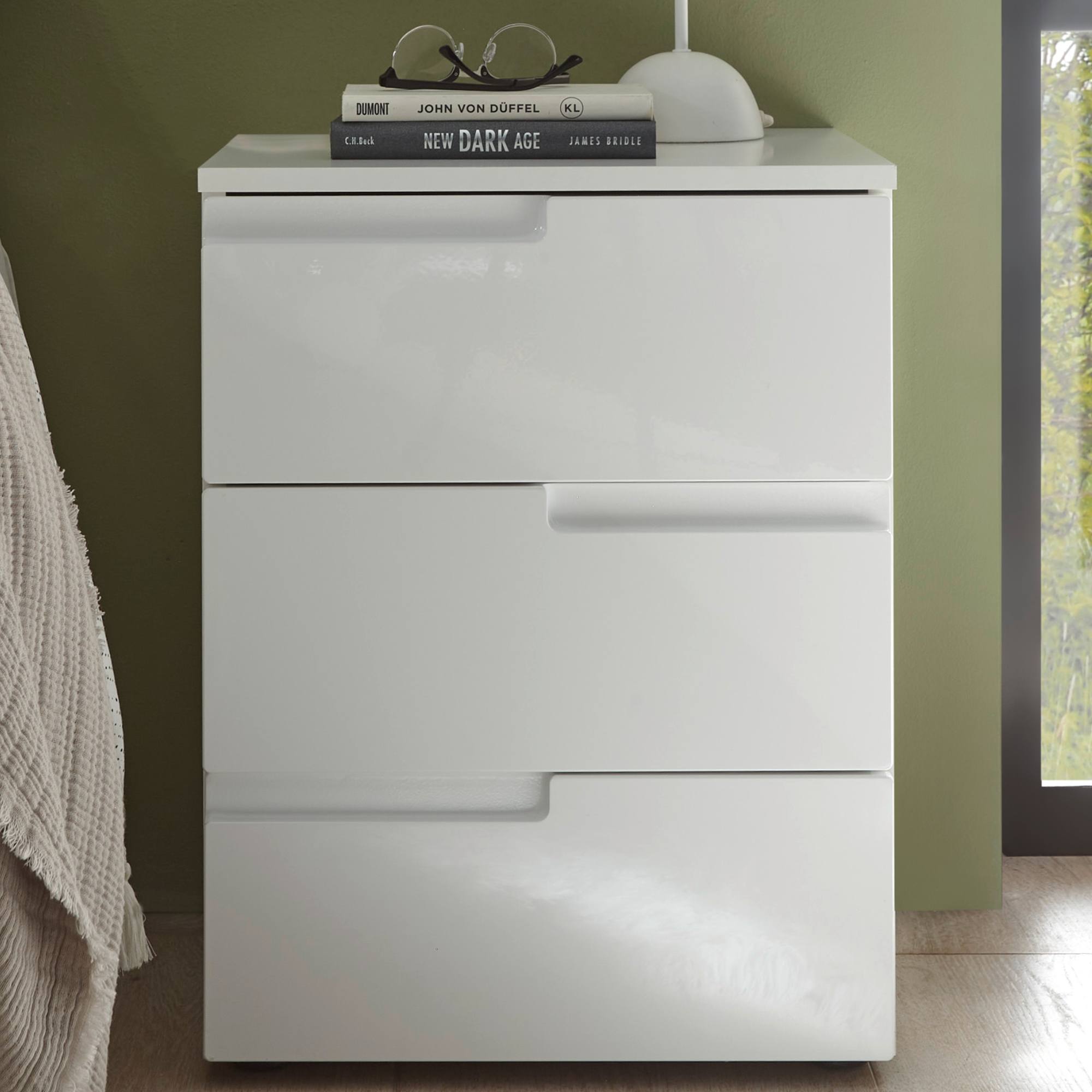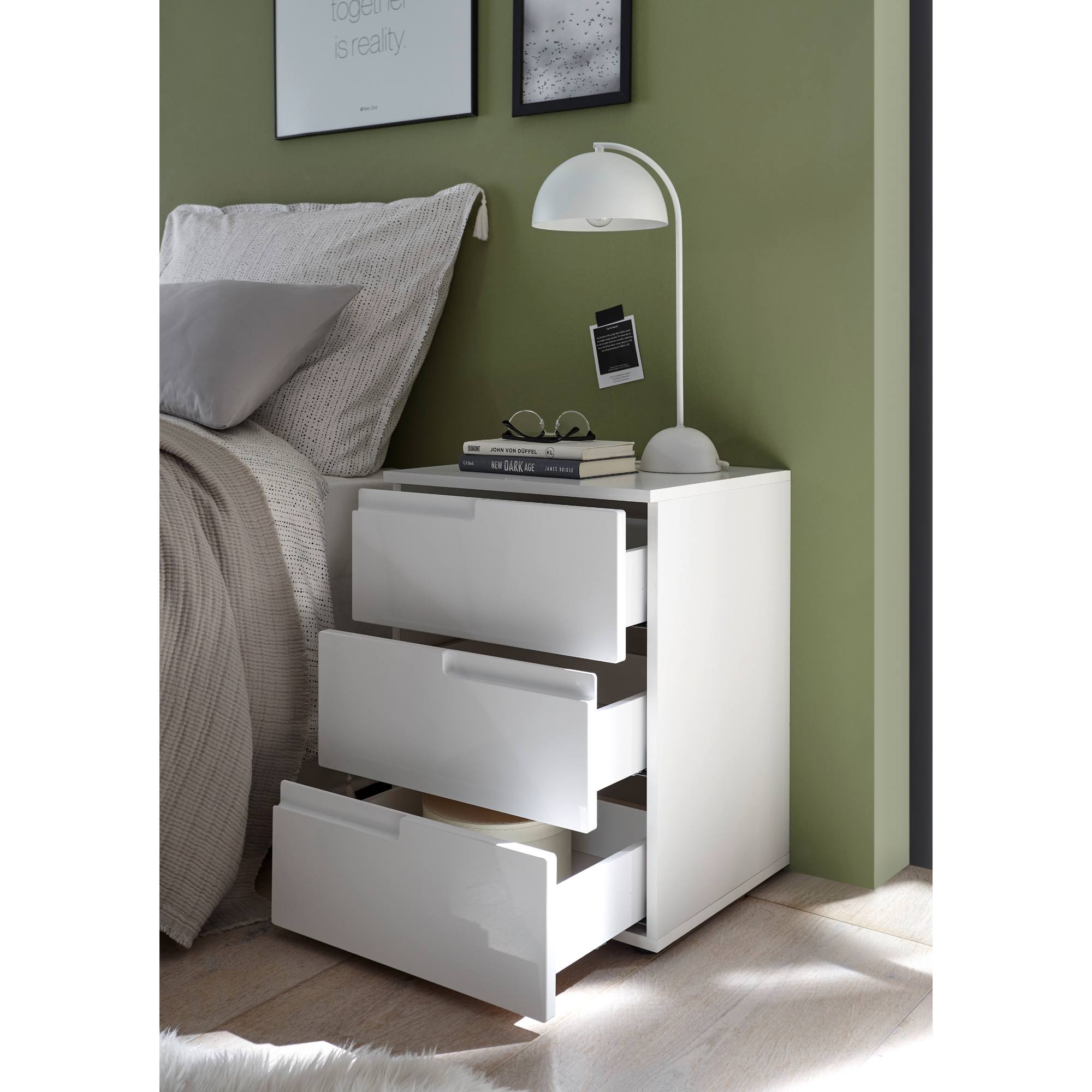 Noční stolek TEAGAN 4 - bílá/bílá vysoký lesk