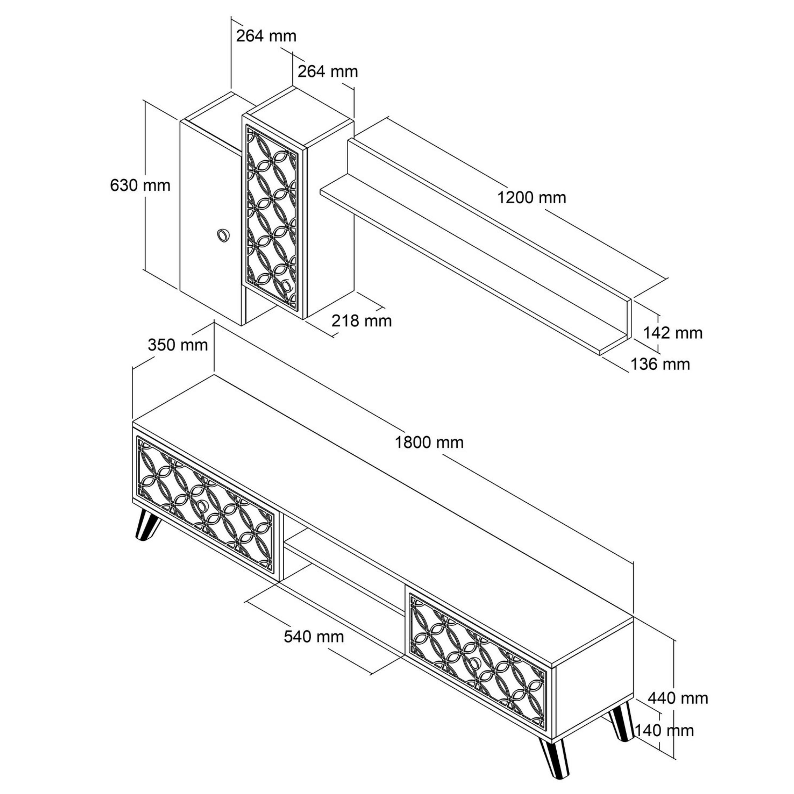 | Část 1 (ŠxVxH) | TV komoda: 180x44x35 cm |