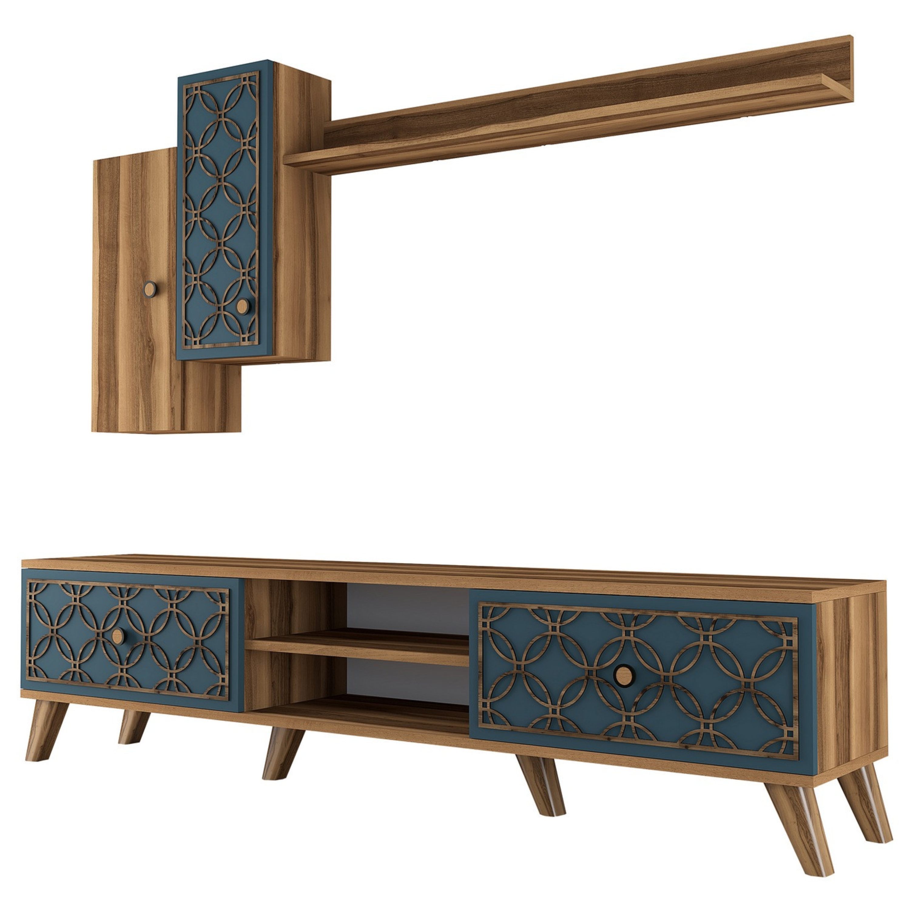 - Skládá se z: TV komoda, 2x závěsná skříňka, nástěnná police
