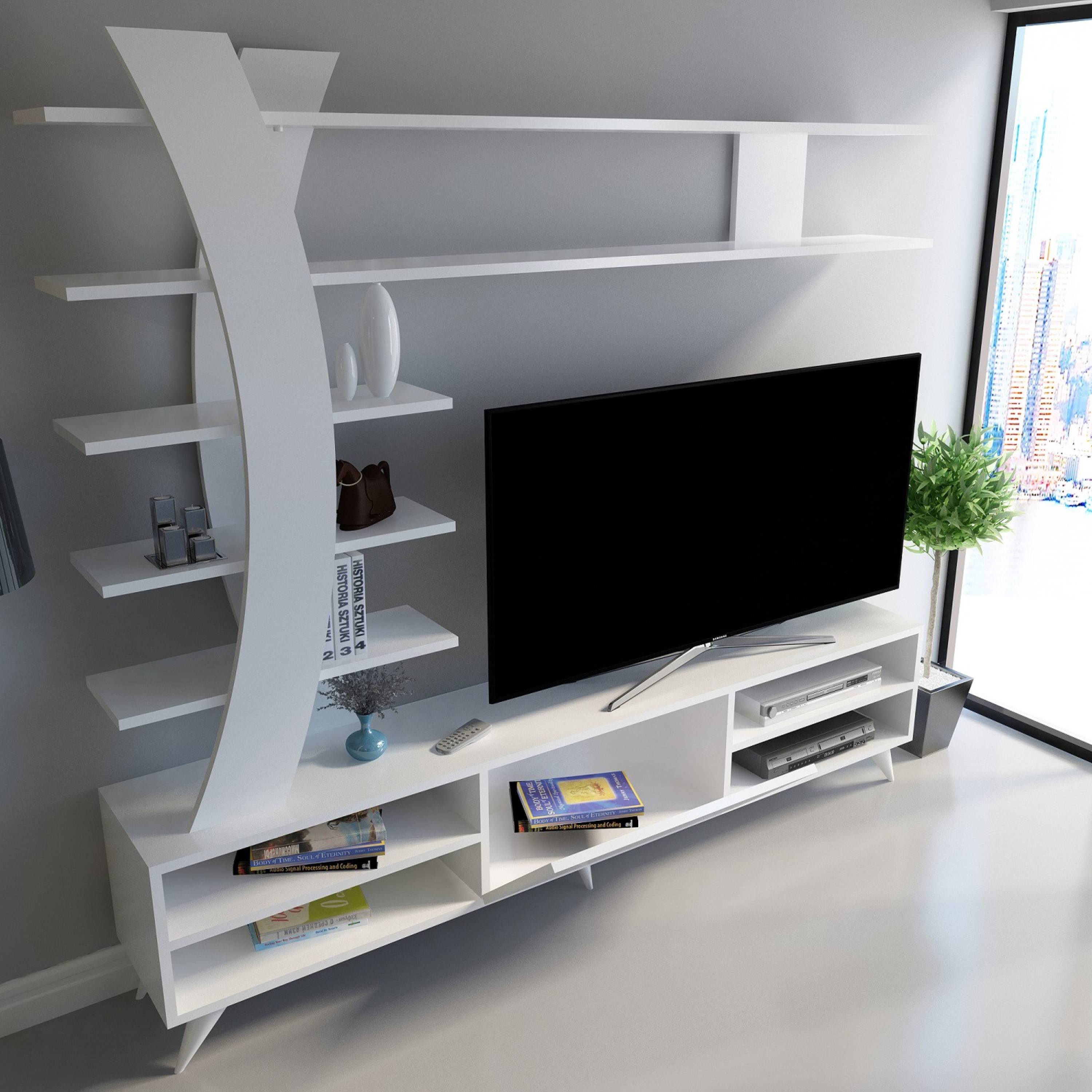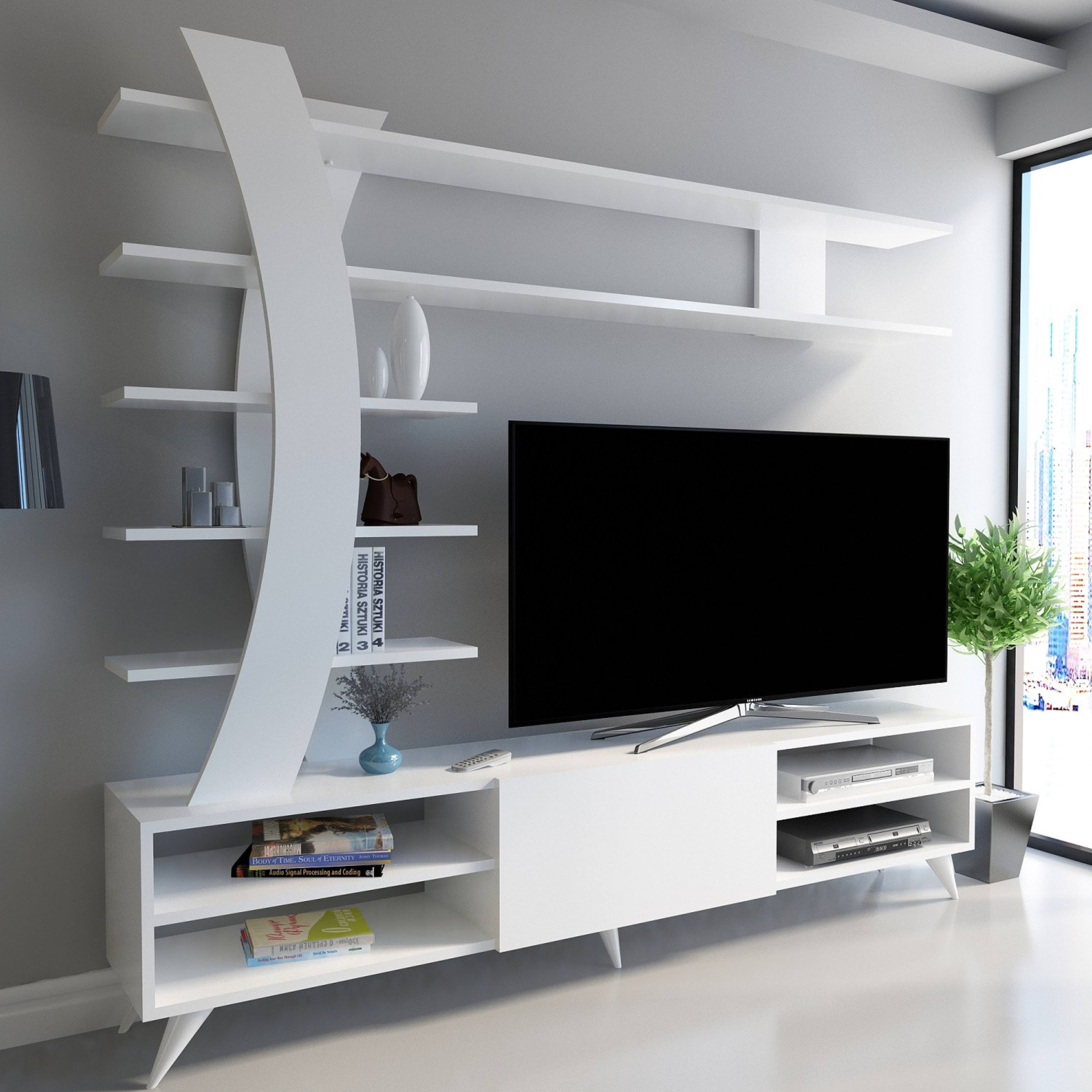 Obývací stěna DURU 1 představuje komplexní řešení funkčního nábytku do obývacího pokoje. Odstín bílé barvy vnese do vašeho obývacího pokoje moderní nádech.