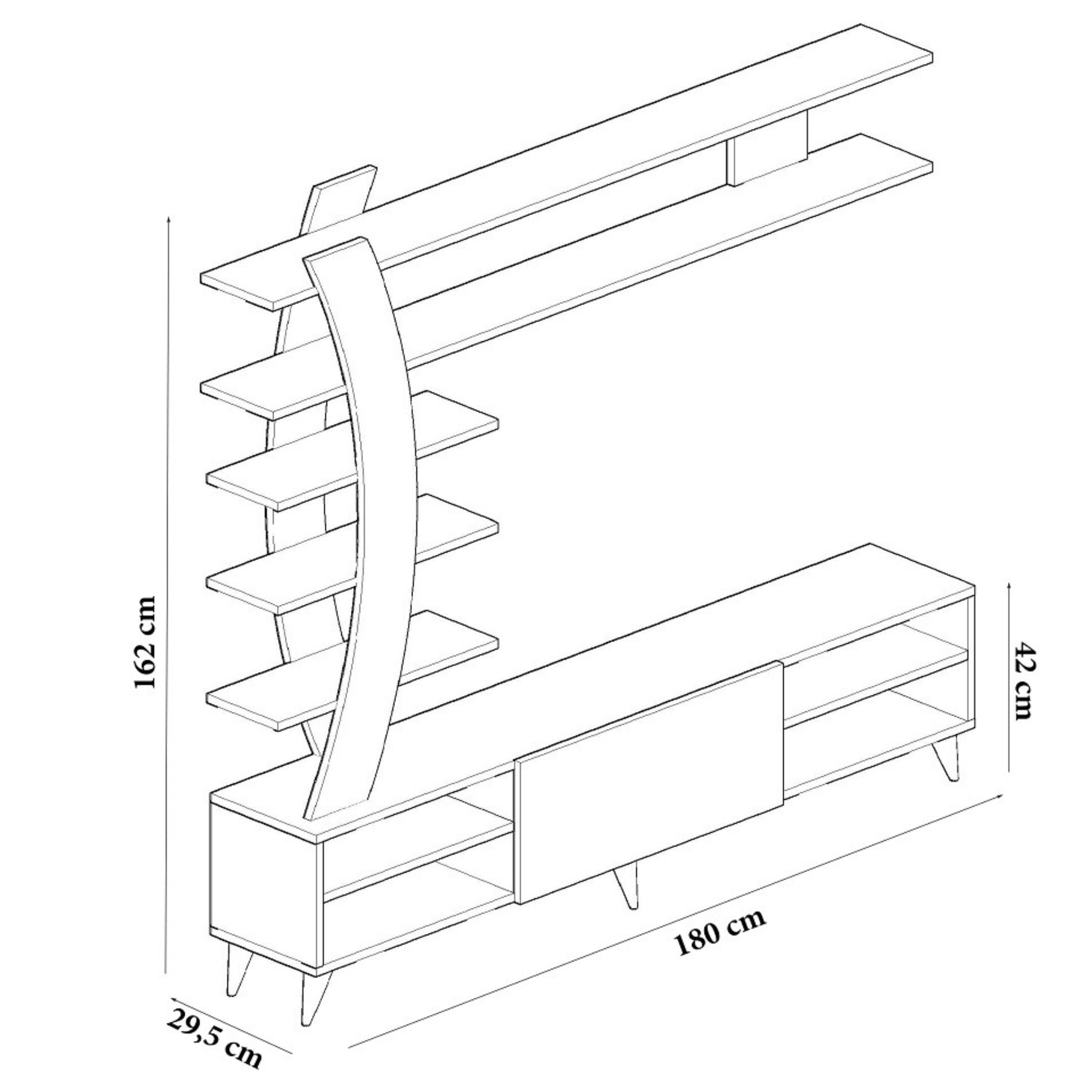 Vyrobena je z laminované dřevěného materiálu, pro který je typická snadná udržovatelnost a dlouhá životnost. Stěna nabízí dostatek kombinovaného úložného prostoru, kam můžete umístit nejen TV příslušenství, ale i různé drobnosti, které potřebujete mít po ruce.