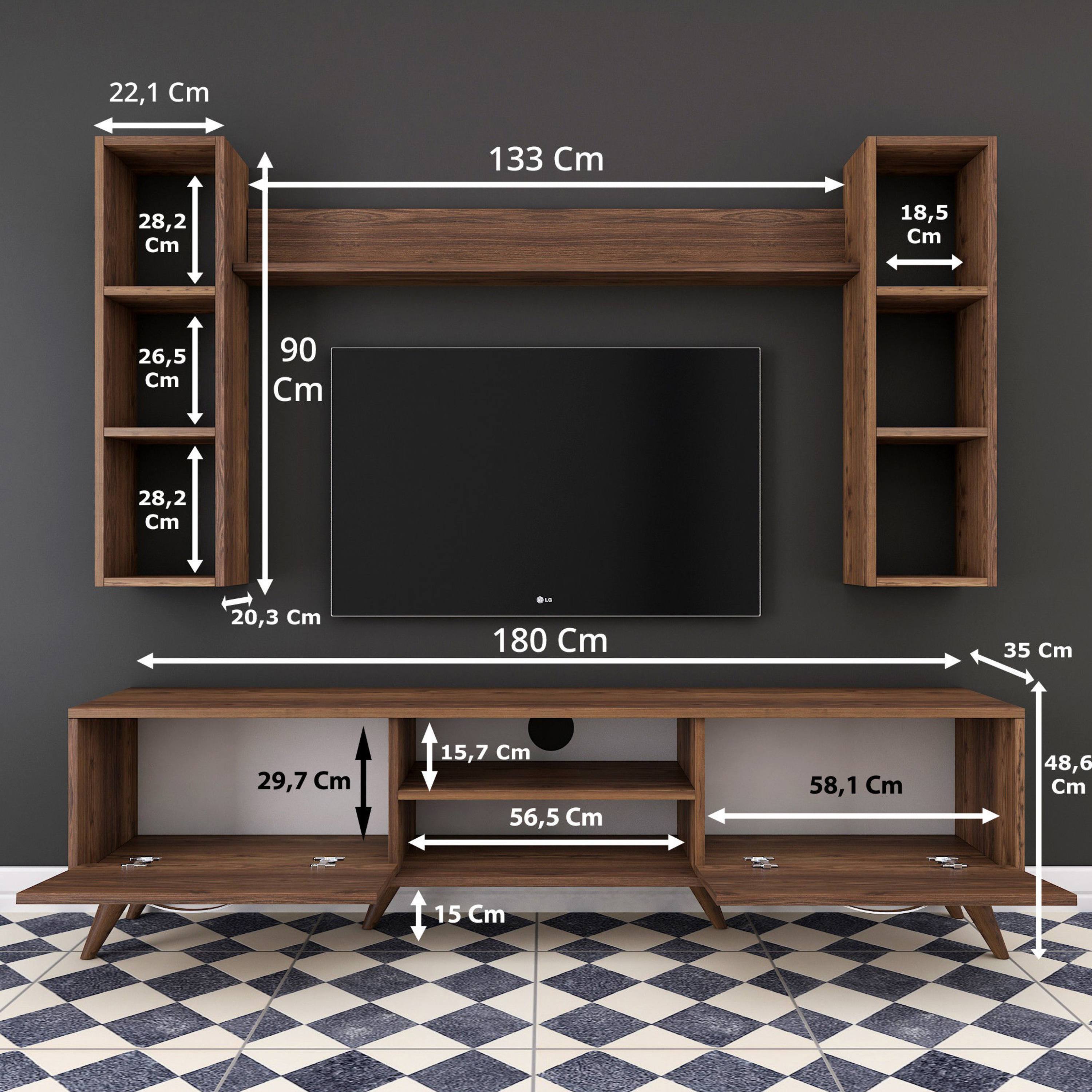 - Skládá se z: TV komoda, 2x nástěnný regál, nástěnná police