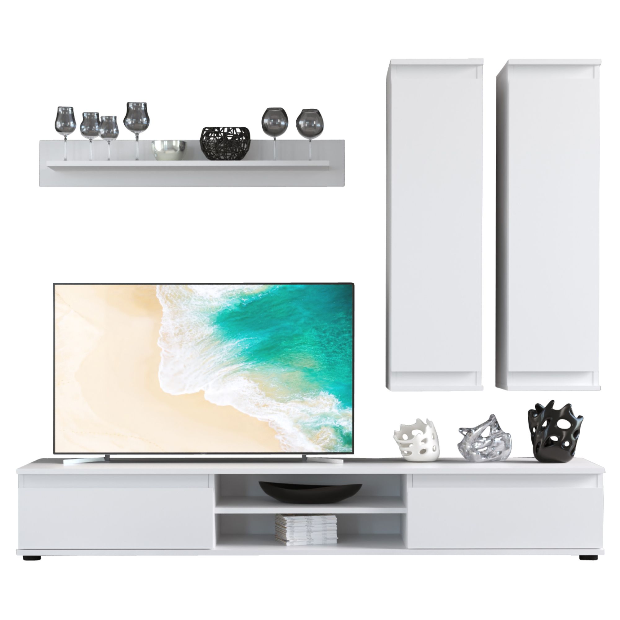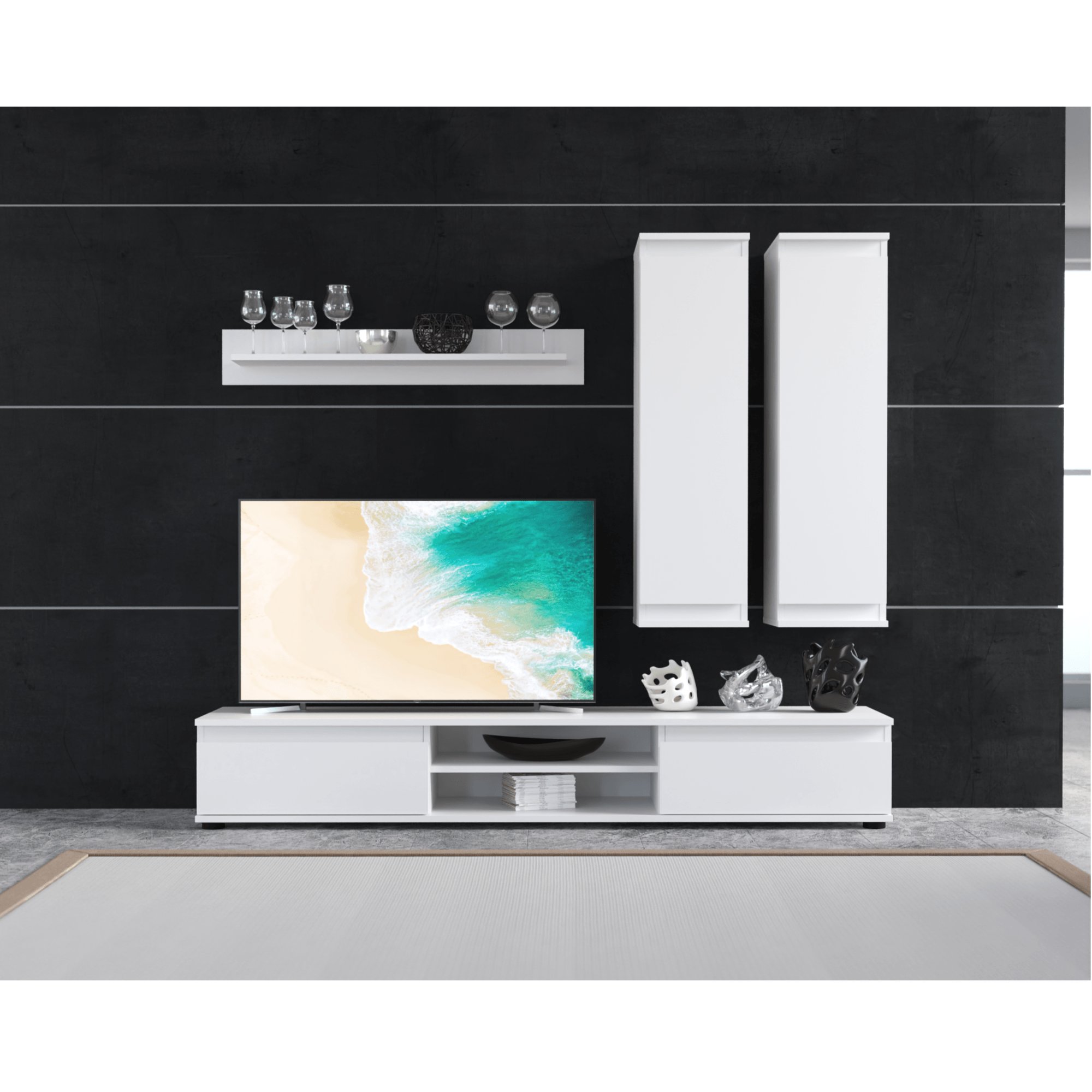 - Skládá se z: TV komoda, 2x závěsná skříňka, police