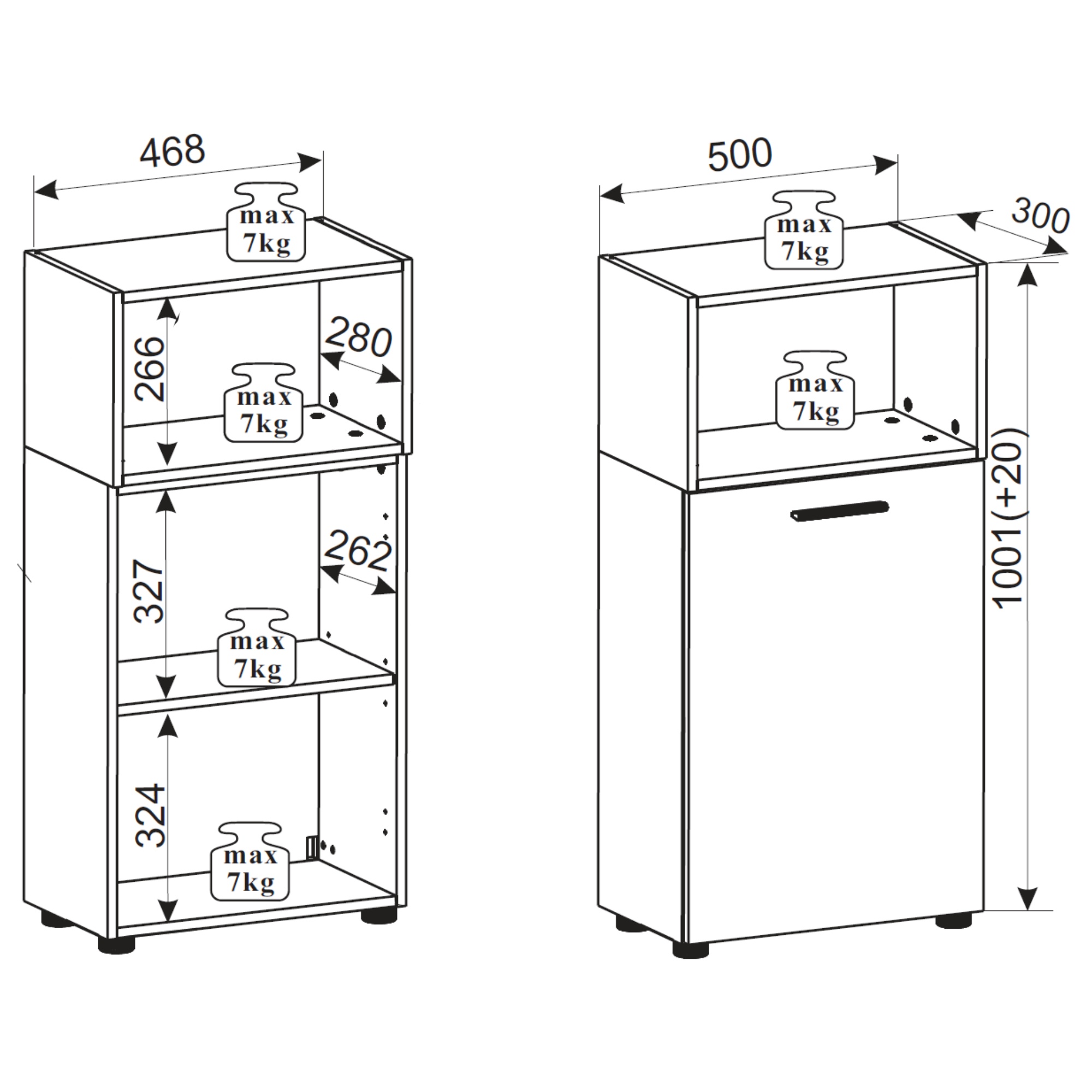 | Část 1 (ŠxVxH) | Komoda: 50x100x30 cm |