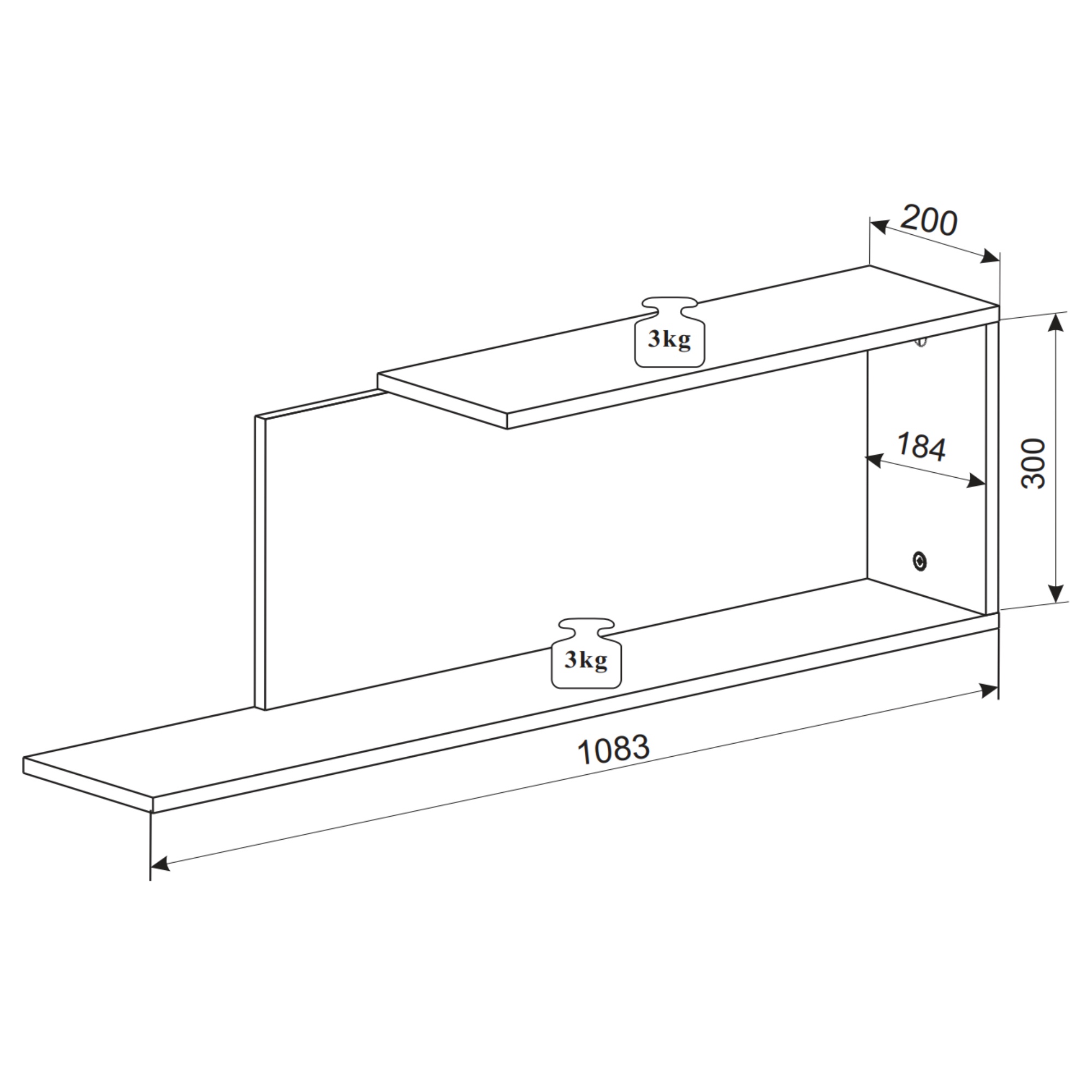 | Část 3 (ŠxVxH) | Nástěnná police: 110x33x20 cm |