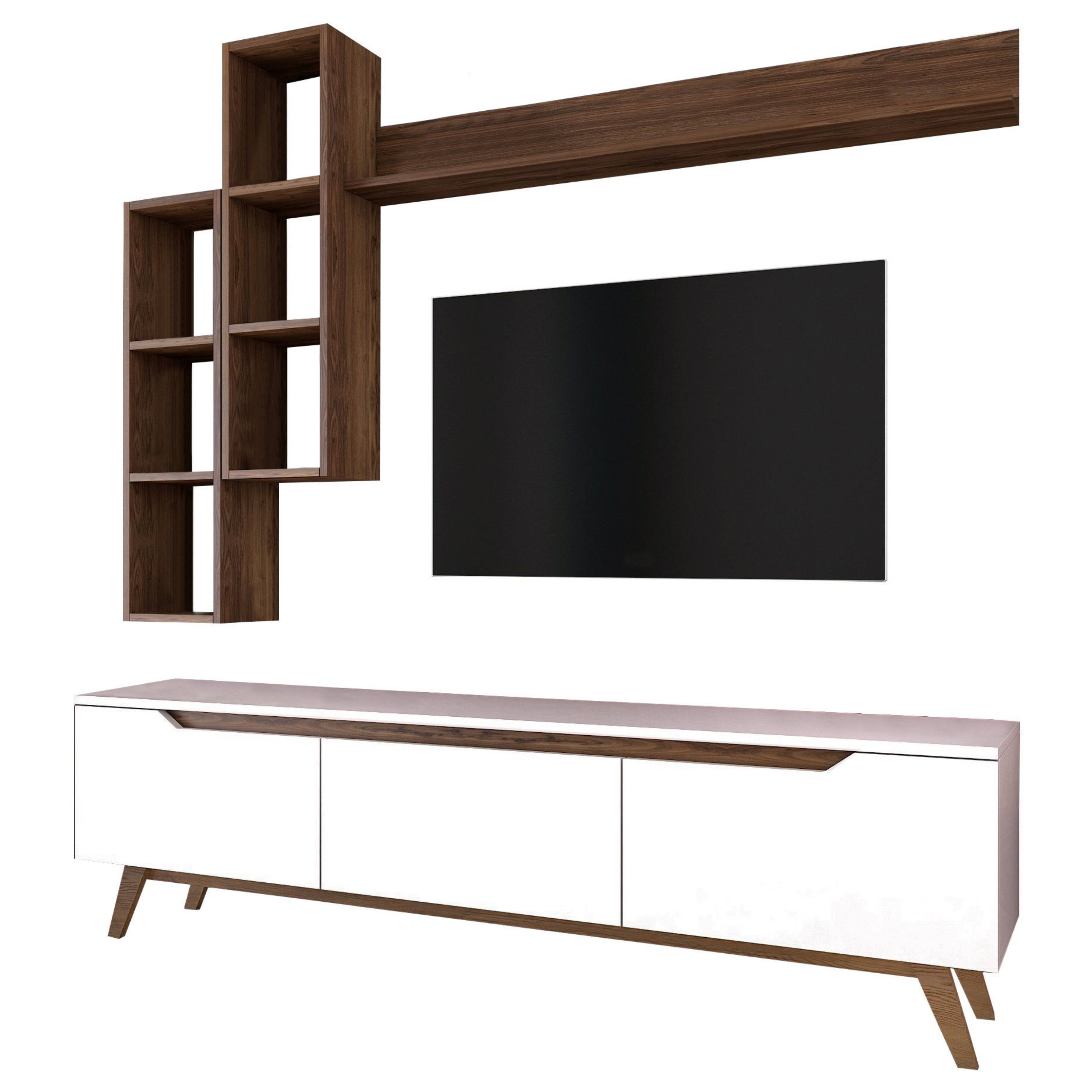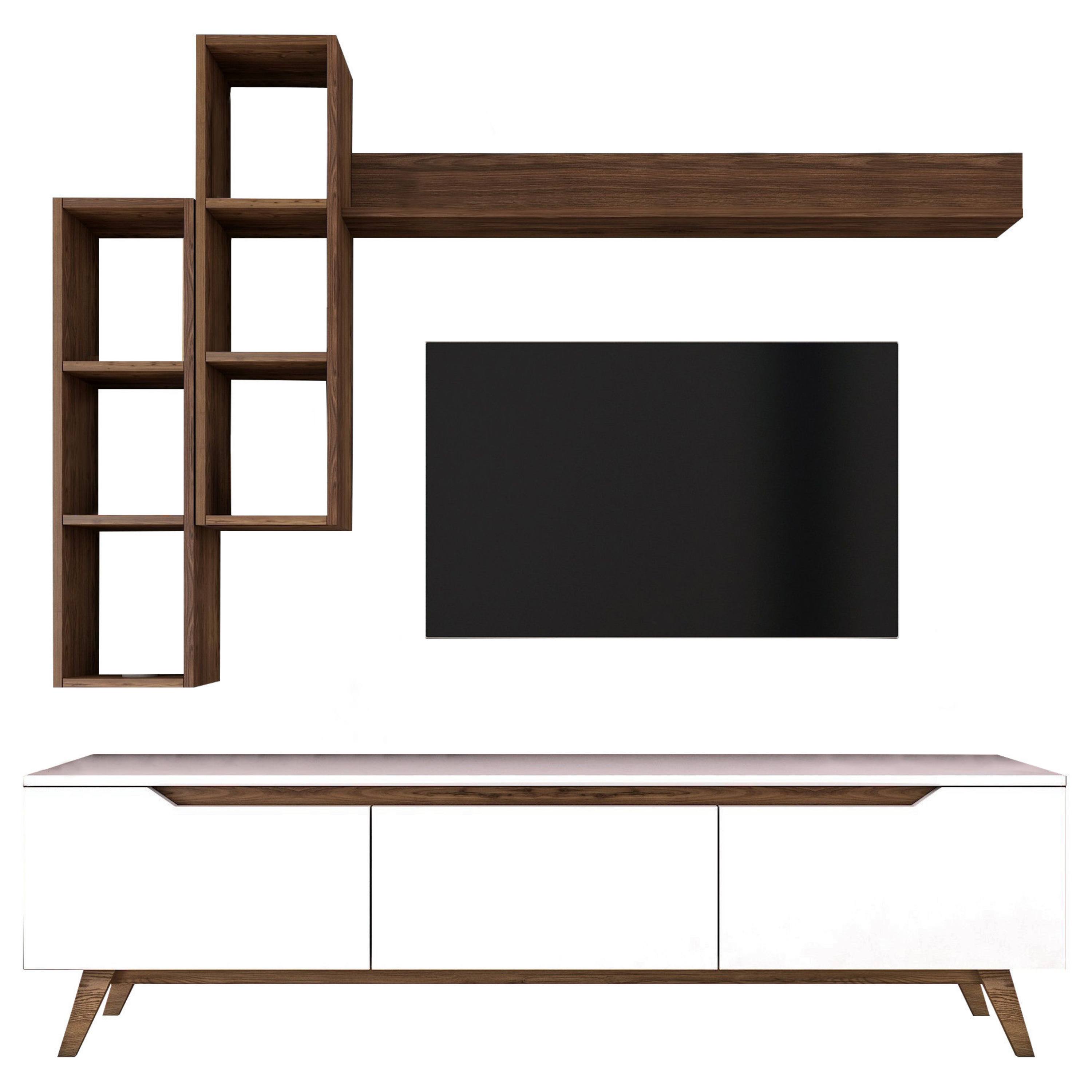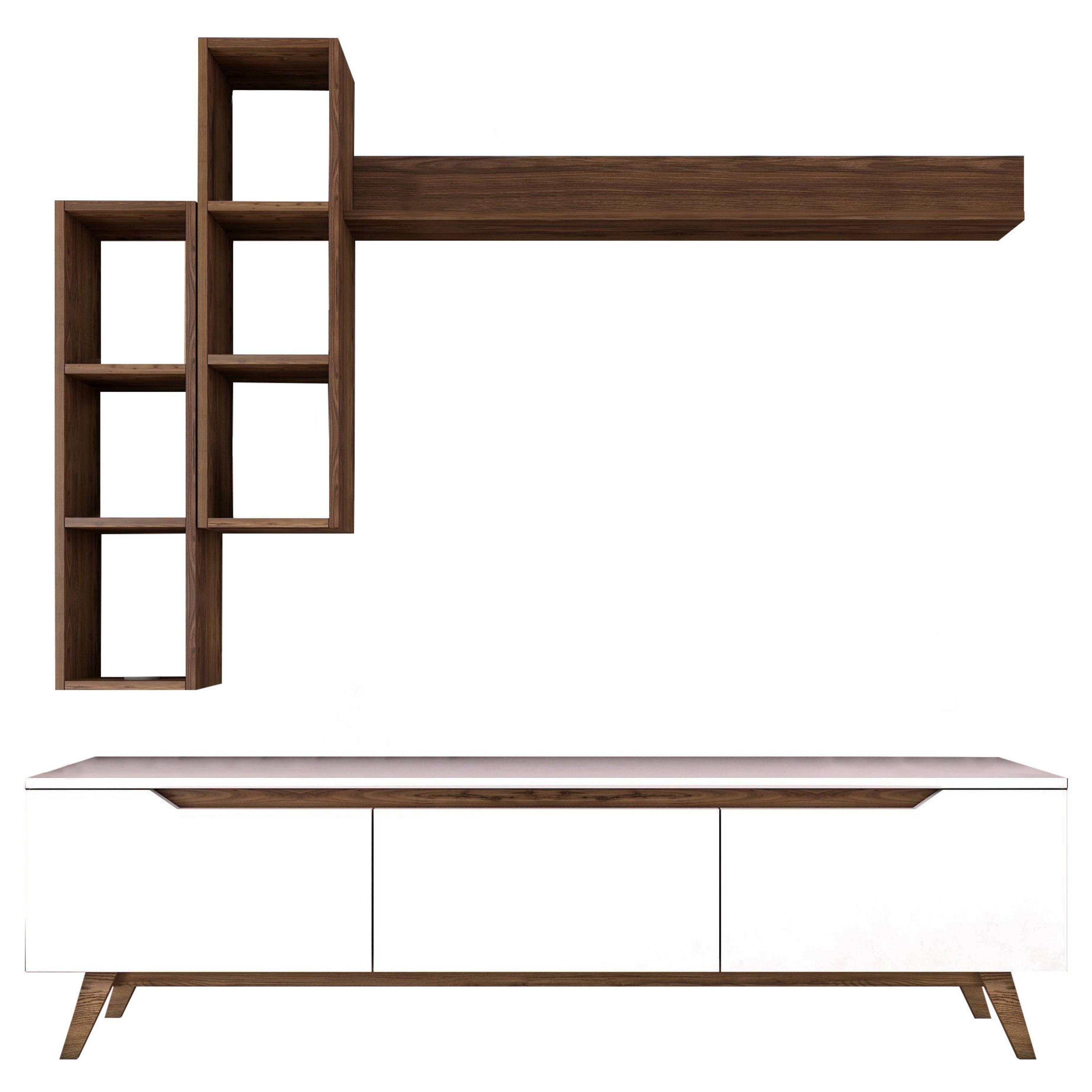 Obývací stěna MOLO představuje komplexní řešení funkčního nábytku do obývacího pokoje. Kombinace dekoru ořechu a odstínu bílé barvy vnese do vašeho obývacího pokoje přírodní nádech.