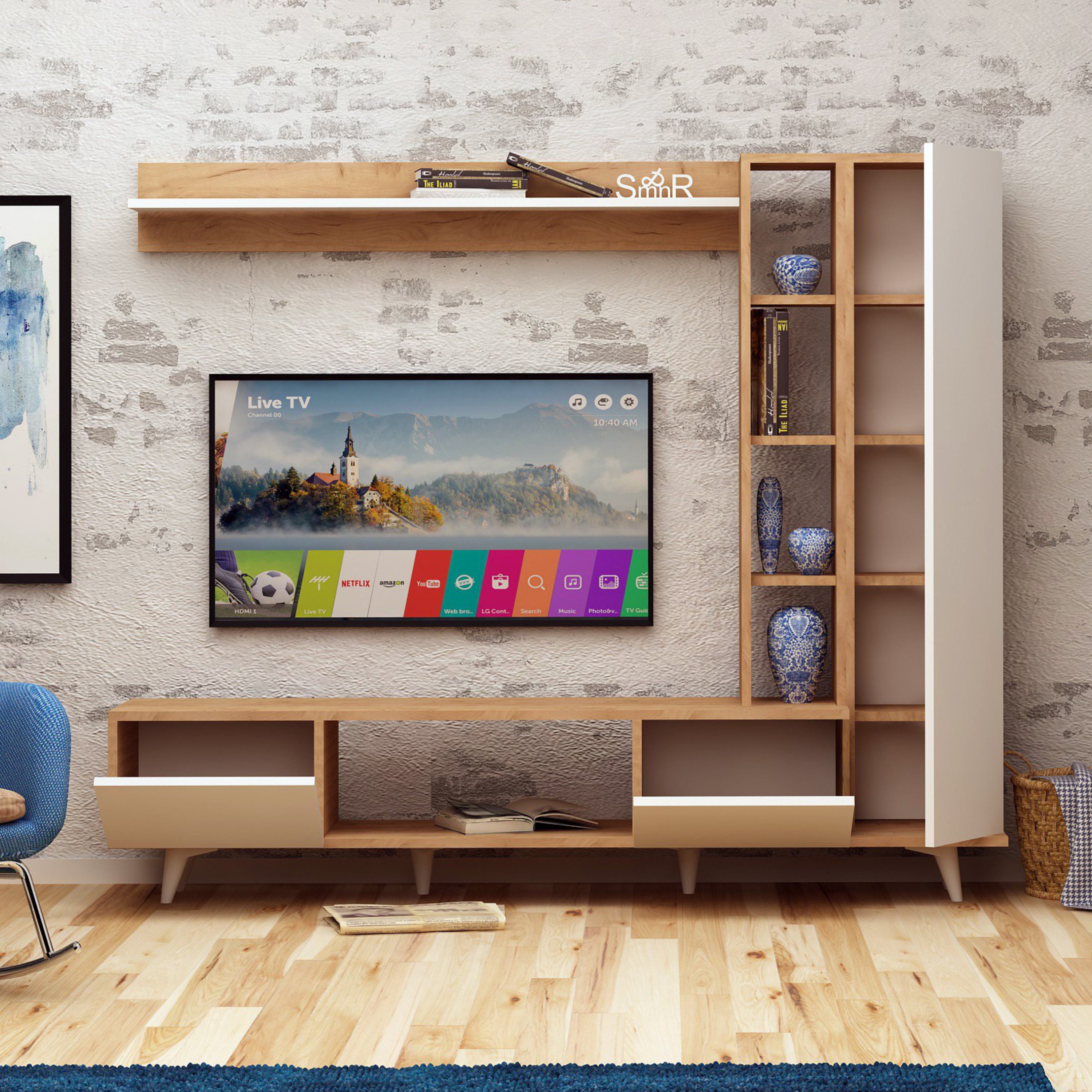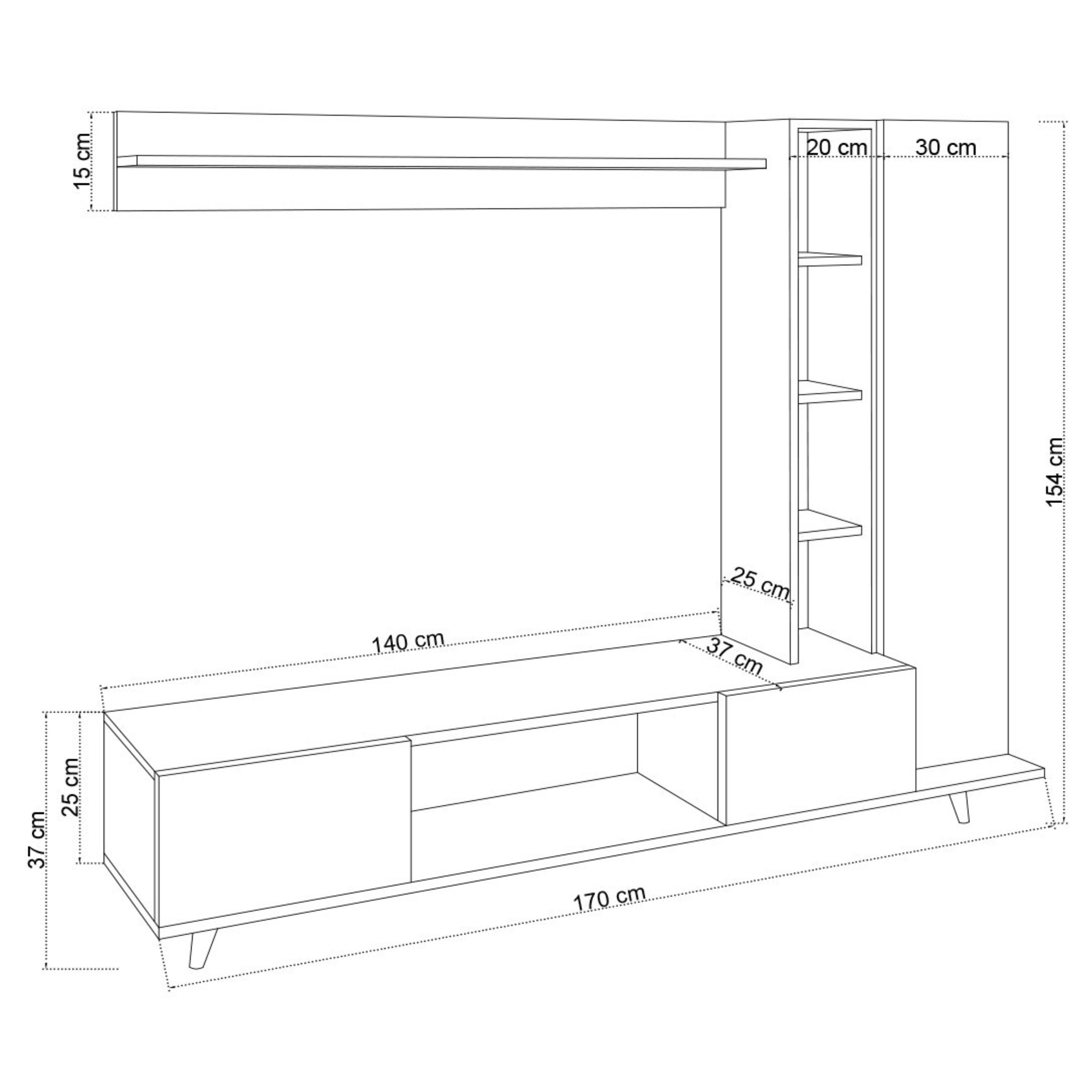 Vyrobena je z laminované dřevěného materiálu, pro který je typická snadná udržovatelnost a dlouhá životnost. Stěna nabízí dostatek kombinovaného úložného prostoru, kam můžete umístit nejen TV příslušenství, ale i různé drobnosti, které potřebujete mít po ruce.