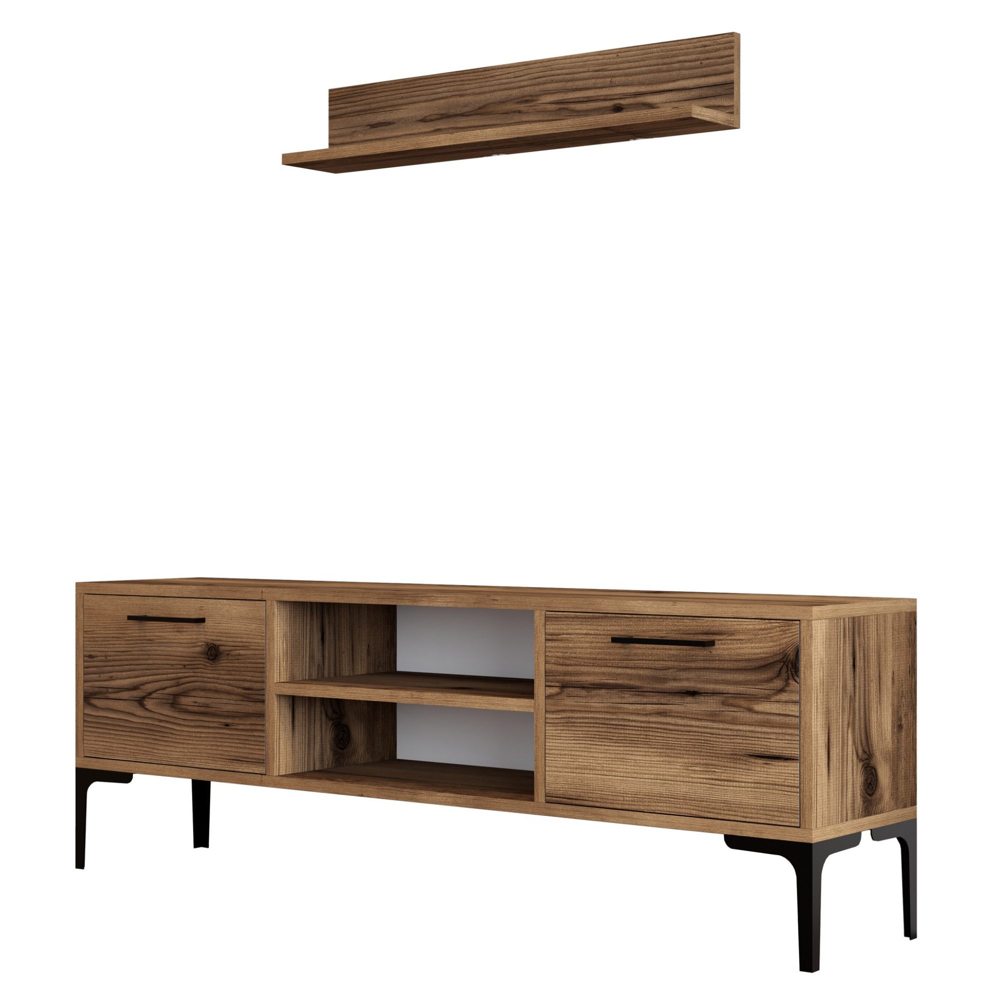 Obývací stěna RIGA vyhotovena v nadčasovém stylu se skládá z nástěnné police a TV stolku.