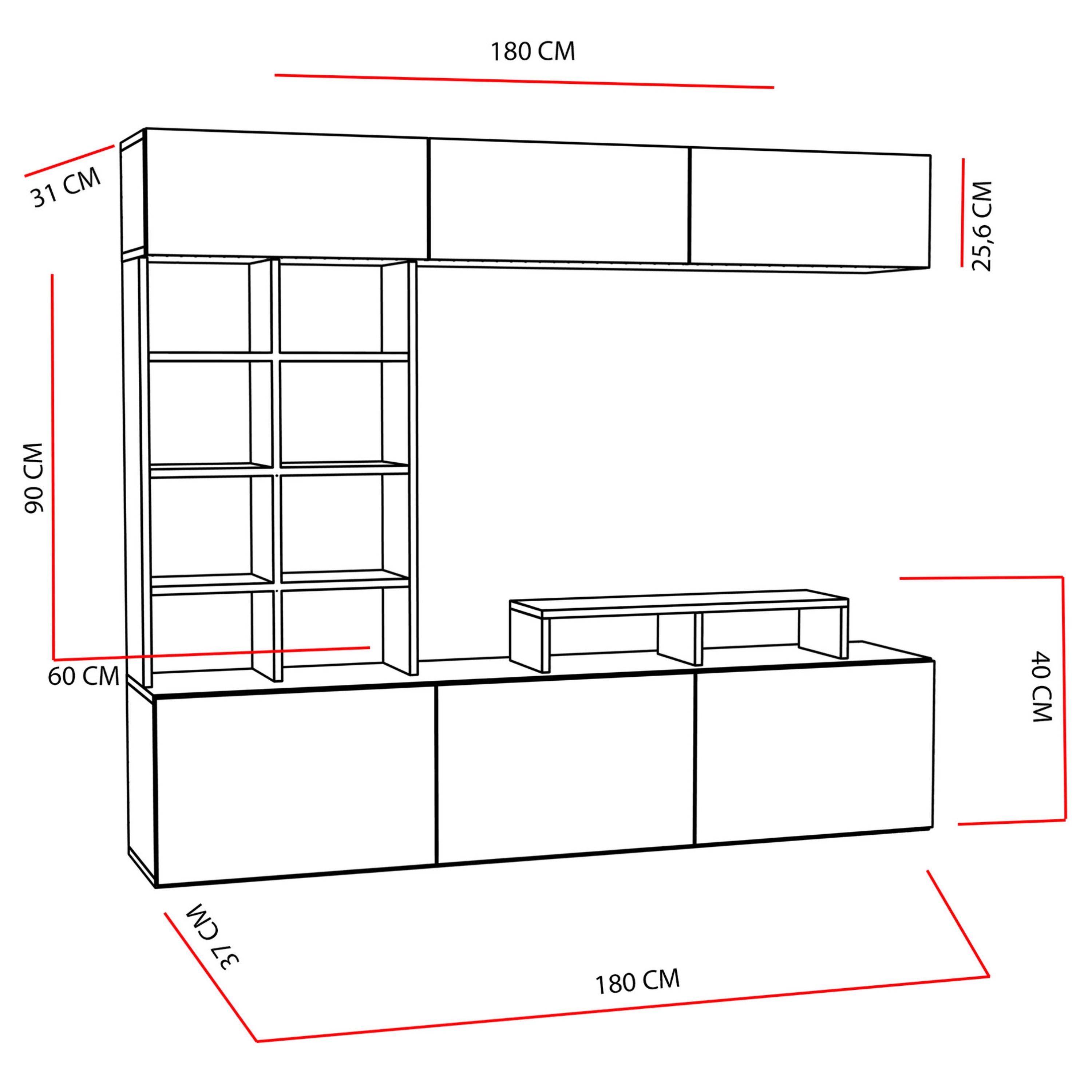 Vyrobena je z laminované dřevěného materiálu, pro který je typická snadná udržovatelnost a dlouhá životnost. Stěna nabízí dostatek kombinovaného úložného prostoru, kam můžete umístit nejen TV příslušenství, ale i různé drobnosti, které potřebujete mít po ruce.