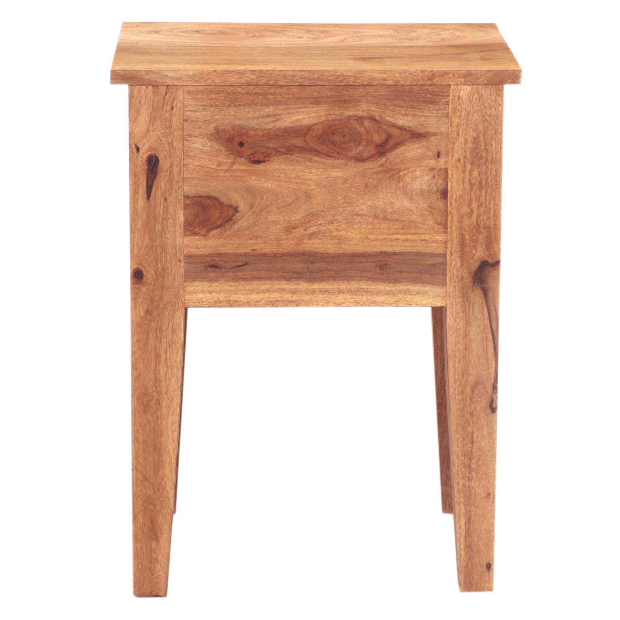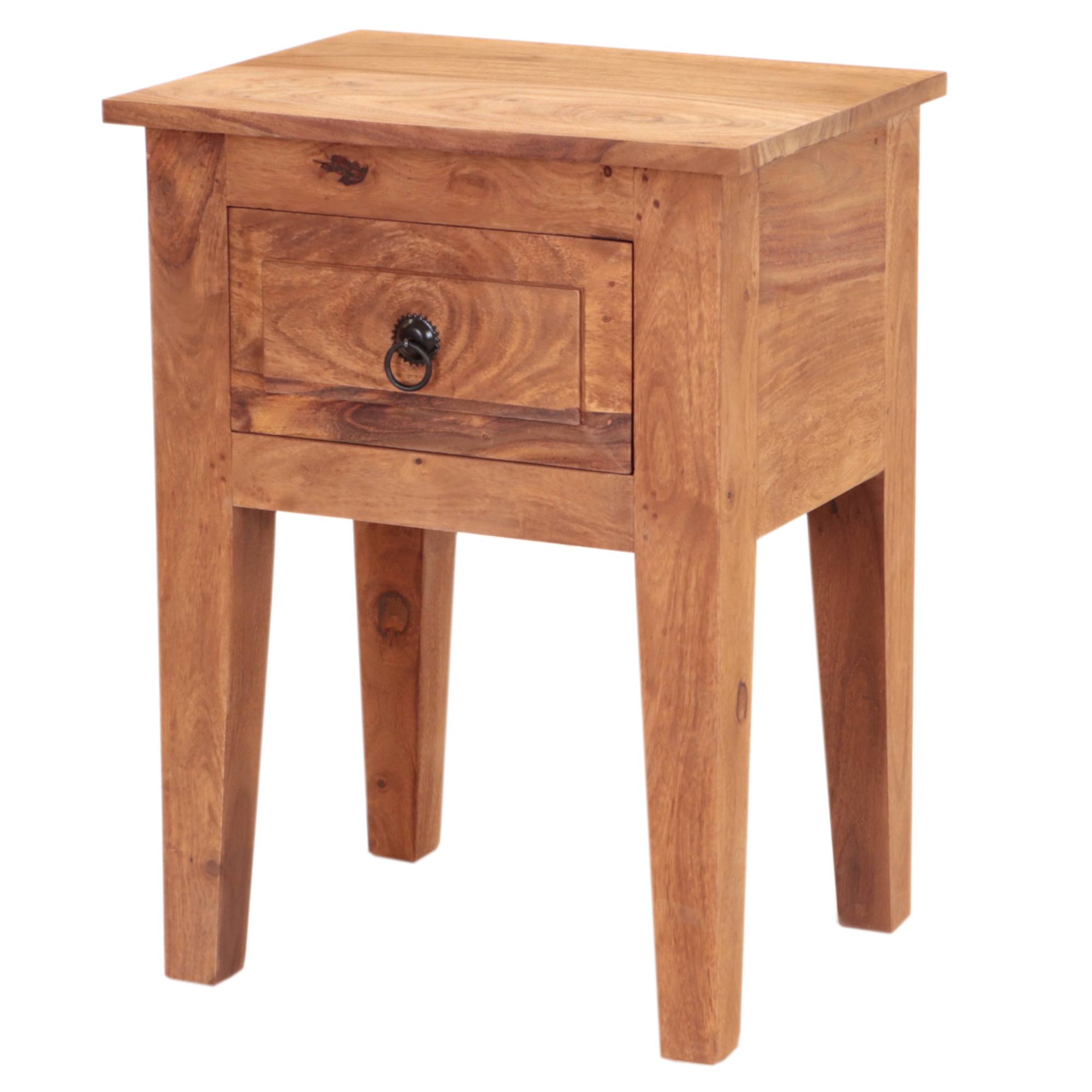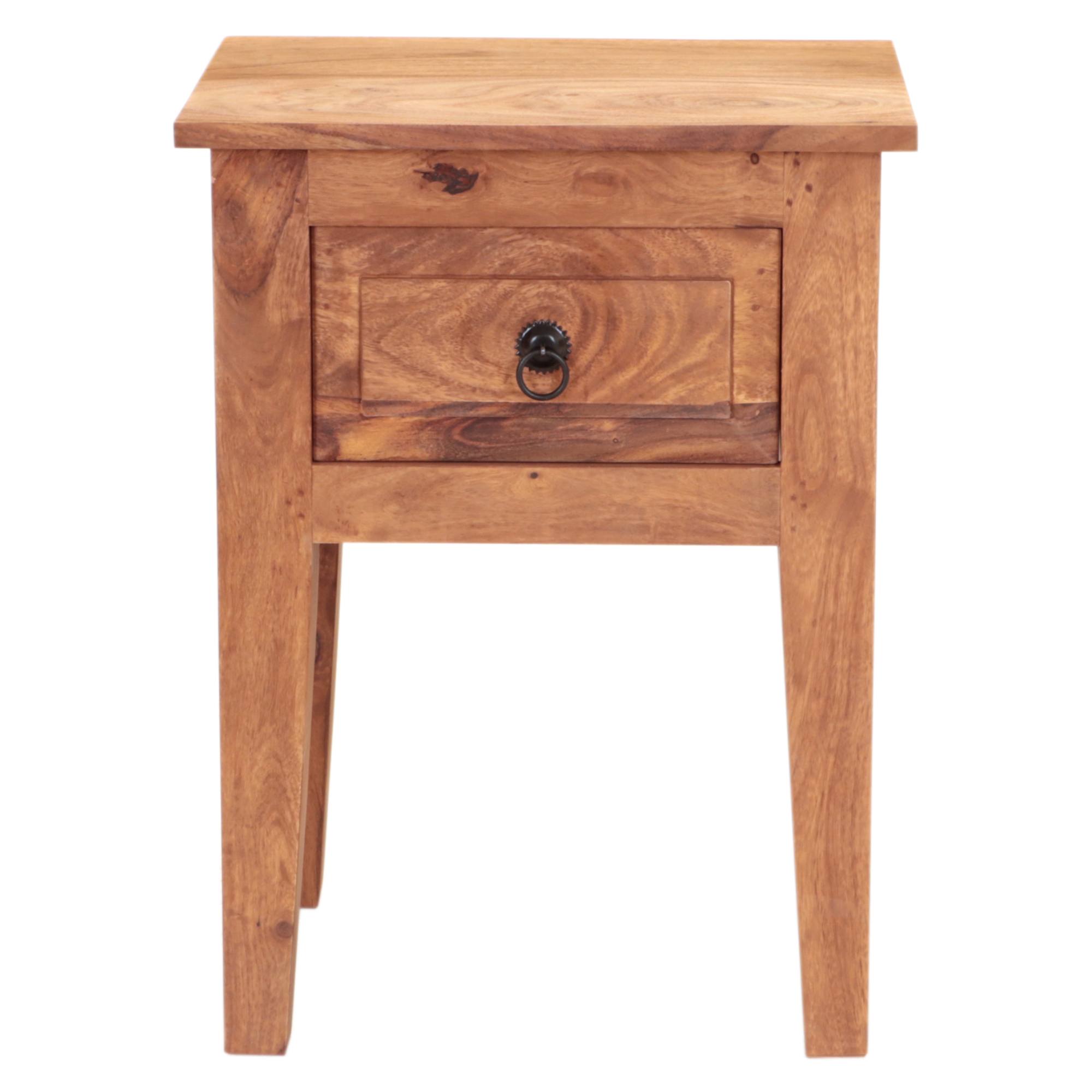 Fascinující kresba dřeva činí každý kus tohoto stolku naprostým originálem, který dodá vašemu interiéru autentický a přírodní vzhled. Stolek je vybaven jednou praktickou zásuvkou s kovovým úchytem, ideální pro odkládání drobností, které potřebujete mít po ruce. Pevná konstrukce a robustní nohy zajišťují stabilitu a odolnost, což činí tento kousek ideálním společníkem vedle pohovky či postele.