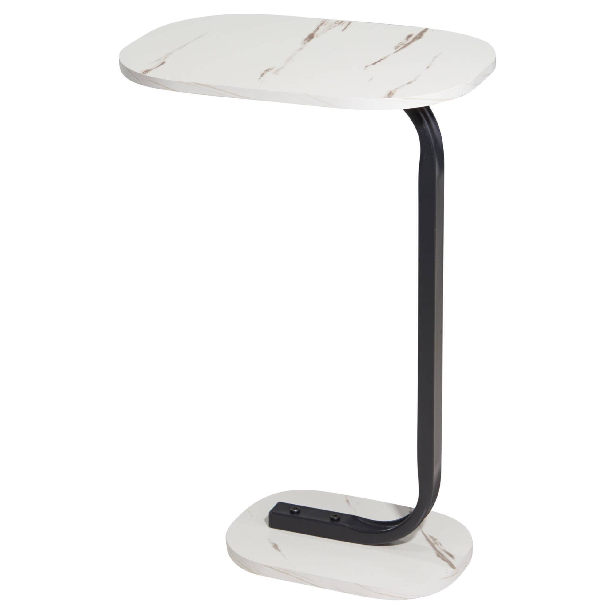 Je vybaven praktickou kovovou nohou ve tvaru C. Tento tvar umožňuje jej snadno přisunout k sedací soupravě či posteli a využít ho jako všestranný odkládací stolek. Vrchní deska a podstavec jsou vyrobeny z laminované dřevovláknité MDF desky s dekorem mramoru, který stolku dodává luxusní nádech. Kombinace těchto materiálů zajišťuje snadnou údržbu.