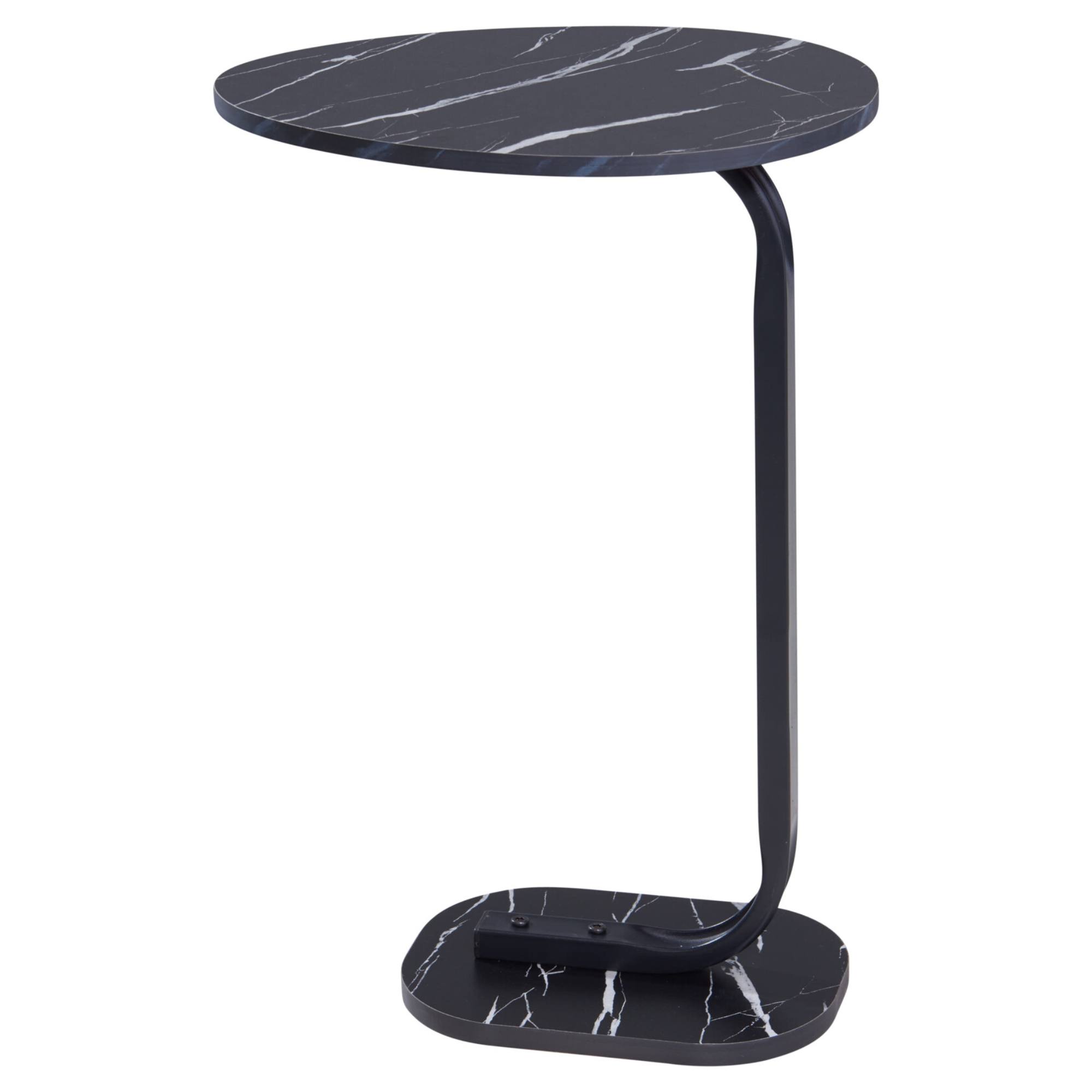 Je vybaven praktickou kovovou nohou ve tvaru C. Tento tvar umožňuje jej snadno přisunout k sedací soupravě či posteli a využít ho jako všestranný odkládací stolek. Vrchní deska a podstavec jsou vyrobeny z laminované dřevovláknité MDF desky s dekorem mramoru, který stolku dodává luxusní nádech. Kombinace těchto materiálů zajišťuje snadnou údržbu.
