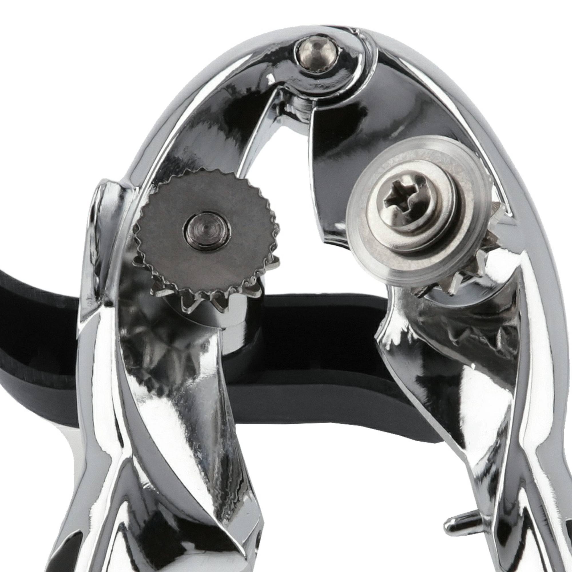 Otvírák je vyroben z litého zinku. Otočný plastový knoflík a pogumovaná rukojeť usnadňují manipulaci s otvírákem. Nasaďte jej na okraj konzervy a točte knoflíkem, dokud nepůjde víko konzervy otevřít.