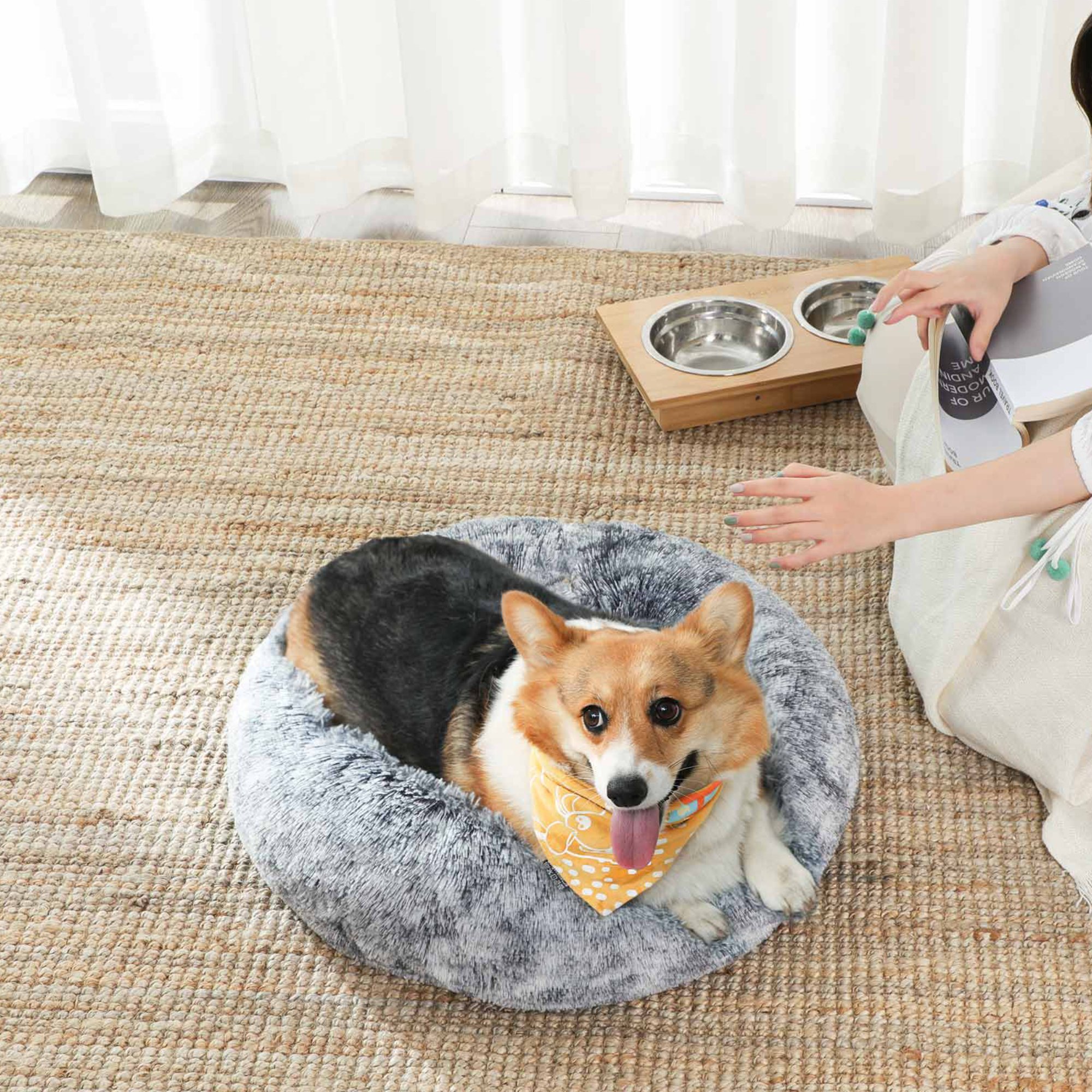 - Doplňující poznámka: Chraňte pelech před teplotami nad 40 °C, jako topení či vyhřívané podlahy. Pokud máte podlahové vytápění, umístěte pelech na koberec.