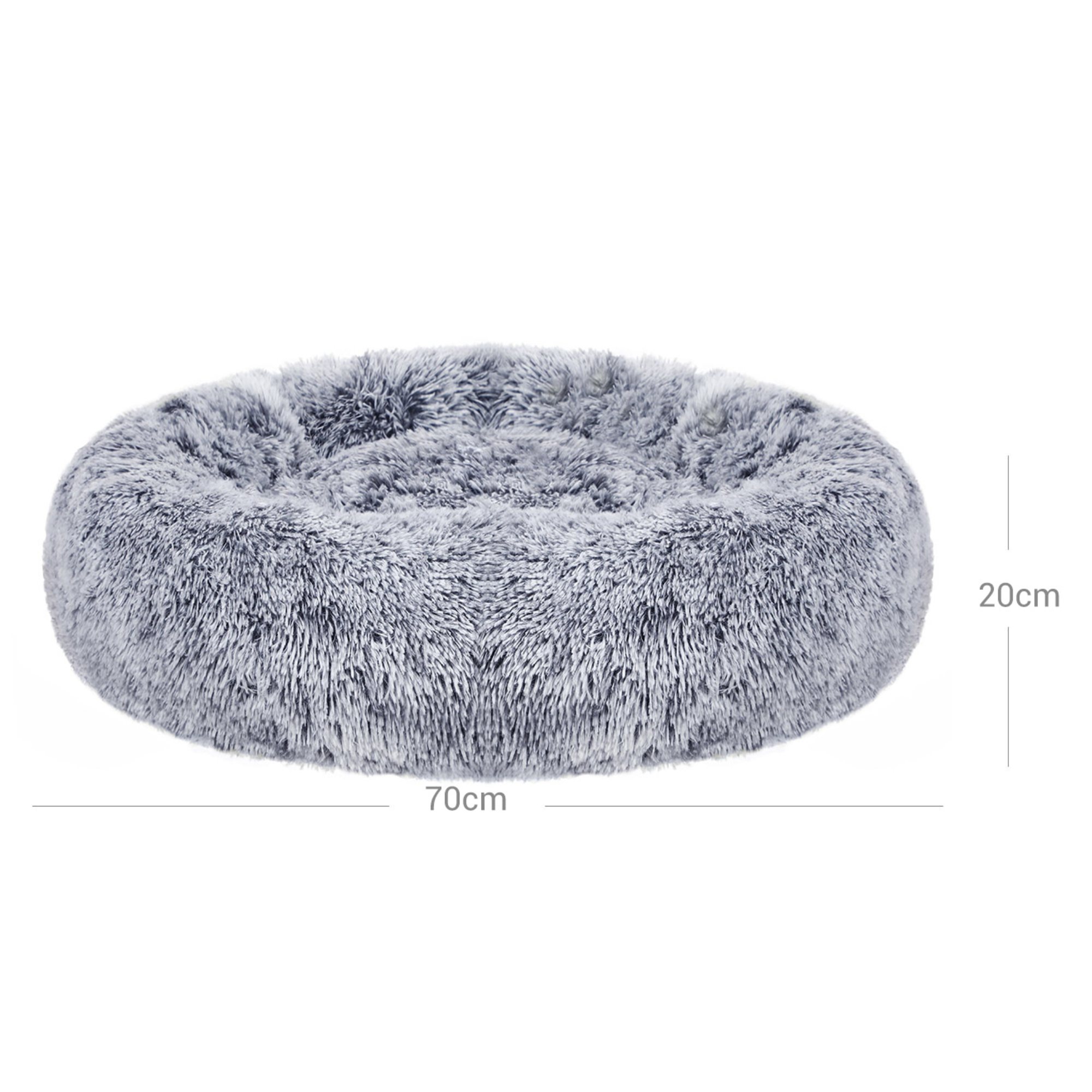Pelech o průměru 70 cm je vhodný pro menší psy. Je vyroben z hladkého, měkkého materiálu s polypropylenovou výplní. Měkká výplň zajišťuje maximální komfort při odpočinku. Spodní strana je opatřena protiskluzovou vrstvou, která udrží pelíšek na místě. Vytváří ideální prostor pro klidný spánek i ničím nerušený odpočinek.