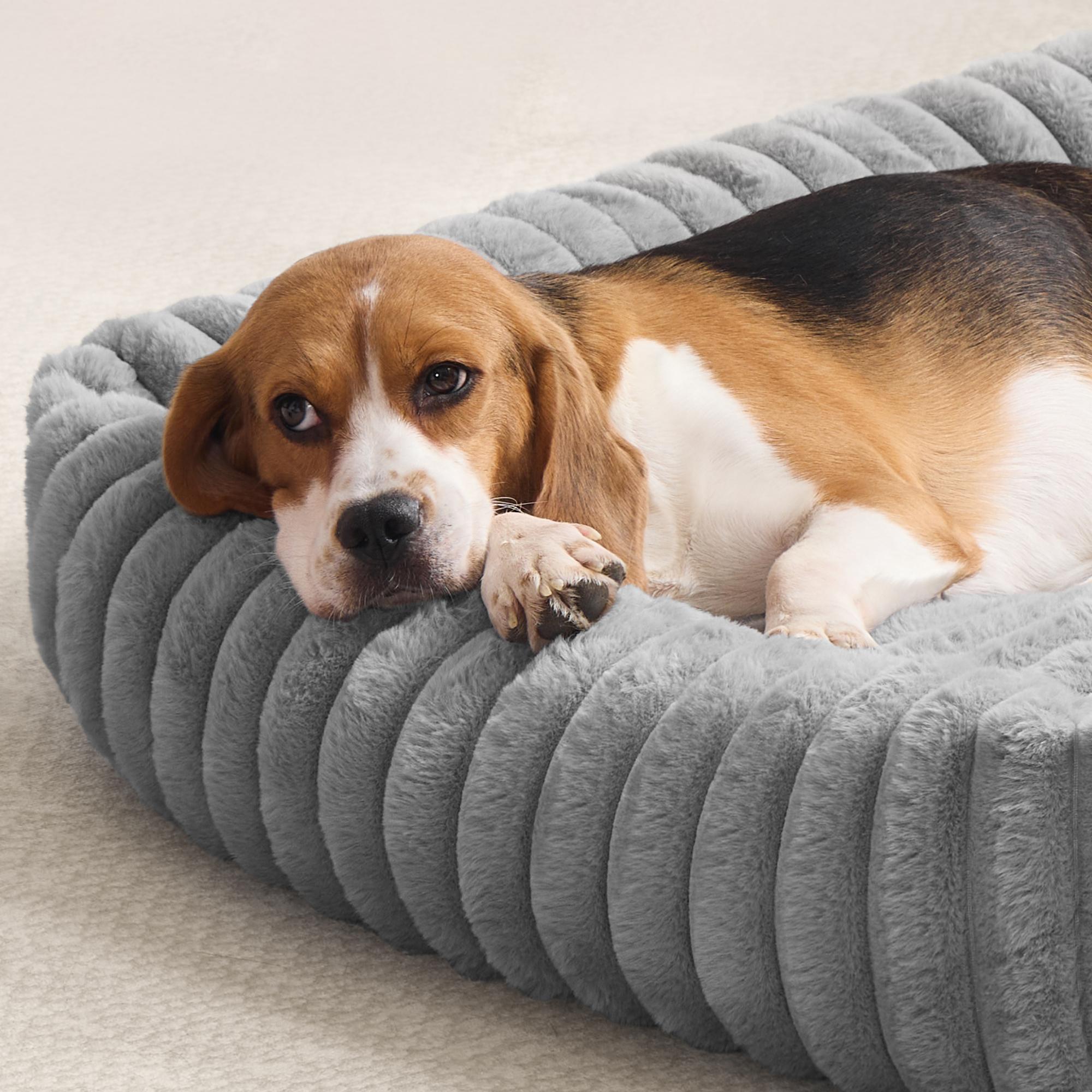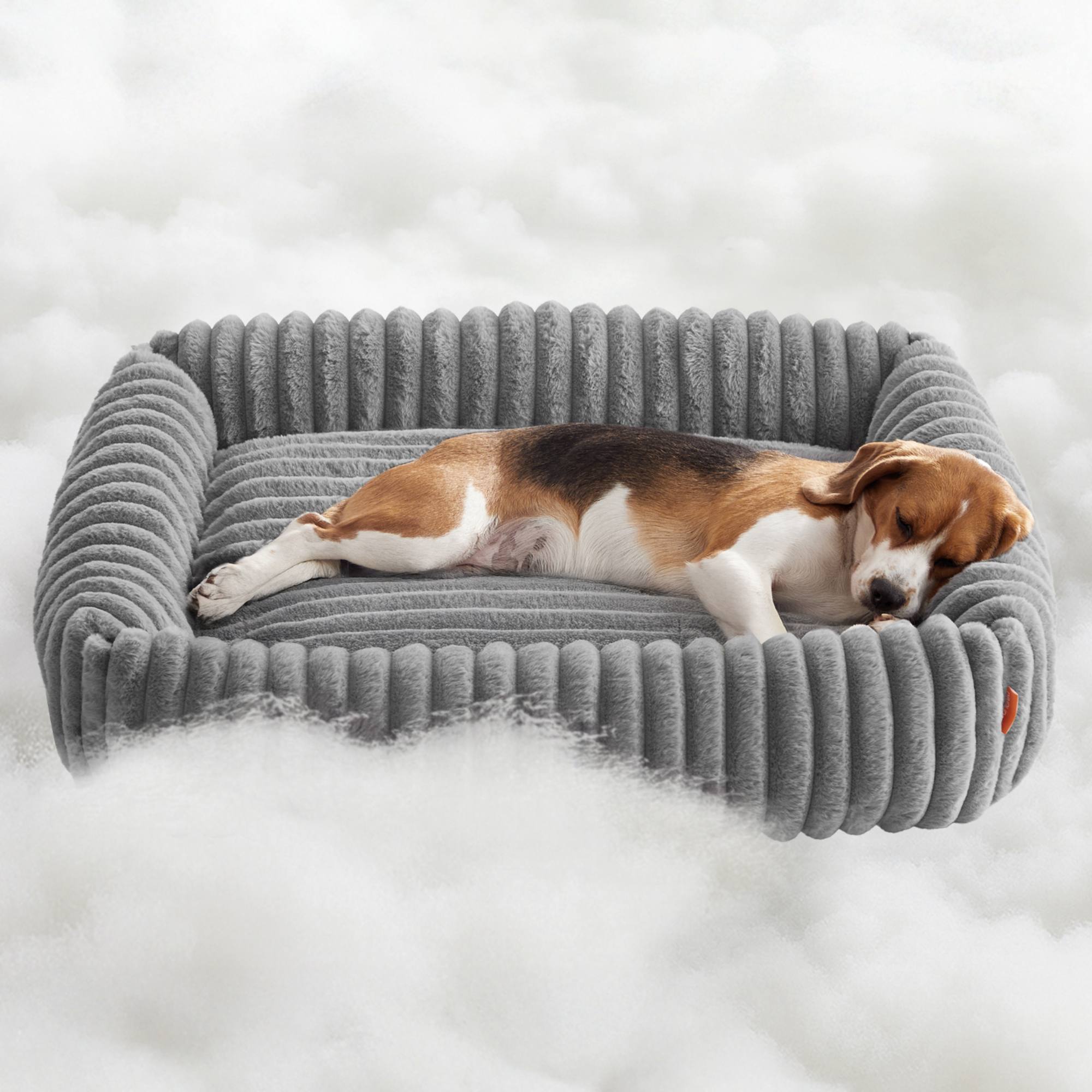 Pelech o velikosti 91x68 cm je vhodný pro psy do 25 kg. Je vyroben z hladké a měkké látky imitující králičí kožešinu doplněnou o žebrovaný povrch. Vyvýšené okraje v kombinaci s měkkou polypropylenovou výplní podpírají krk a hlavu, čímž zajišťují maximální komfort a pocit bezpečí. Spodní strana je opatřena protiskluzovou vrstvou, která udrží pelíšek na místě. Vytváří ideální prostor pro klidný spánek i ničím nerušený odpočinek.