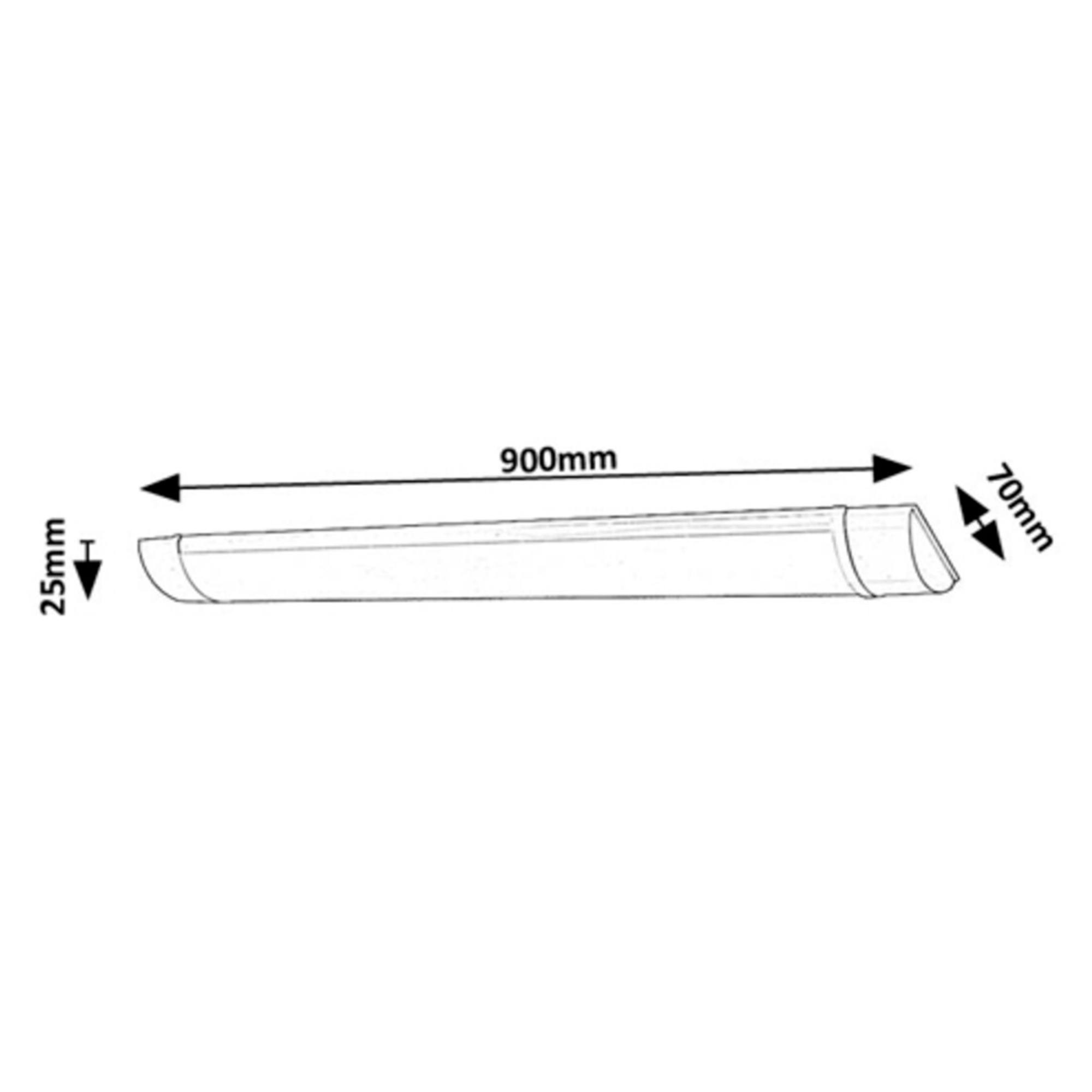 Svítidlo o šířce 90 cm je vyrobeno z plastu v bílé barvě a jednoduchém designu, díky kterému zapadne do moderní i klasické kuchyně. Disponuje integrovaným LED světelným zdrojem s maximálním příkonem 24W. Má světelný tok 2400 lumenů s teplotou světla 4000 Kelvinů, která se označuje jako neutrální bílá, čímž imituje denní světlo. Je tedy ideální volbou do kuchyně díky dobré viditelnosti bez podráždění očí. Díky LED zdroji je energicky úsporné s dlouhou životností.