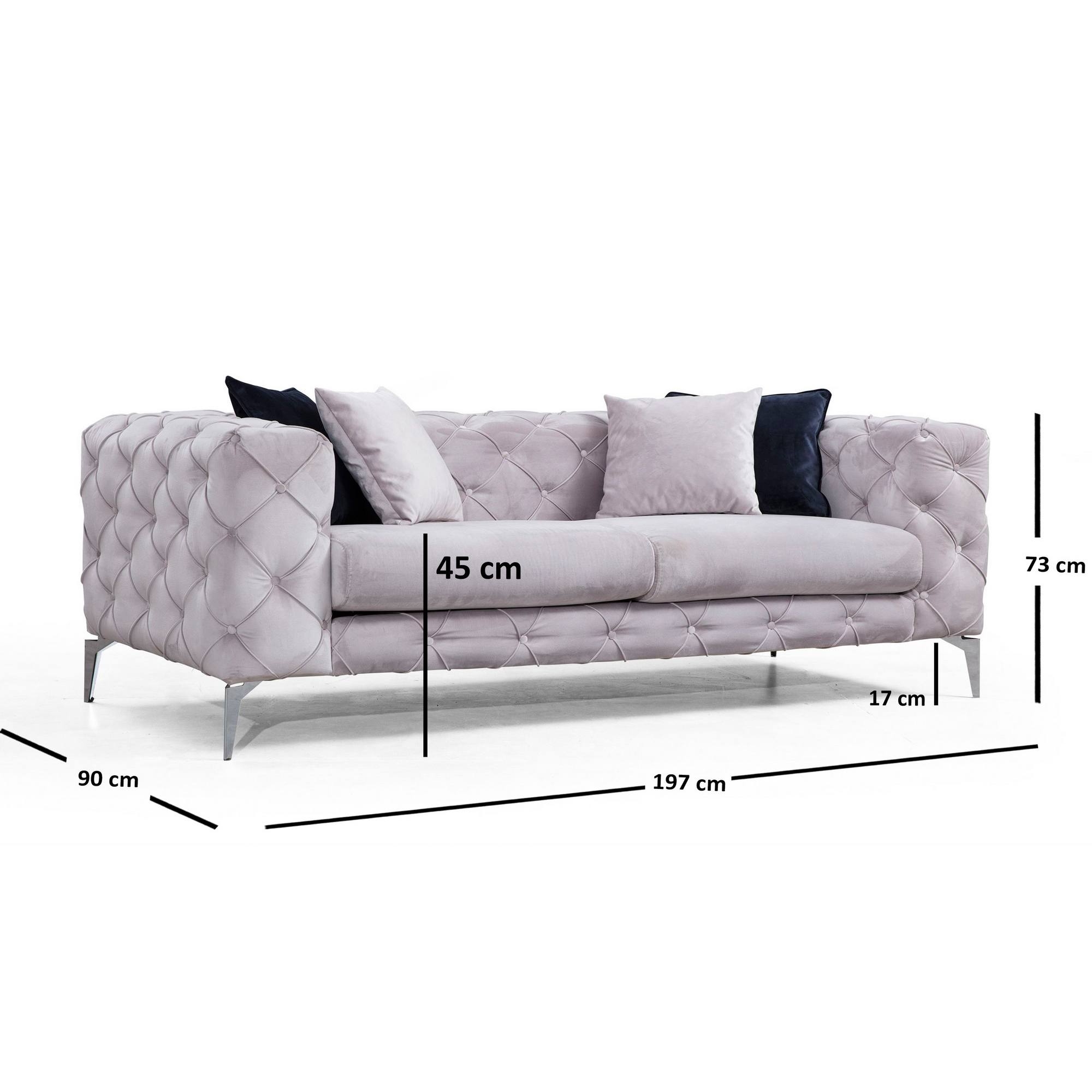 Okouzlí vás na první pohled a dodá místnosti nadčasový a elegantní vzhled. Svojí měkkostí a oblými tvary přímo svádí k relaxaci a odpočinku. Díky potahu sametového vzhledu se budete cítit v křesle přímo královsky. Záda potažená tkaninou vám umožňují rozhodnout se, zda pohovku umístíte do prostoru nebo ke stěně. Kovové nožky podtrhují elegantní vzhled a zajišťují její stabilitu.
