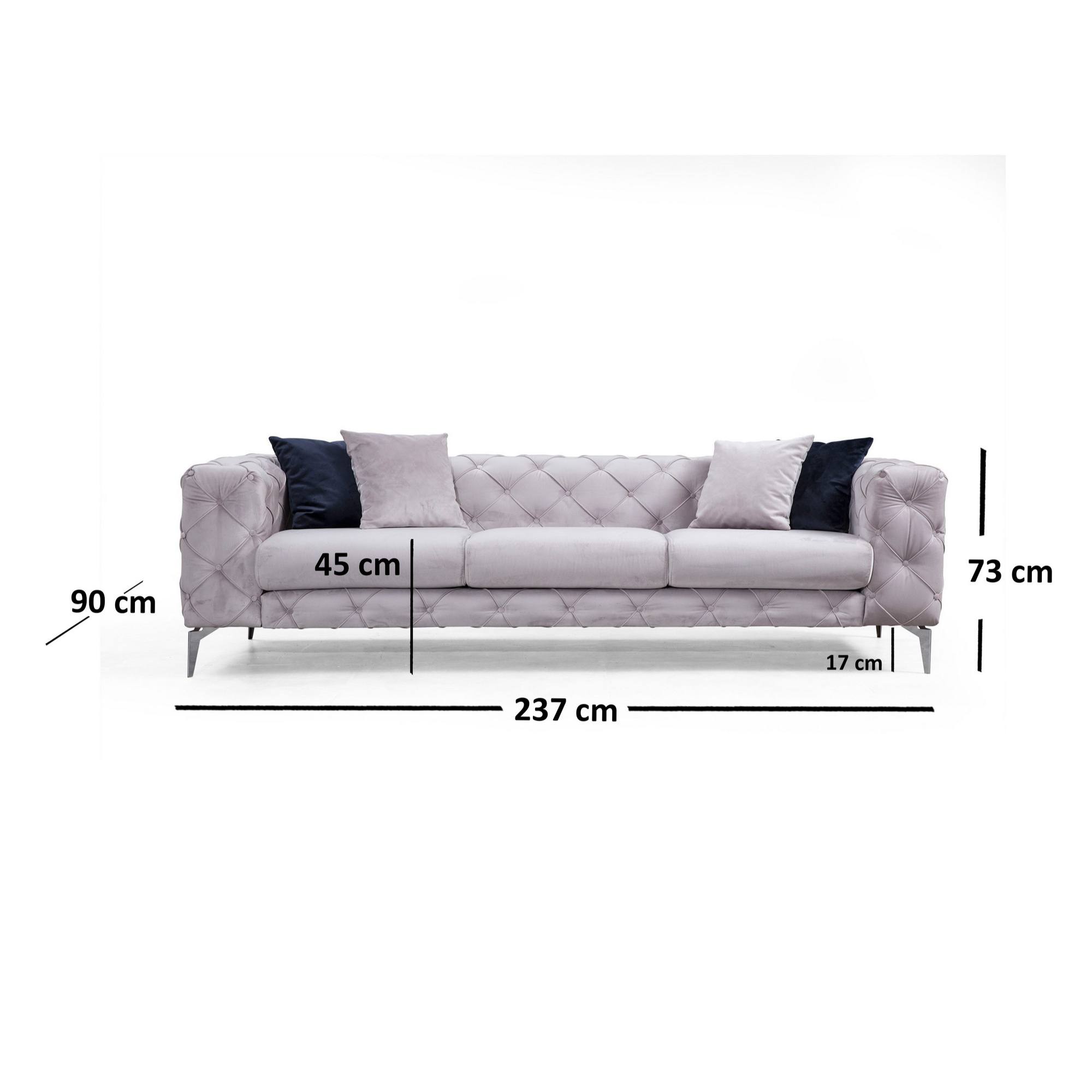 Okouzlí vás na první pohled a místnosti dodá nadčasový elegantní vzhled. Svojí měkkostí a oblými tvary přímo svádí k relaxaci a odpočinku. Díky potahu sametového vzhledu se budete cítit v křesle přímo královsky. Záda potažená tkaninou vám umožňují se rozhodnout, zda pohovku umístíte do prostoru nebo ke stěně. Kovové nožky podtrhují její elegantní vzhled a zajišťují stabilitu.