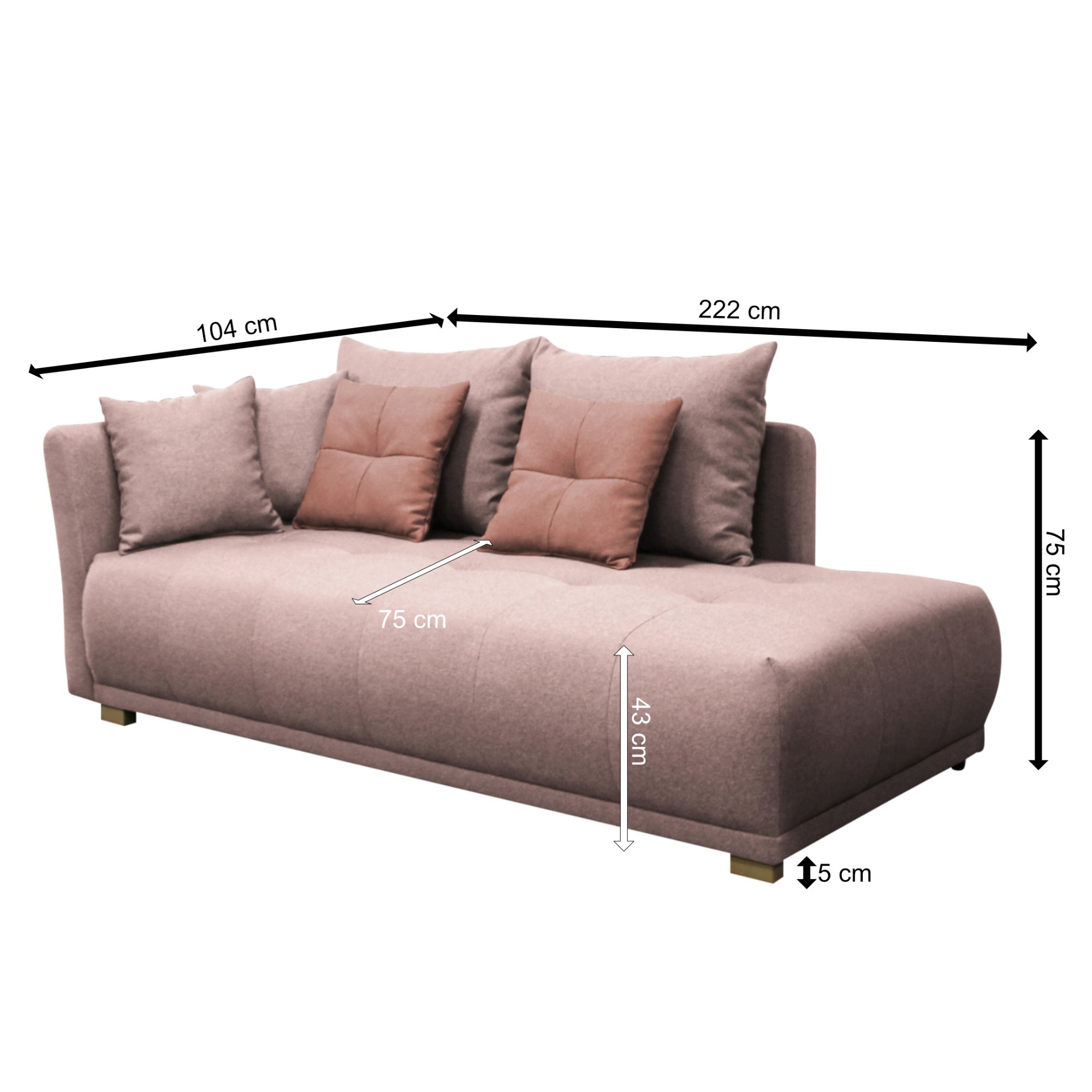 Pohovka/Divan SELAVI - levá, růžová