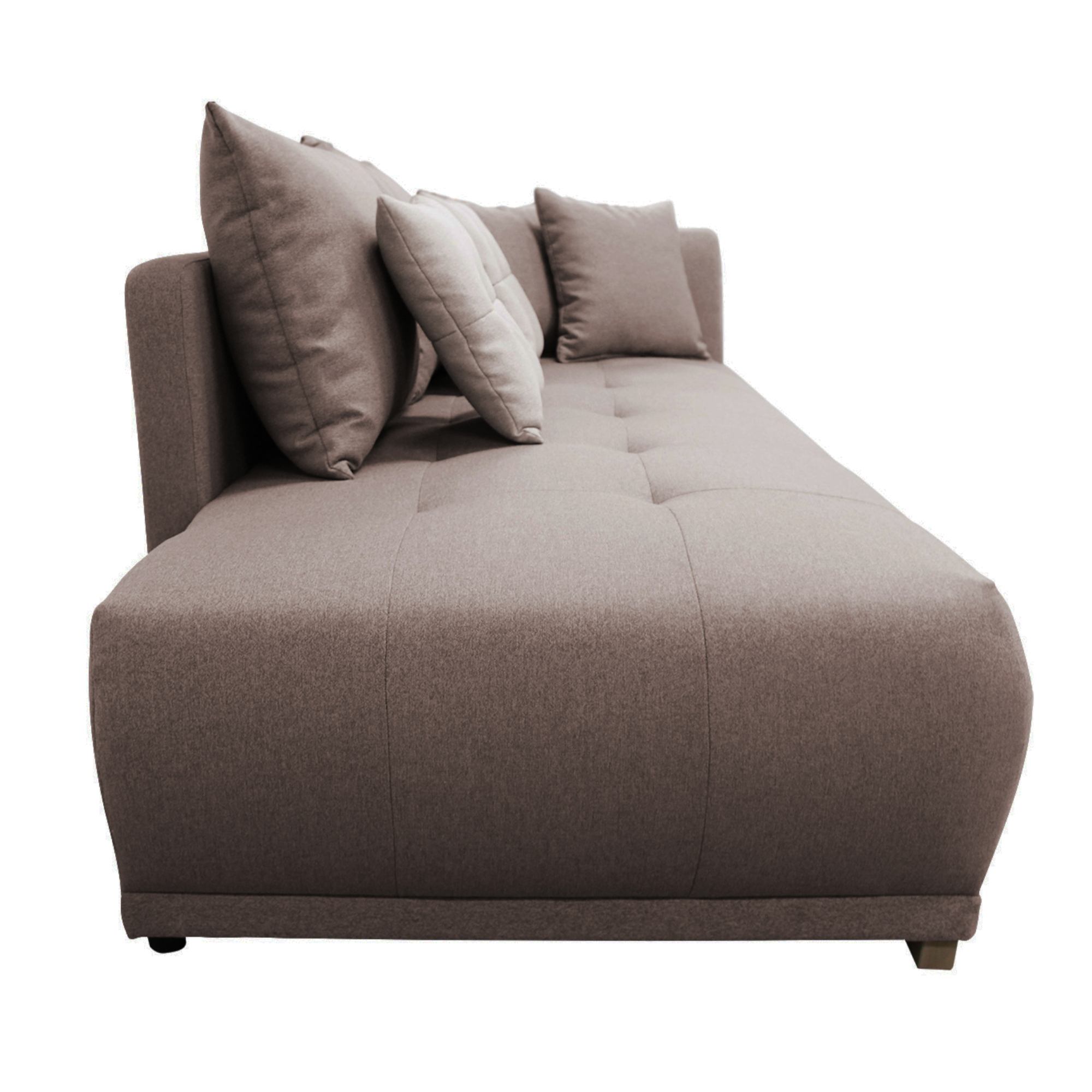 O pohodlné a komfortní posezení se postará nejen pěnový sedák, ale také zádové a dekorační polštáře, které zároveň poskytnou měkkou oporu těla a zároveň jsou stylovým prvkem divanu. V úložném prostoru pod sedákem uschováte lůžkoviny, které tak budete mít v případě potřeby opět po ruce, i odnímatelné polštáře, které navíc můžete využít i pro spaní. Celočalouněné provedení vám umožní umístit sedačku u stěny i volně v prostoru.