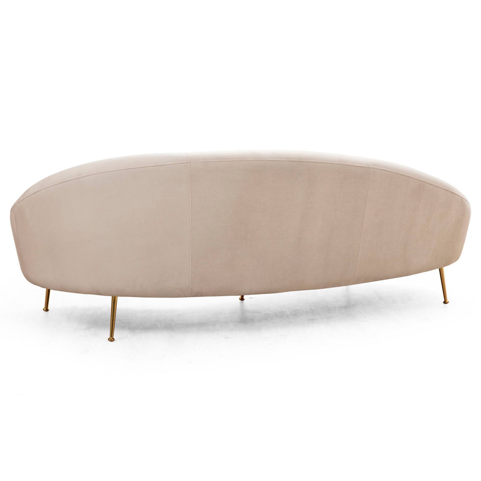 O pohodlné a komfortní posezení se postará nejen pěnový sedák, ale také oválný tvar celé pohovky. Dekorační polštářky poskytnou měkkou oporu těla a zároveň jsou stylovým prvkem pohovky. Celočalouněné provedení vám dovolí umístit sedačku do prostoru i ke stěně, jak vám bude vyhovovat. Gauč je připraven kdykoli uvítat hosty nebo vám poskytnout prostor k odpočinku.