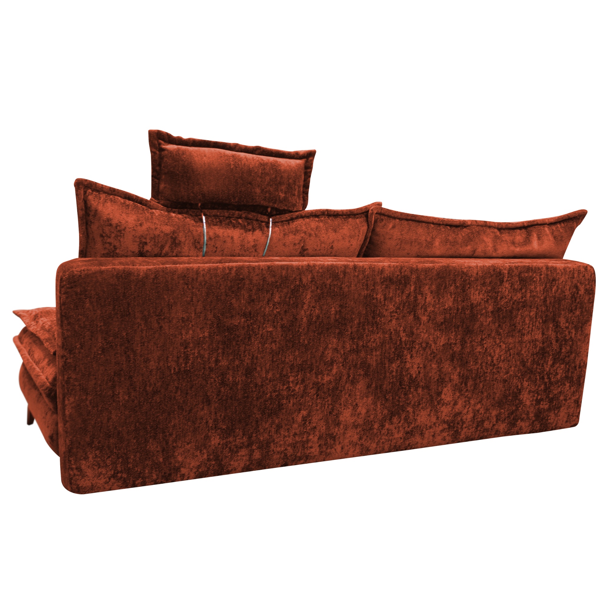 Potah z hřejivého velurového vlákna, sametového vzhledu, vám umožní užít si relaxaci na maximum. Zádové polštáře s výrazným atypickým prošíváním poskytují potřebnou oporu. Kovové nožky usnadní udržení pořádku pod pohovkou, a navíc díky nim vypadá pohovka vzdušně a elegantně. Zadní část pohovky je celočalouněná. Vaší fantazii se tak meze nekladou a svůj kousek si můžete umístit kdekoli v místnosti.