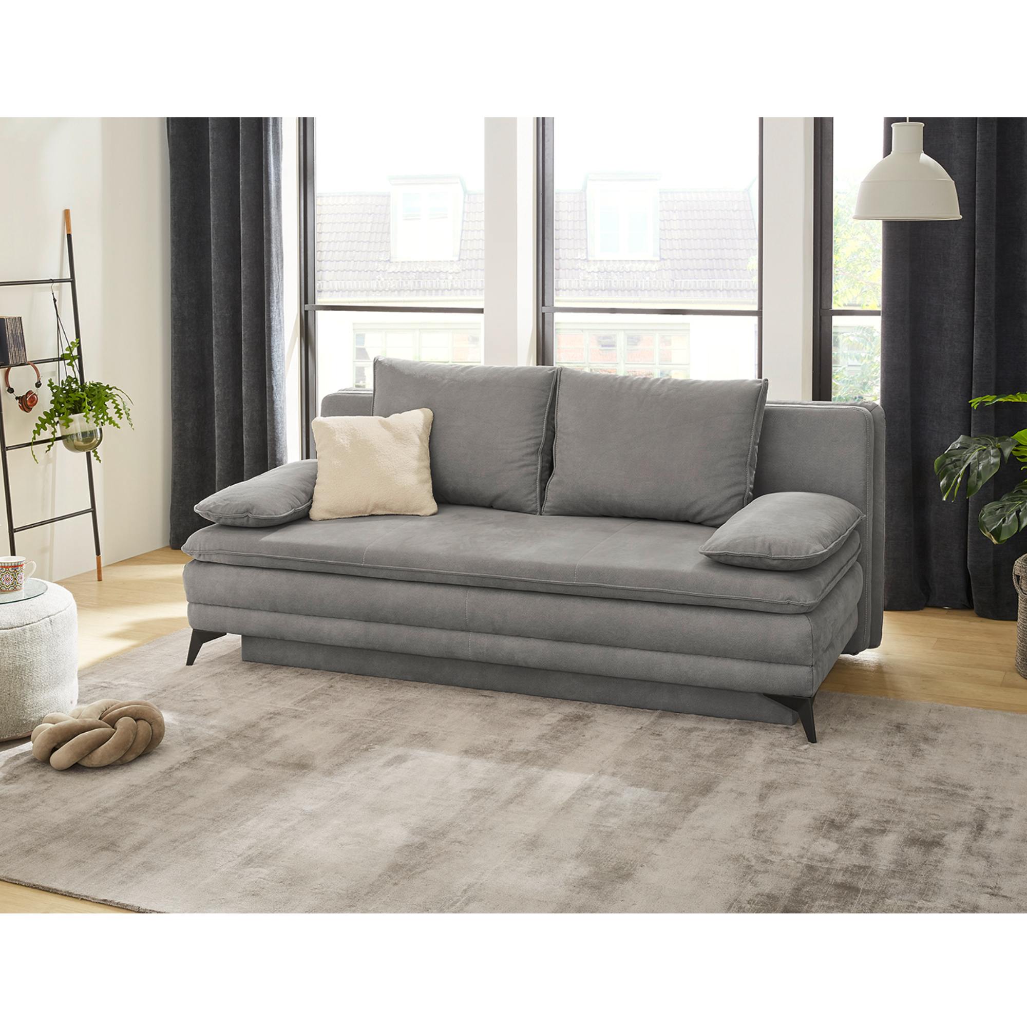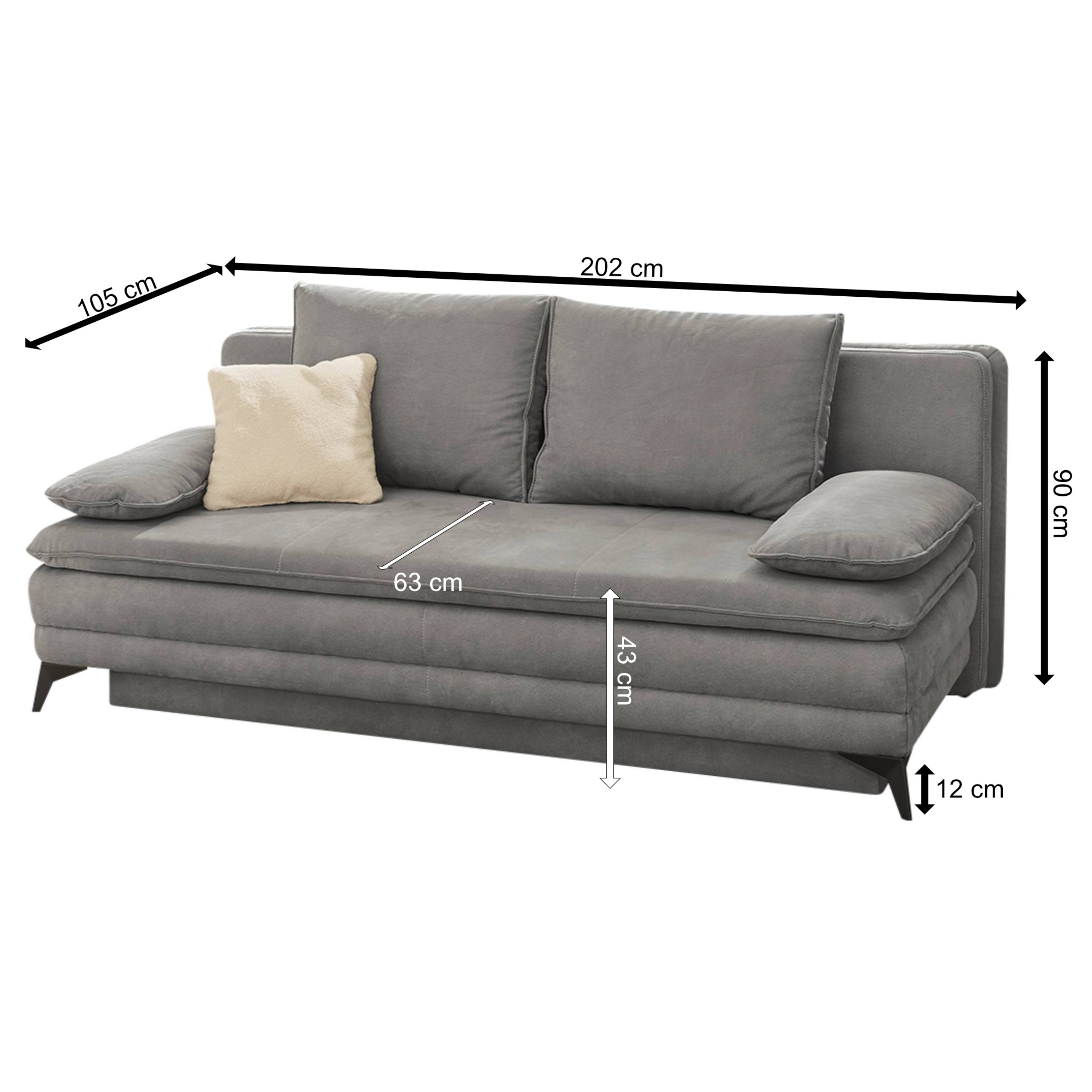 Pohovka s vlnovým odpružením a pěnovým jádrem je na povrchu doplněna o svrchní topper ze studené pěny pevně všitý po celé ploše sedáku a lůžka. Ten zajišťuje velmi pohodlné sezení. Disponuje dvěma odnímatelnými zádovými polštáři a dvěma područkovými polštáři, které přímo vybízejí k relaxaci. Vše je potaženo potahem z mikrovlákna, který je velice příjemný na dotek. Celou konstrukci podpírají černé kovové elegantní nohy. Pohovka je dále vybavena mechanismem se sklopnými zády, který vám umožňuje snadno a rychle pohovku přeměnit na dodatečné lůžko pro občasné přespání. Pohovku nebo lůžko doplníte dekorativním polštářkem v neutrální barvě s plyšovým vzhledem. Disponuje také úložným prostorem, kam můžete uložit nepoužívané lůžkoviny a další předměty.