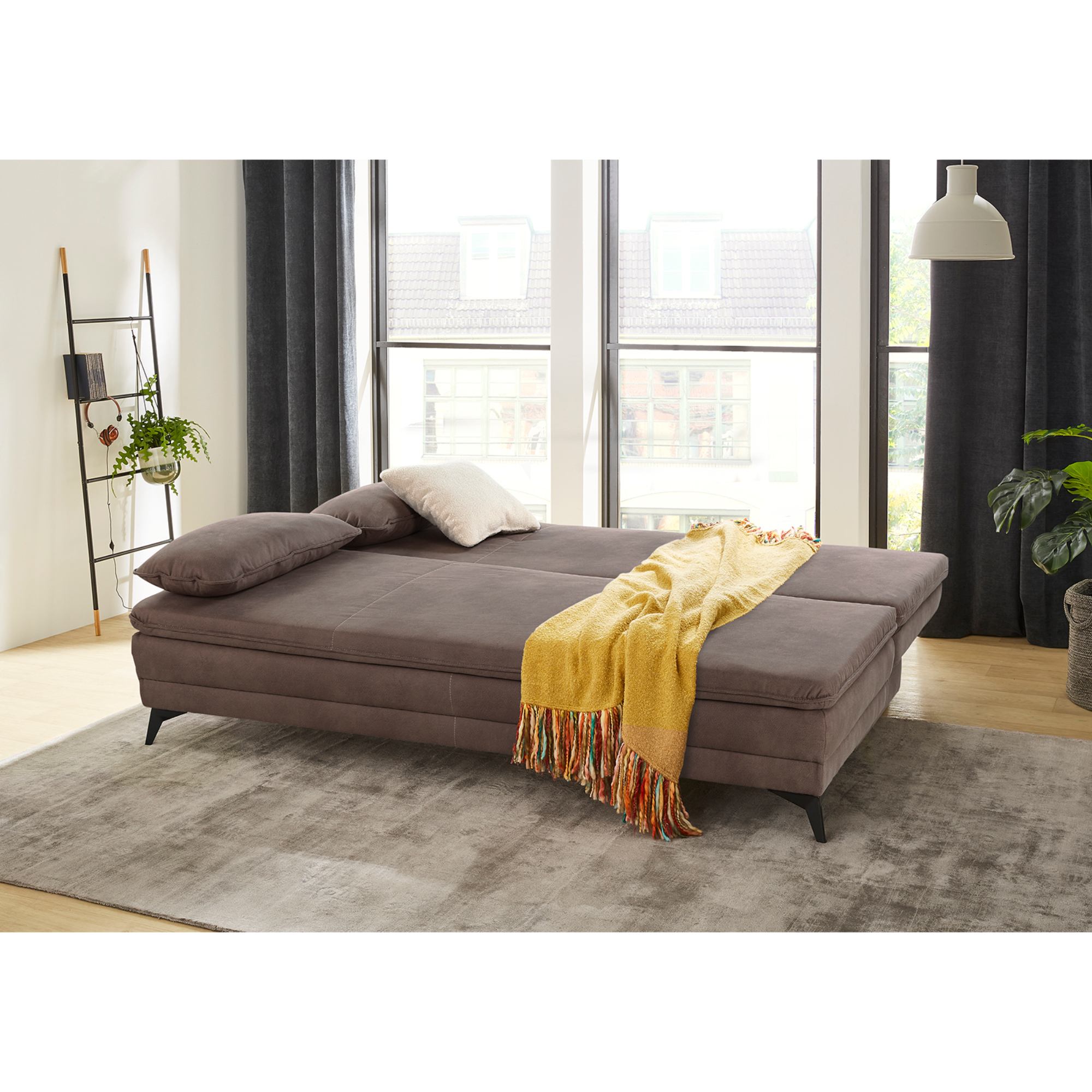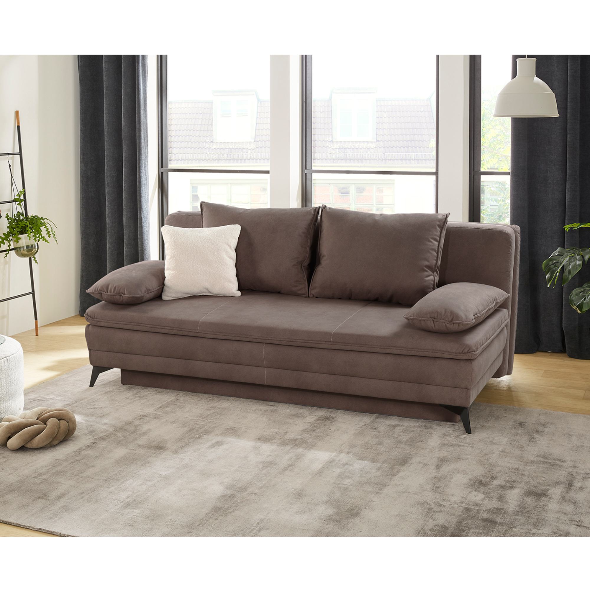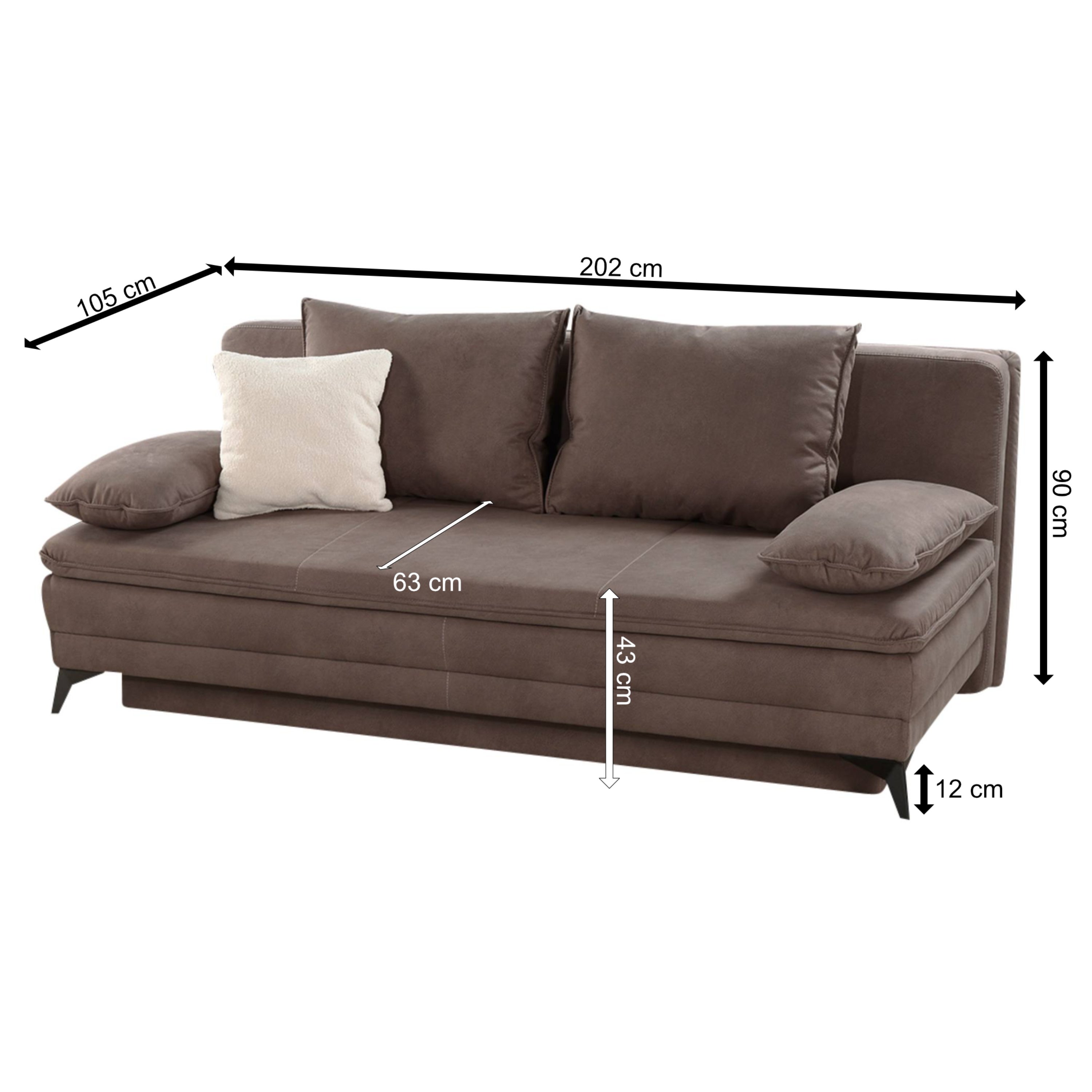 Pohovka s vlnovým odpružením a pěnovým jádrem je na povrchu doplněna o svrchní topper ze studené pěny pevně všitý po celé ploše sedáku a lůžka. Ten zajišťuje velmi pohodlné sezení. Disponuje dvěma odnímatelnými zádovými polštáři a dvěma područkovými polštáři, které přímo vybízejí k relaxaci. Vše je potaženo potahem z mikrovlákna, který je velice příjemný na dotek. Celou konstrukci podpírají černé kovové elegantní nohy. Pohovka je dále vybavena mechanismem se sklopnými zády, který vám umožňuje snadno a rychle pohovku přeměnit na dodatečné lůžko pro občasné přespání. Pohovku nebo lůžko doplníte dekorativním polštářkem v neutrální barvě s plyšovým vzhledem. Disponuje také úložným prostorem, kam můžete uložit nepoužívané lůžkoviny a další předměty.