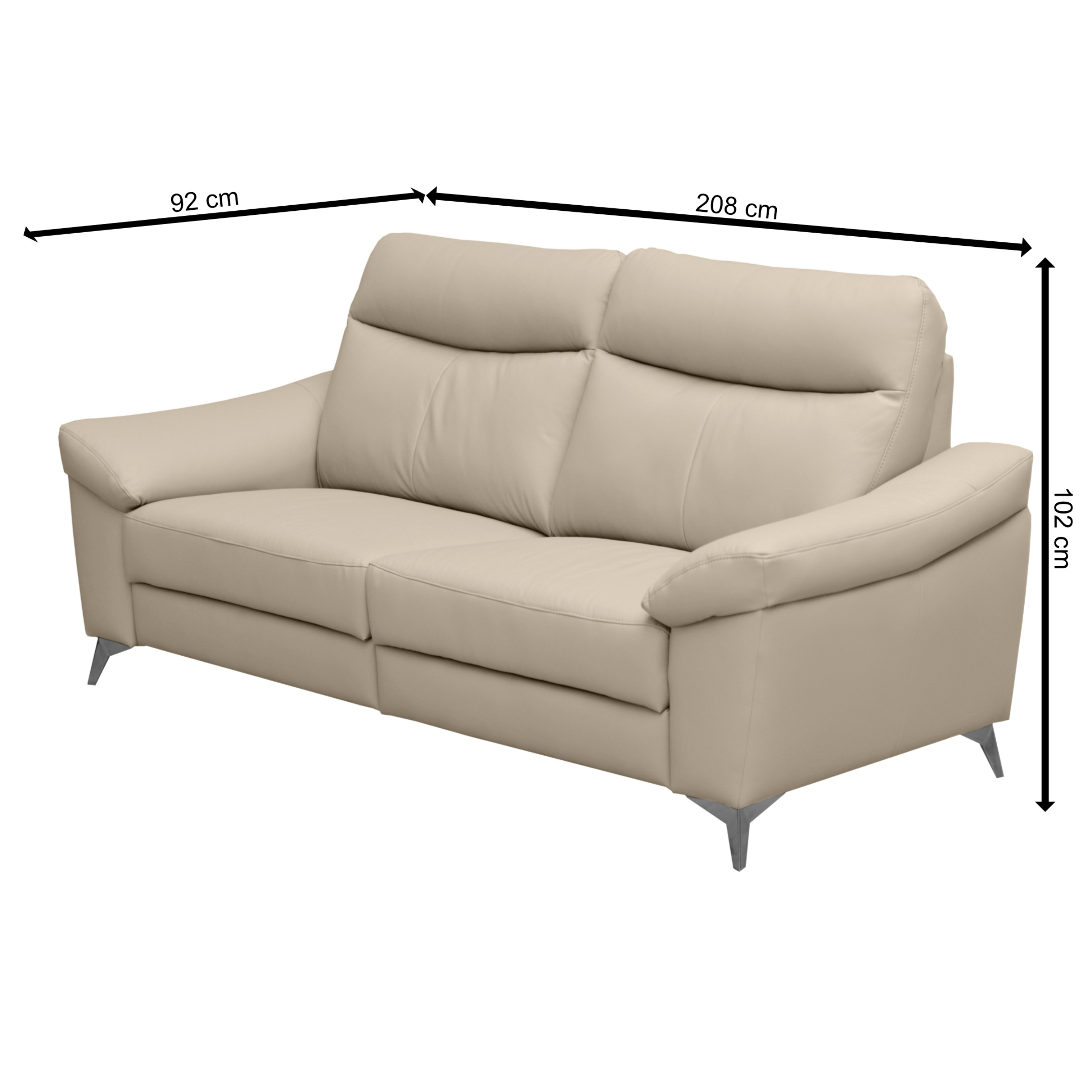Sedák je tvořen vlnovými pružinami a vysoce kvalitní studenou pěnou, což vám poskytne měkké sezení. Oblé tvary a kožený potah zase umocní příjemný pocit z relaxace. To vše dohromady vytváří elegantní posezení. Celočalouněné provedení pohovky vám dovolí umístit ho volně dle dispozice interiéru.
