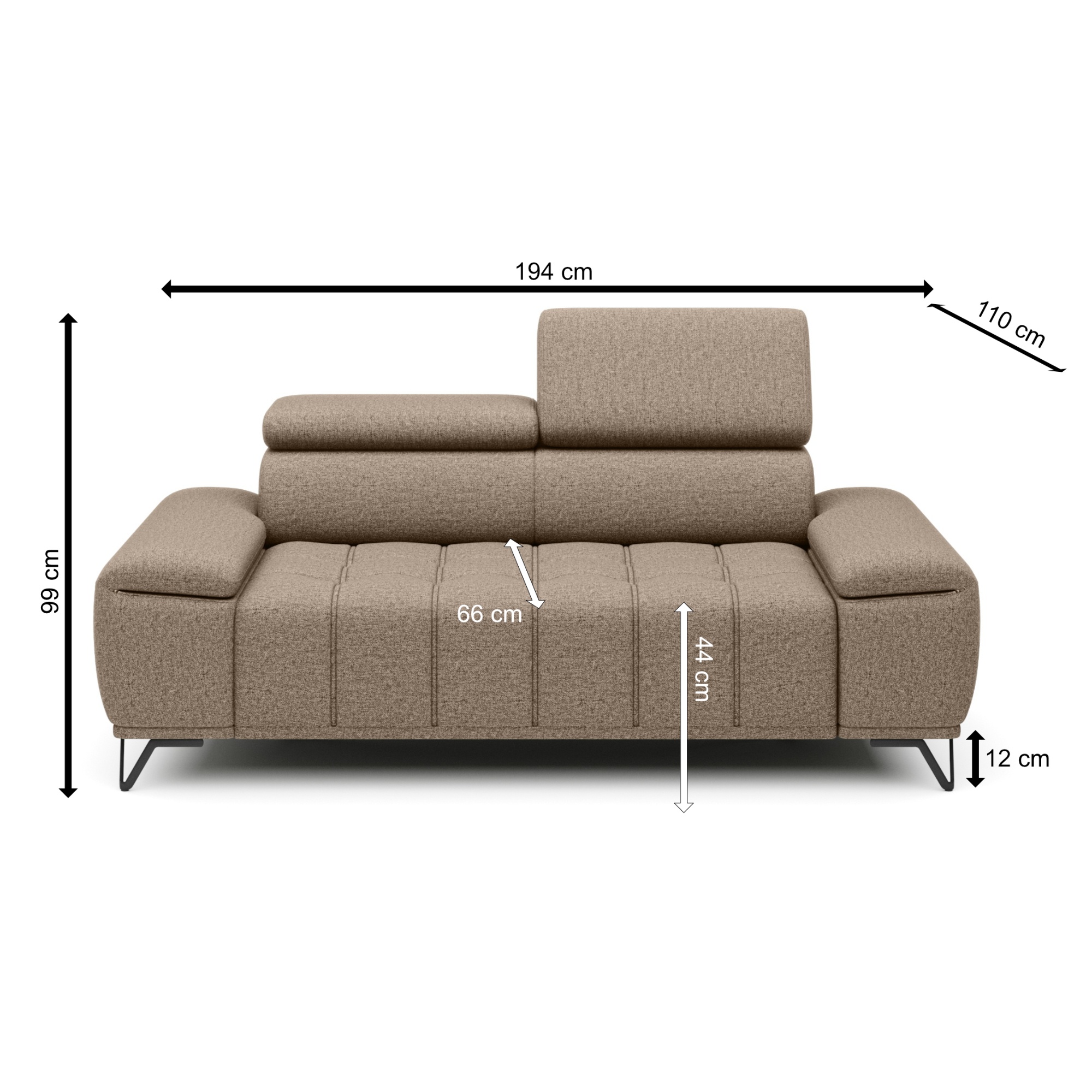 Svou velikostí poskytne dostatek prostoru pro komfortní sezení pro 2 osoby. O to pravé pohodlí se postarají také polohovatelné opěrky hlavy. Vysoké kovové nožky oceníte i z praktického hlediska. Prostor pod gaučem zůstává snadno dostupný, a tak i podlaha pod ním se snadno udržuje v čistotě. Celočalouněné provedení vám dovolí umístit sedačku do prostoru i ke stěně.