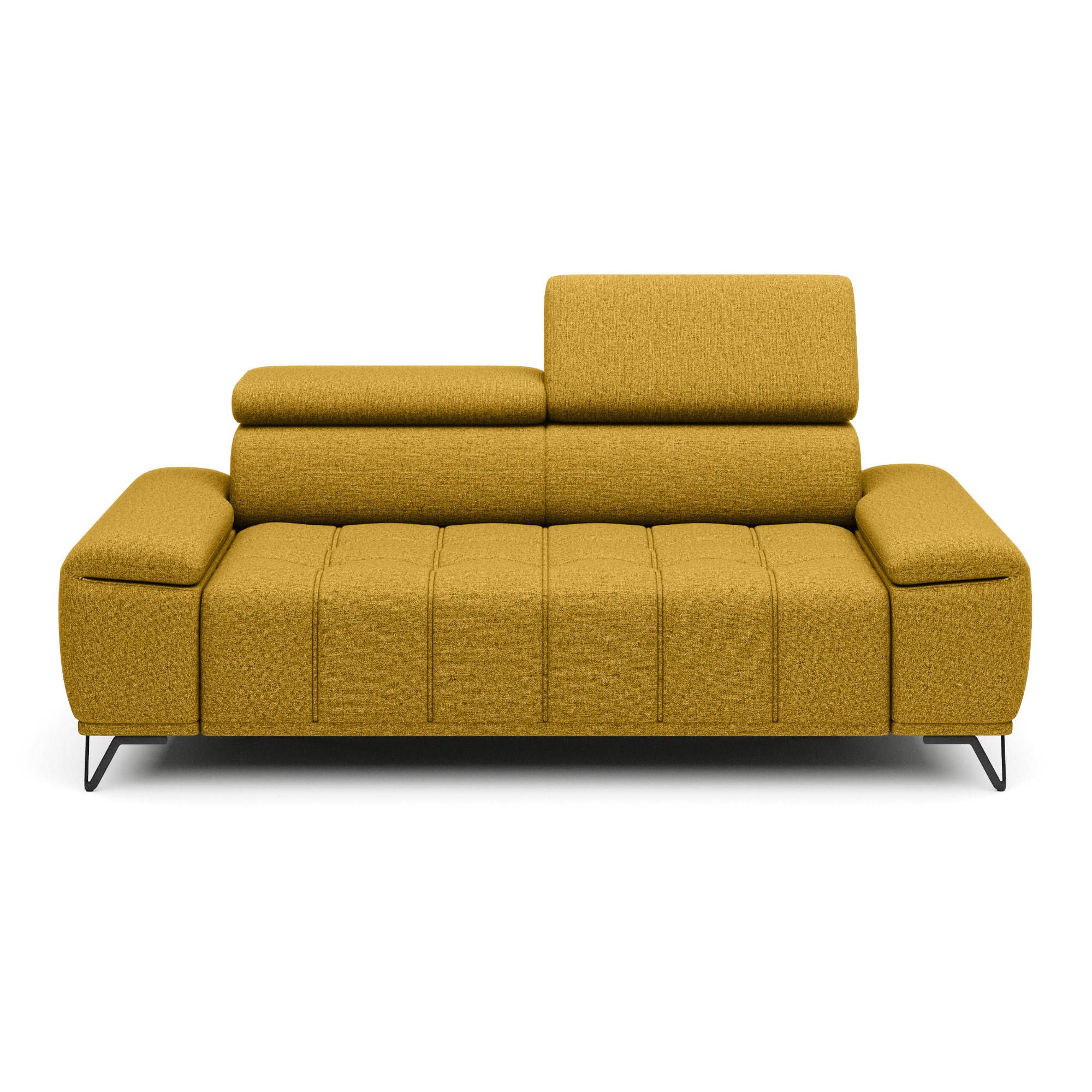 Svou velikostí poskytne dostatek prostoru pro komfortní sezení pro 2 osoby. O to pravé pohodlí se postarají také polohovatelné opěrky hlavy. Vysoké kovové nožky oceníte i z praktického hlediska. Prostor pod gaučem zůstává snadno dostupný, a tak i podlaha pod ním se snadno udržuje v čistotě. Celočalouněné provedení vám dovolí umístit sedačku do prostoru i ke stěně.