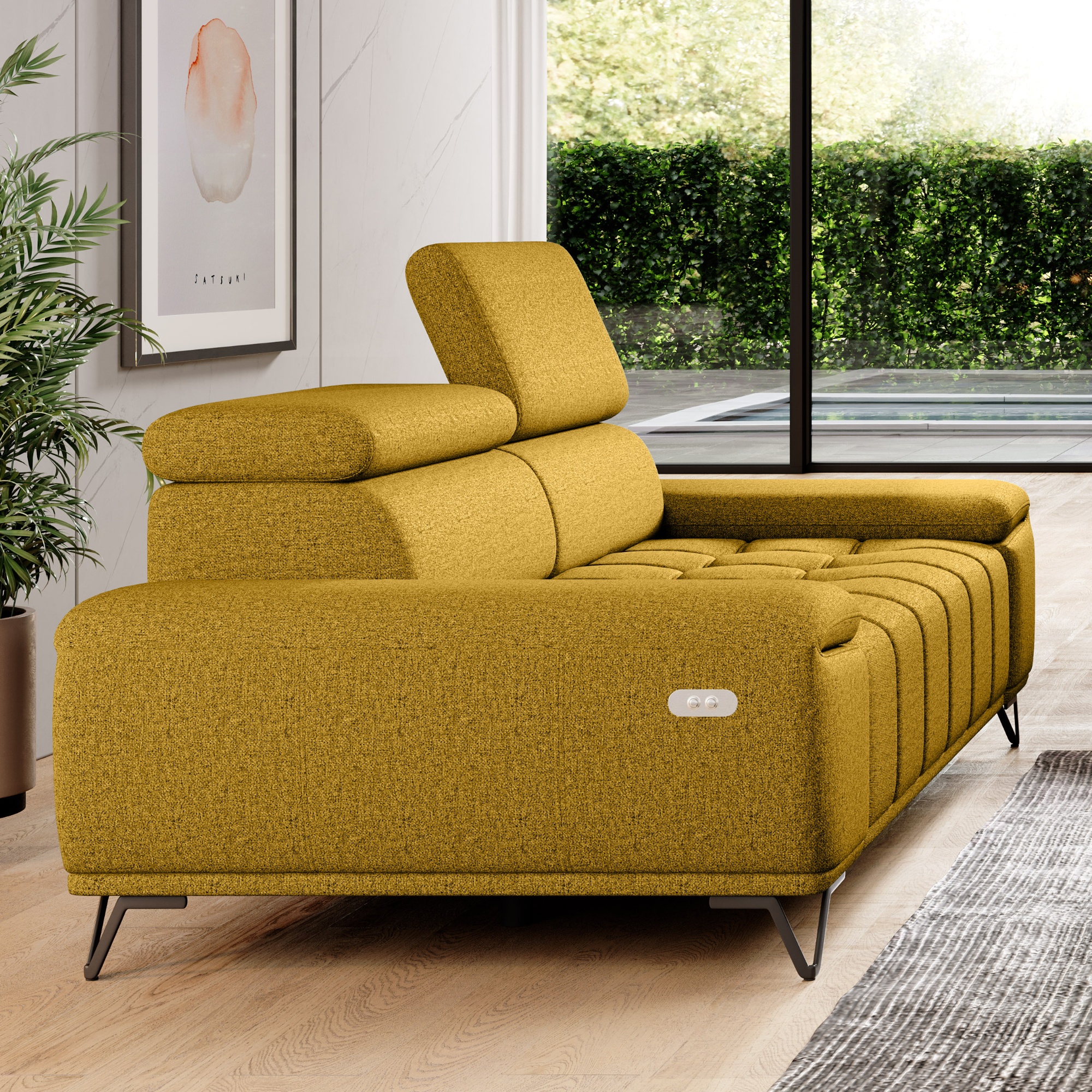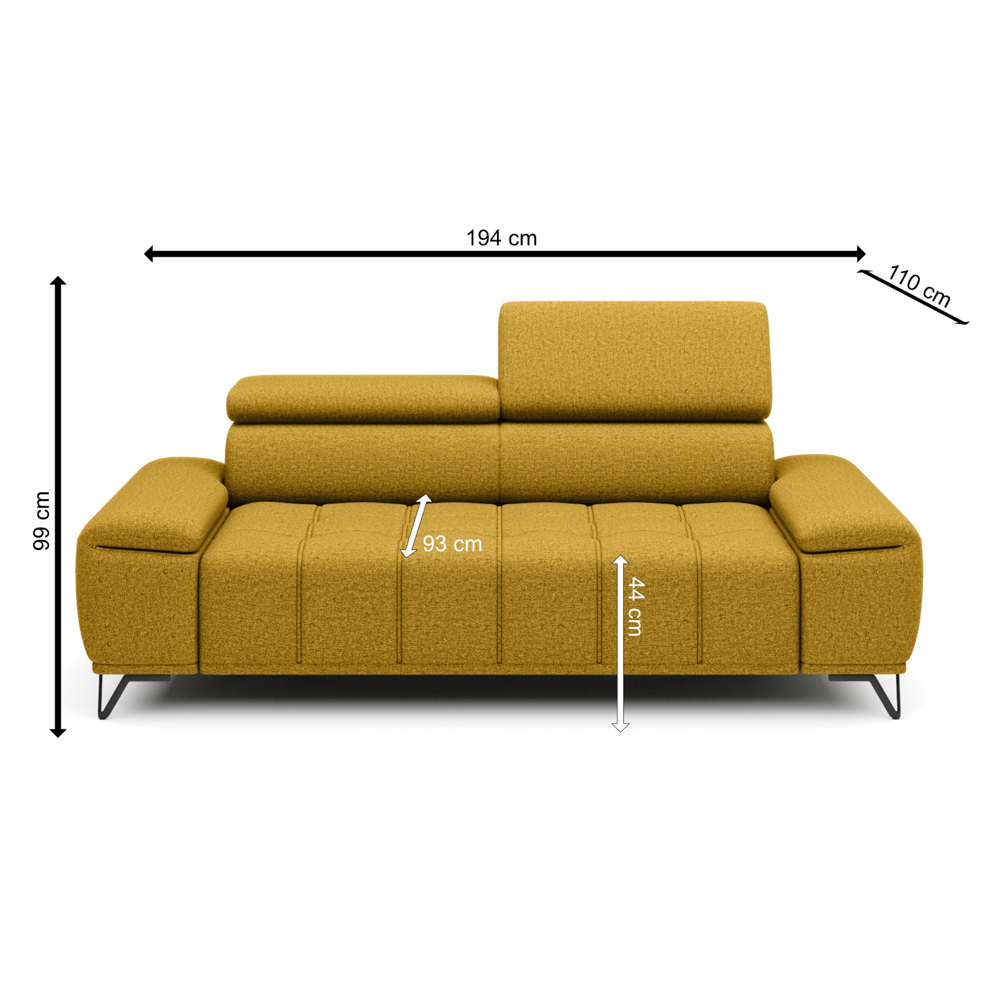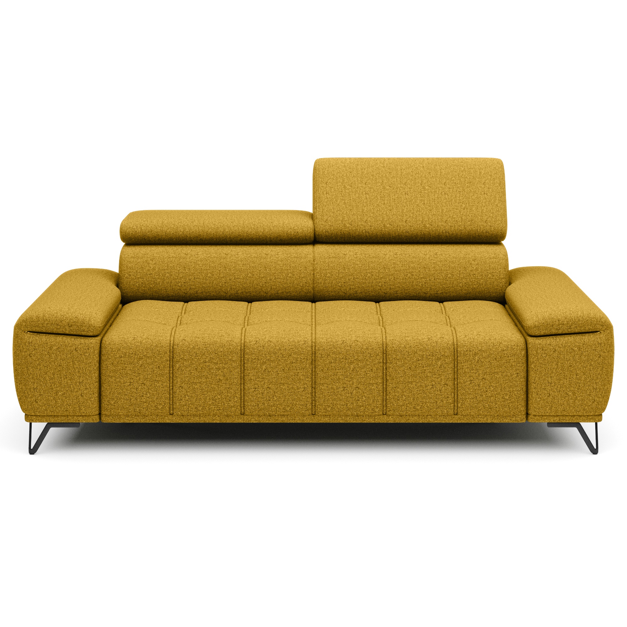 Svou velikostí poskytne dostatek prostoru pro komfortní sezení pro 2 osoby. O to pravé pohodlí se postarají polohovatelné opěrky hlavy a elektrický vysouvací systém sedáku. Stačí jen pouhé stisknutí tlačítka a můžete si upravit hloubku sedu z 66 cm na 93 cm. Tyto sofistikované funkce dovedou váš pocit z relaxace a odpočinku k dokonalosti. Vysoké kovové nožky oceníte i z praktického hlediska. Prostor pod gaučem zůstává snadno dostupný, a tak i podlaha pod ním se snadno udržuje v čistotě. Celočalouněné provedení vám dovolí umístit sedačku do prostoru i ke stěně.