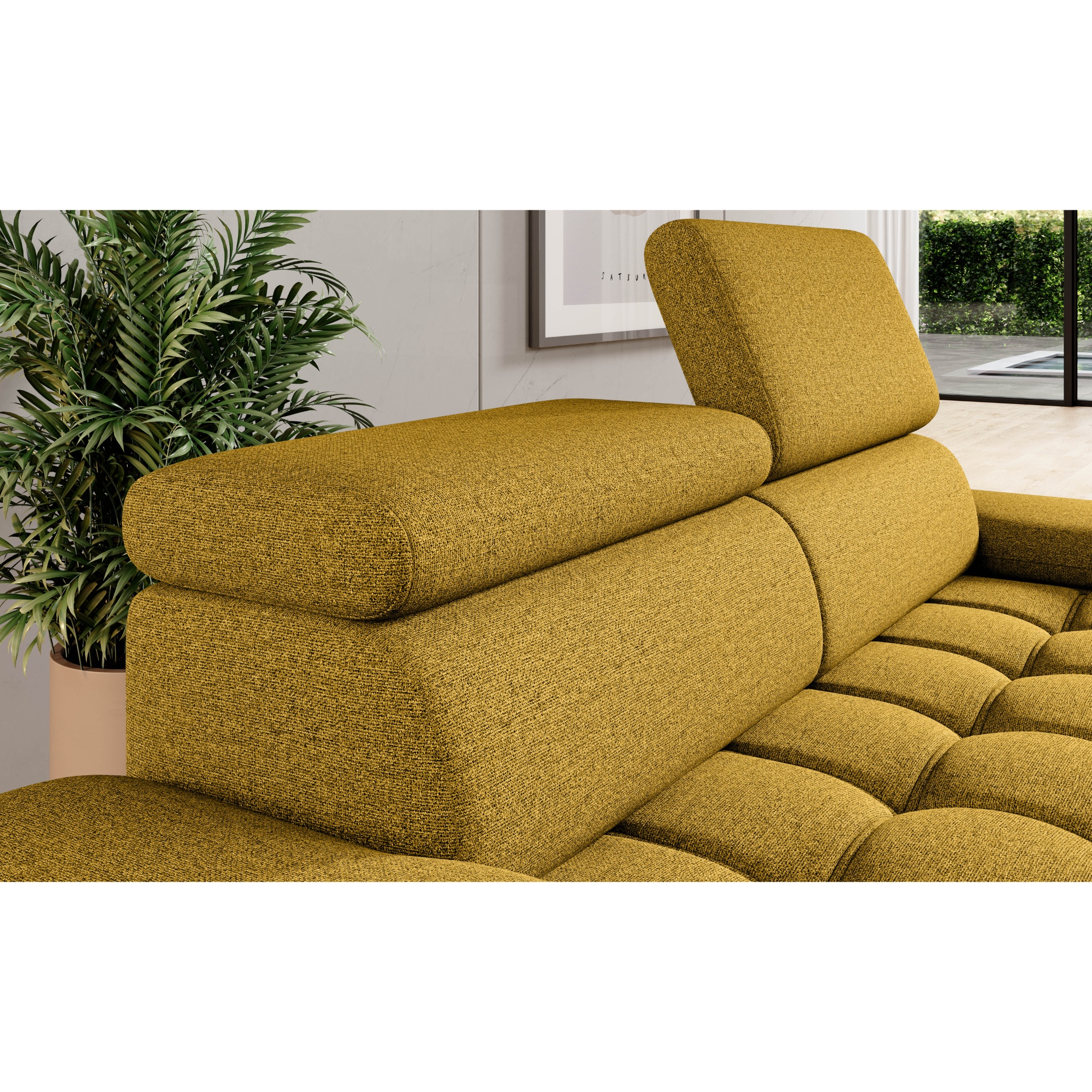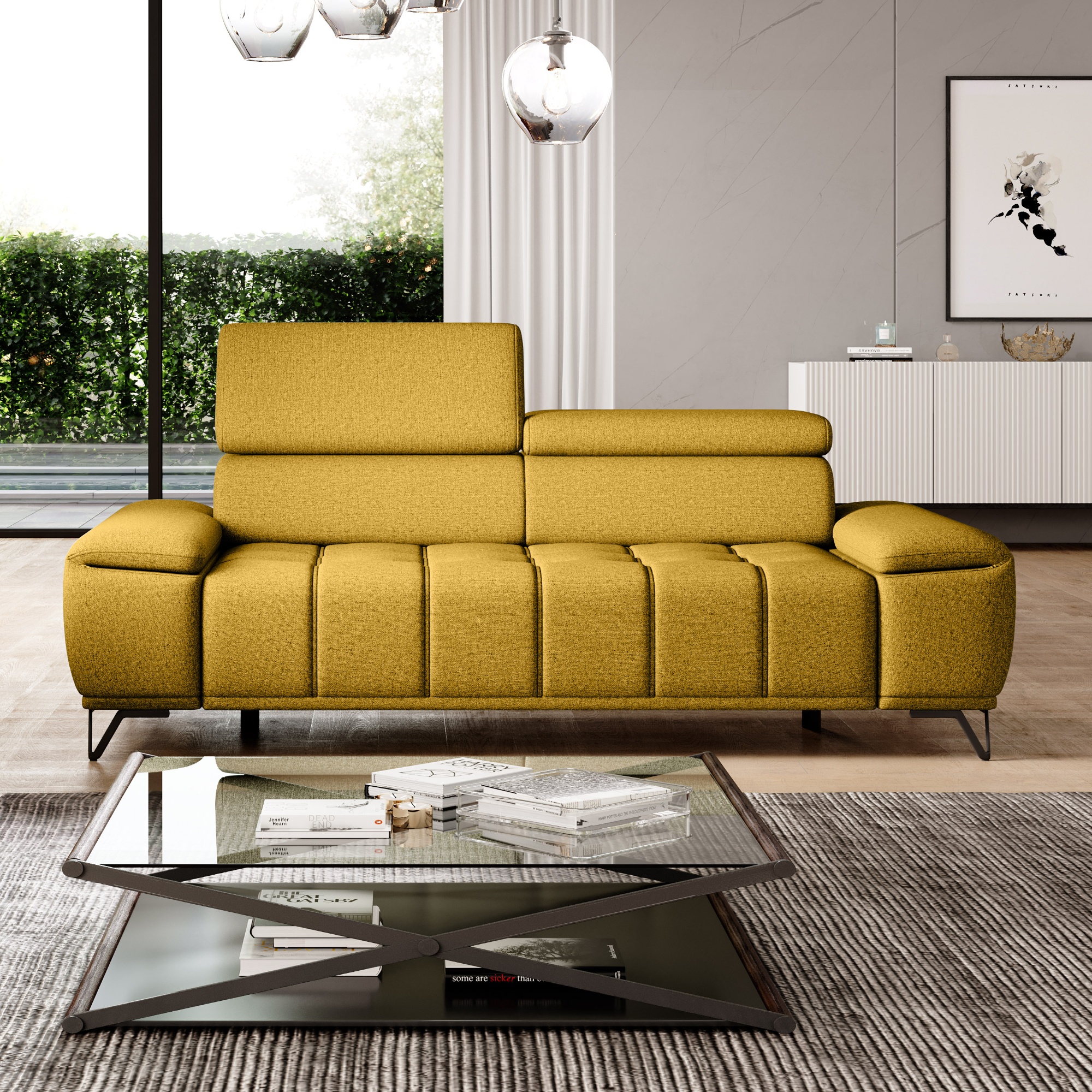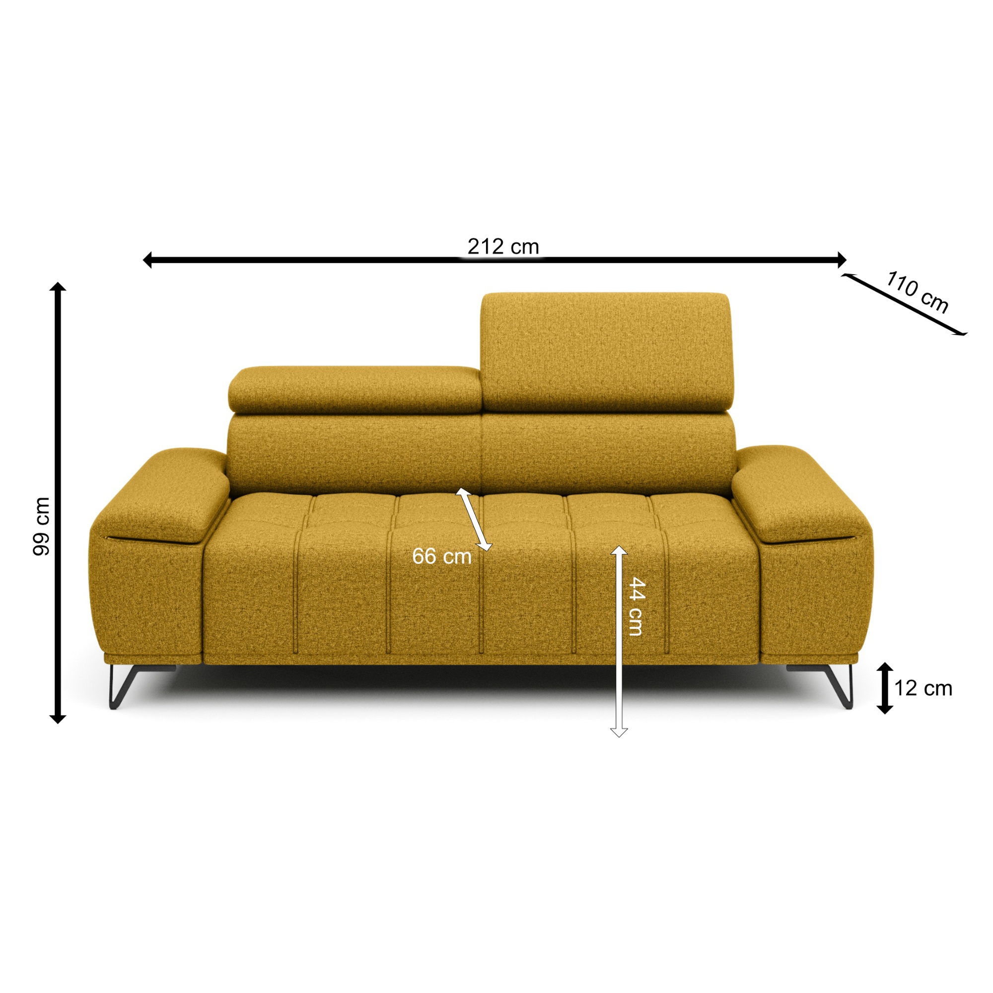 Sedák je tvořen pružinovým jádrem a polyuretanovou pěnou a nabízí měkké sezení s přirozenou oporou. O to pravé pohodlí se postarají také polohovatelné opěrky hlavy. Vysoké kovové nožky oceníte i z praktického hlediska. Prostor pod gaučem zůstává snadno dostupný, a tak i podlaha pod ním se snadno udržuje v čistotě. Celočalouněné provedení vám dovolí umístit sedačku do prostoru i ke stěně.
